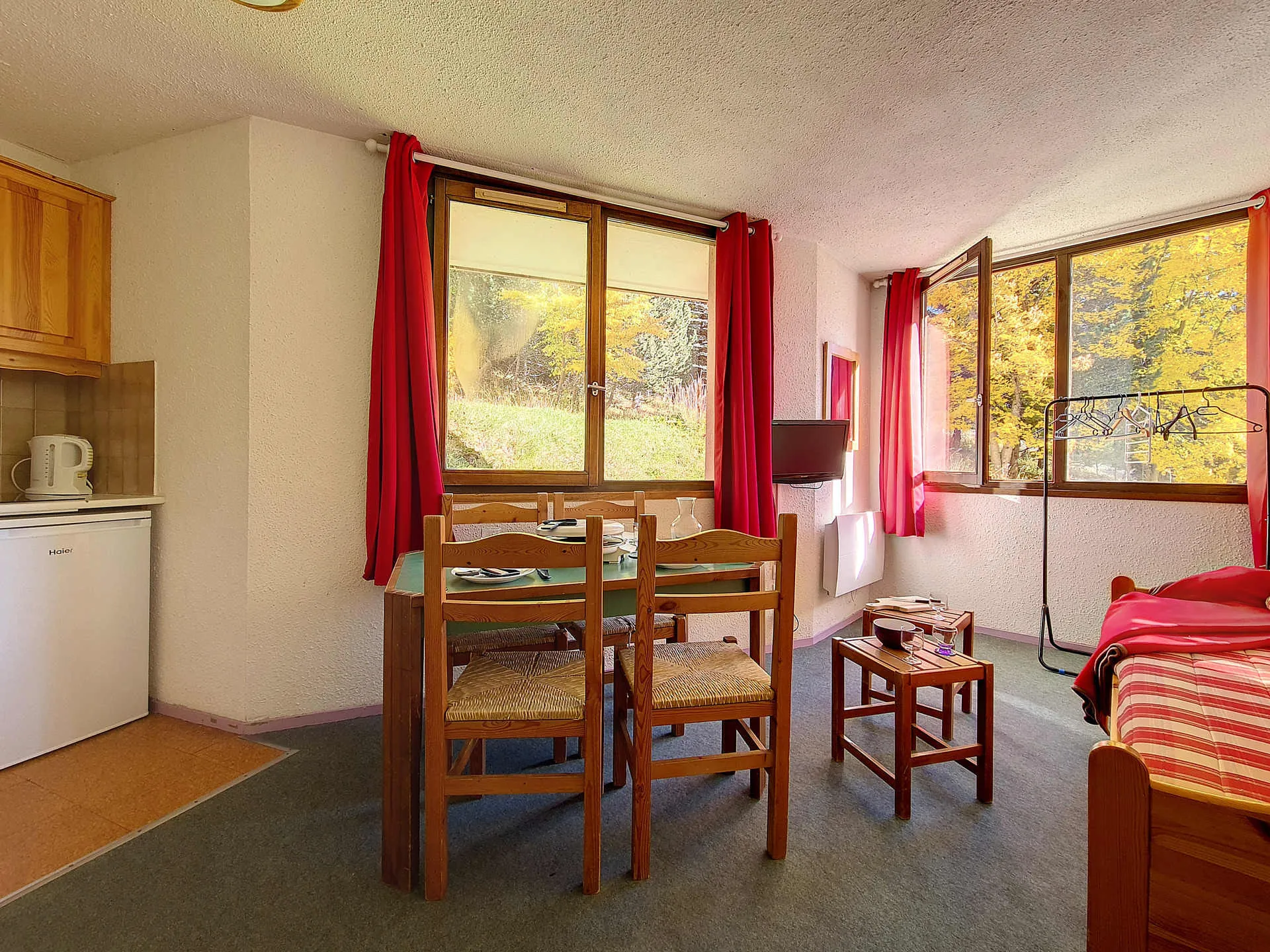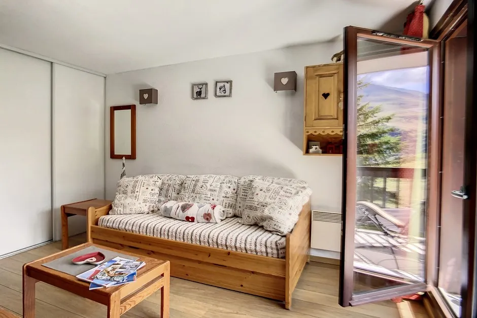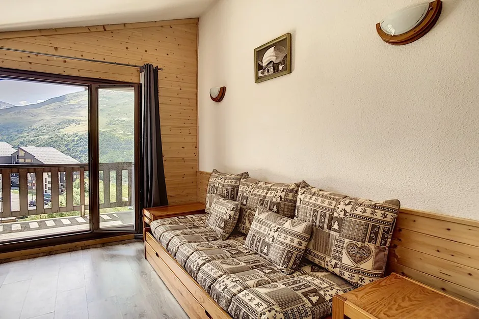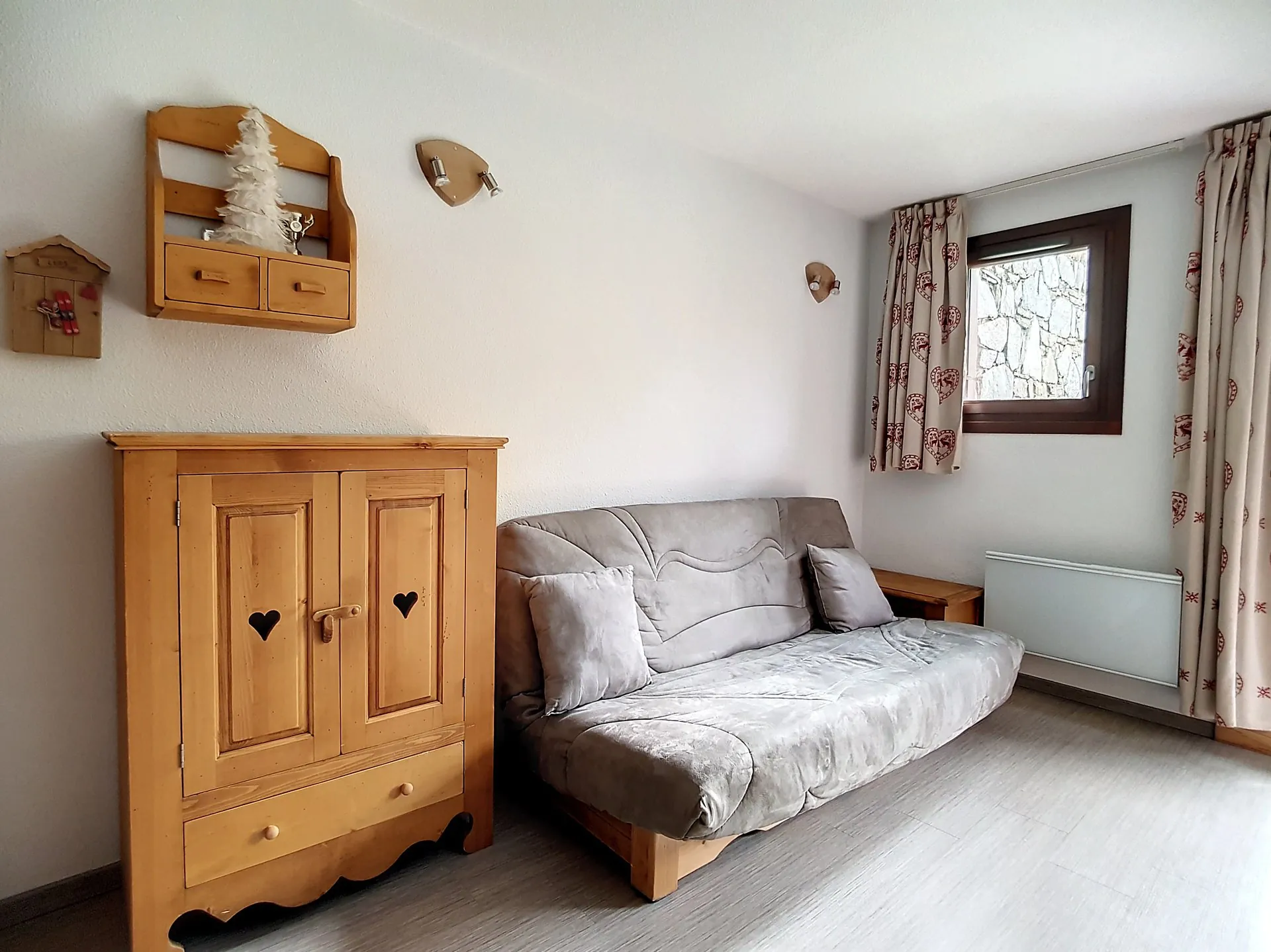 Woonkamer: slaapbank (eenpersoonsbed), eenpersoonsbed