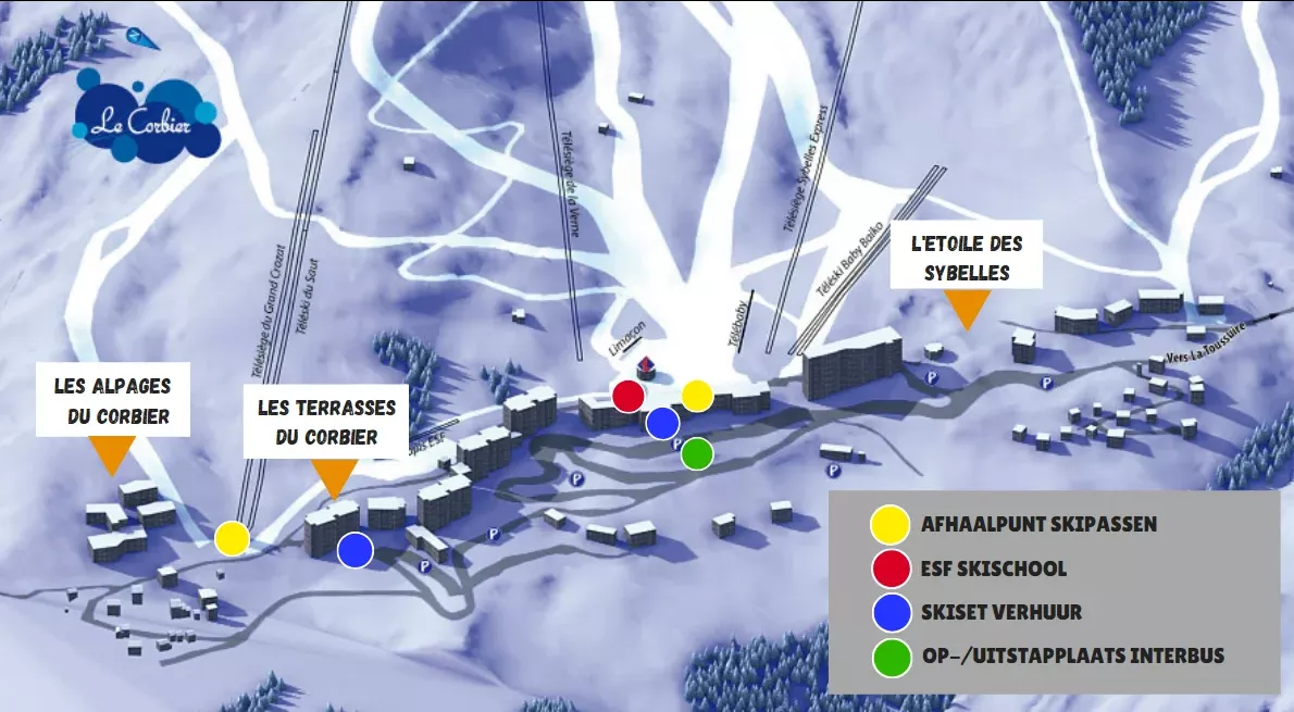 Vandaag vertrekken jullie met een bus van Interbus naar Le Corbier. Omdat wij geen reisleiding in Le Corbier hebben, volgt hier nog wat belangrijke aankomst- en vertrekinformatie.