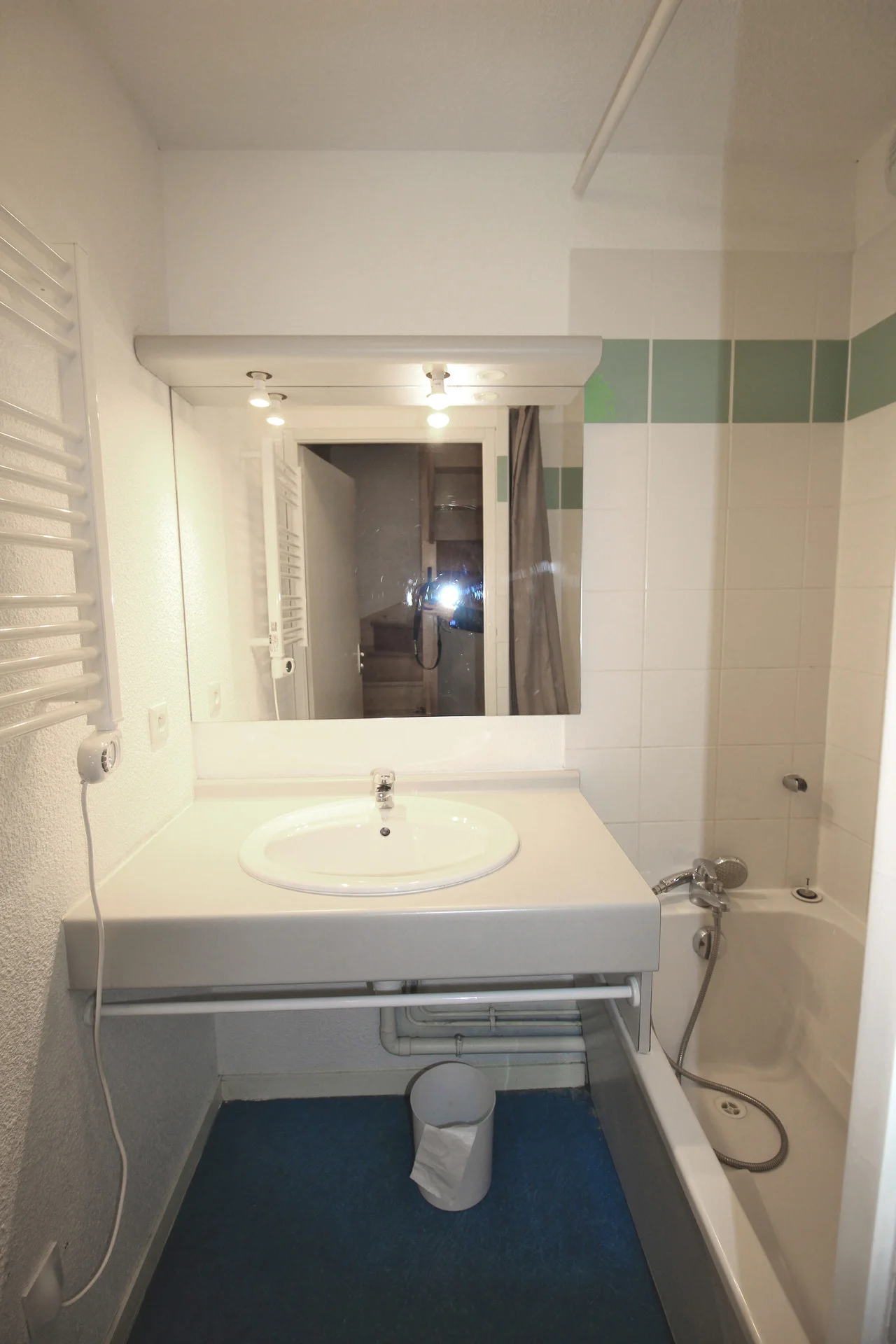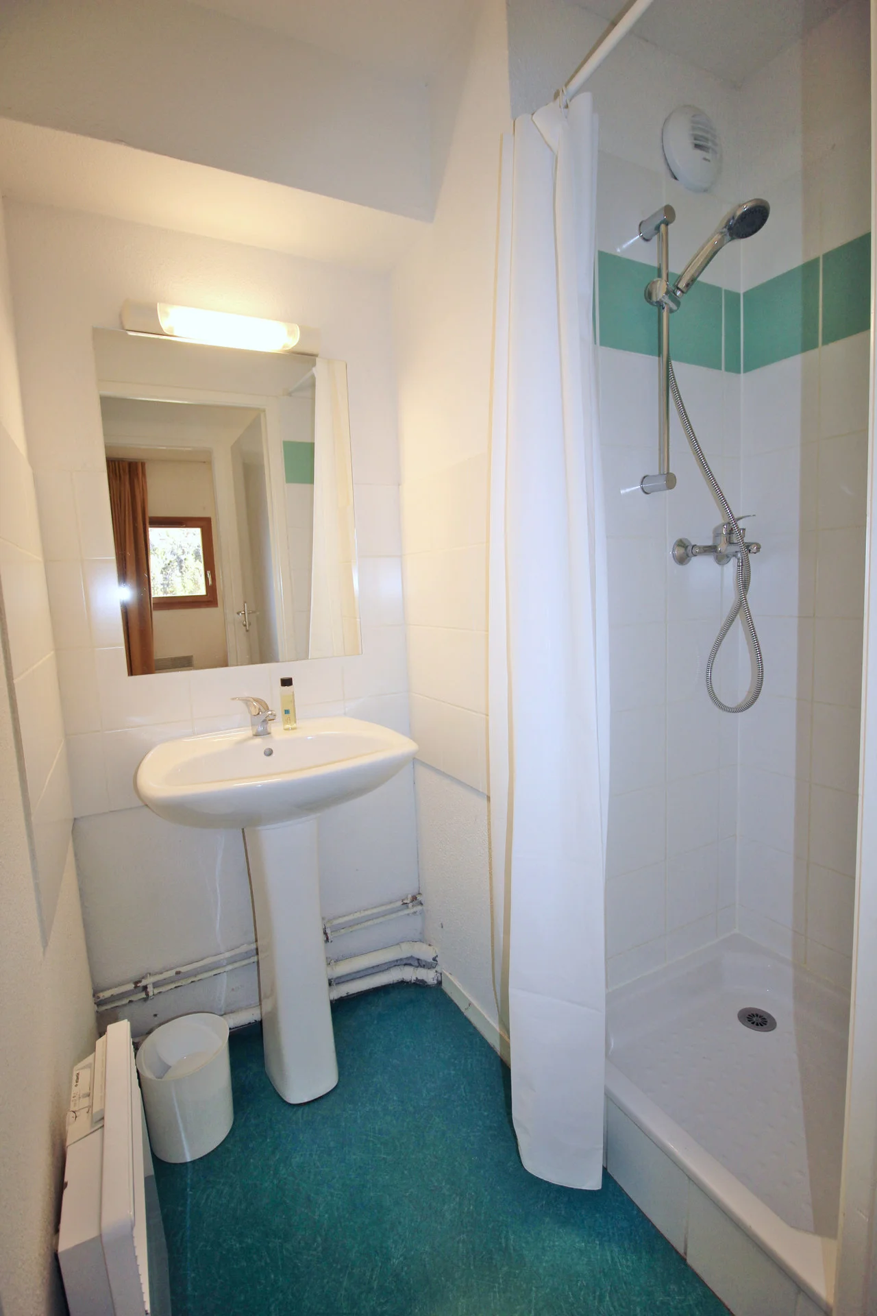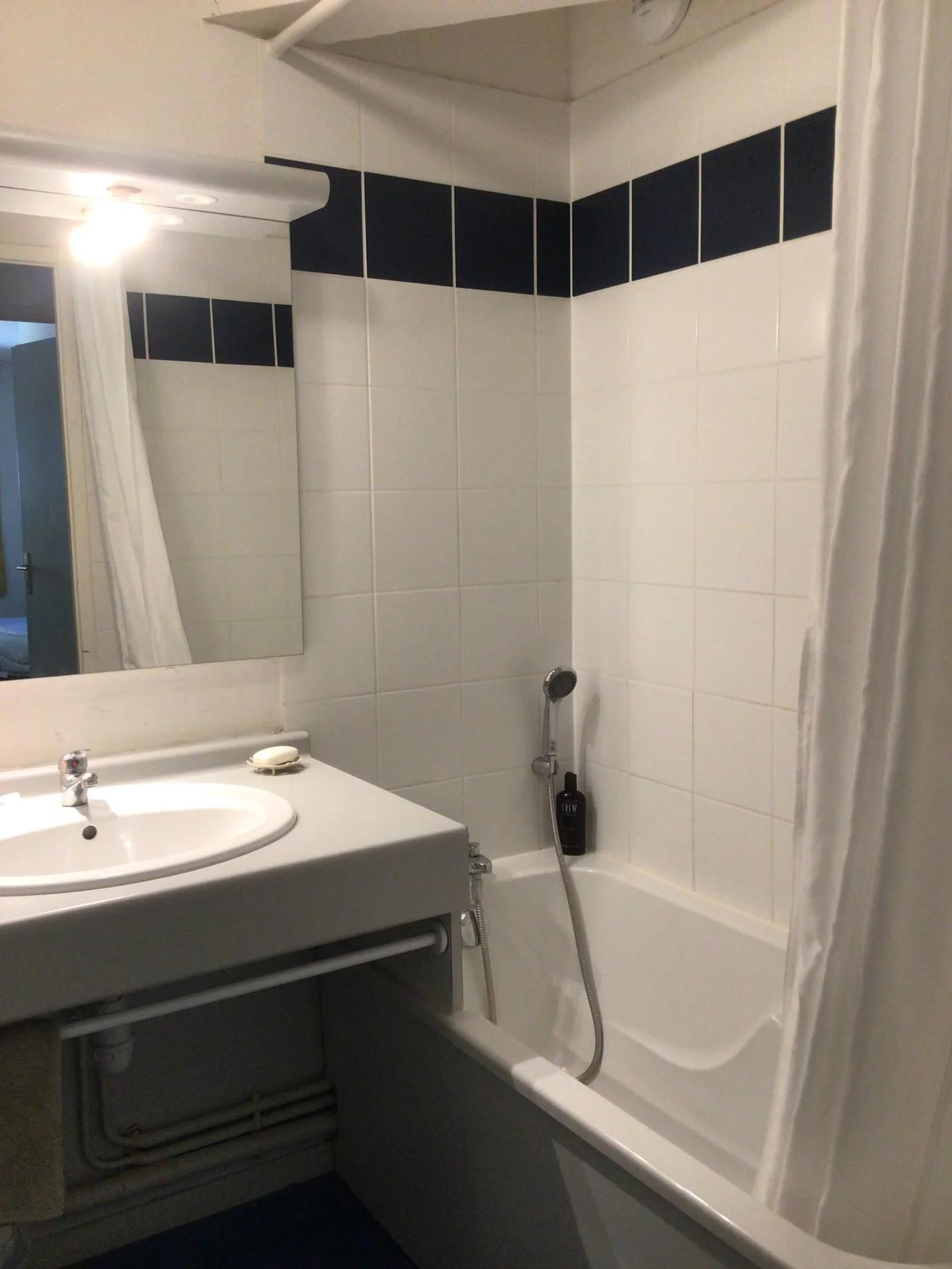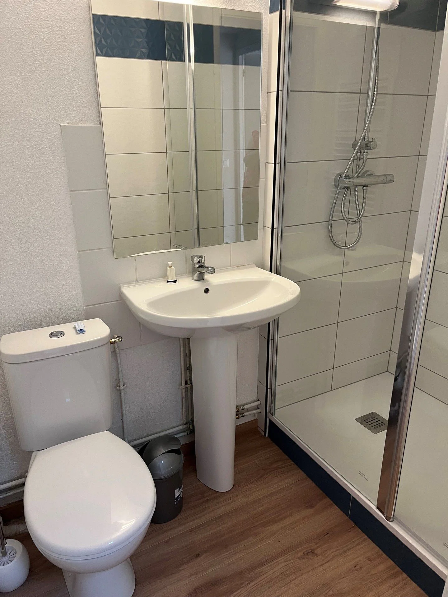 Het studio beschikt over een badkamer met toilet. Dit is de enige toiletruimte in het appartement.