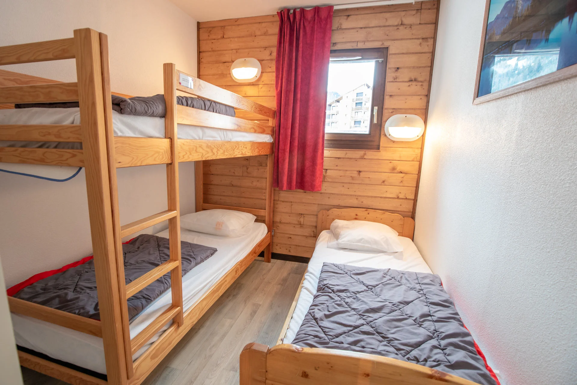 Slaapkamer 2: 1 tweepersoonsbed (140x190 cm) + 2 eenpersoonsbedden (80x190 cm)