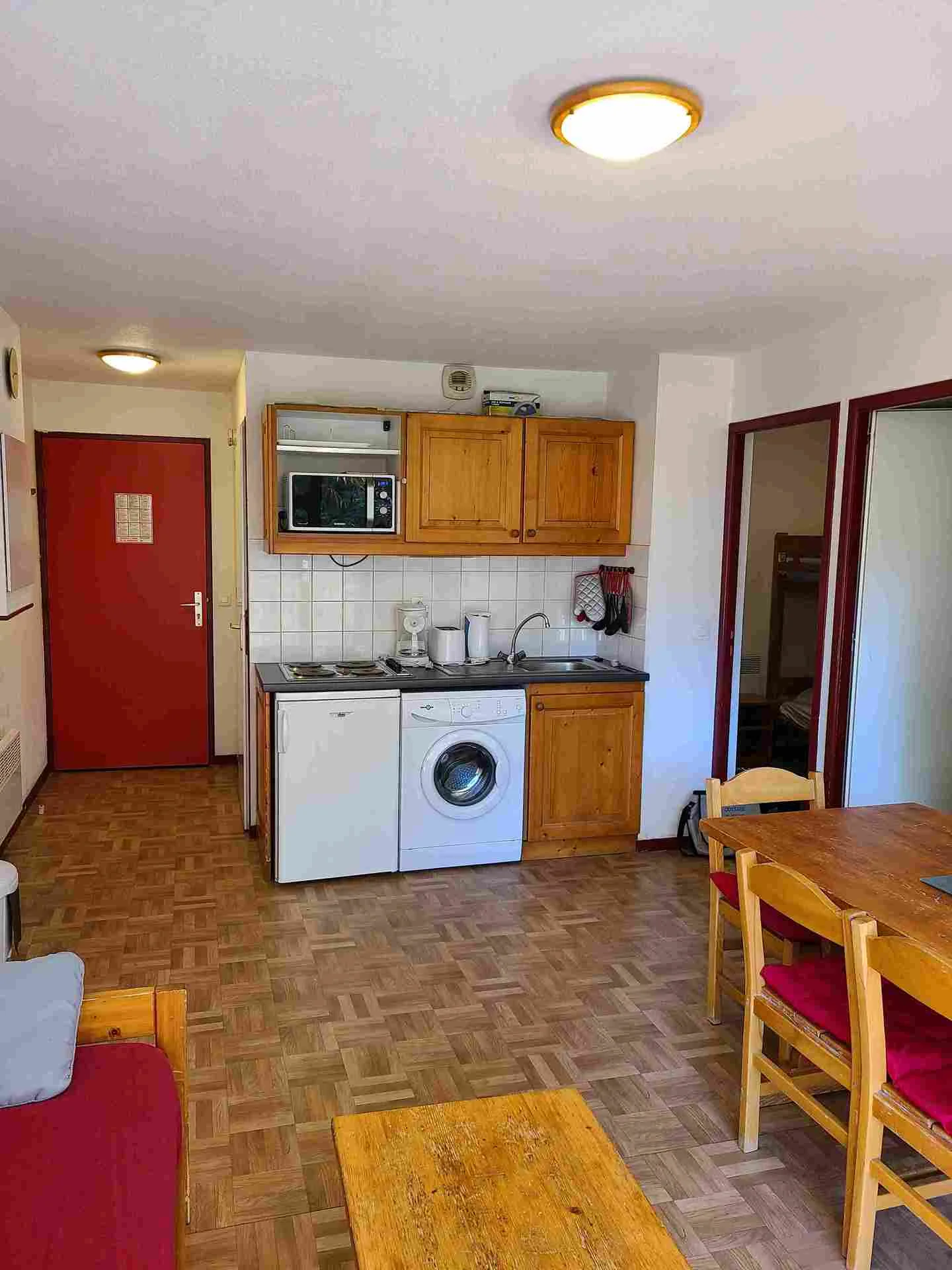 Het studio bevindt zich op de 3e verdieping en is bereikbaar met de lift. Het ligt aan de noordzijde van het gebouw. Er is een balkon met uitzicht op de bergen.