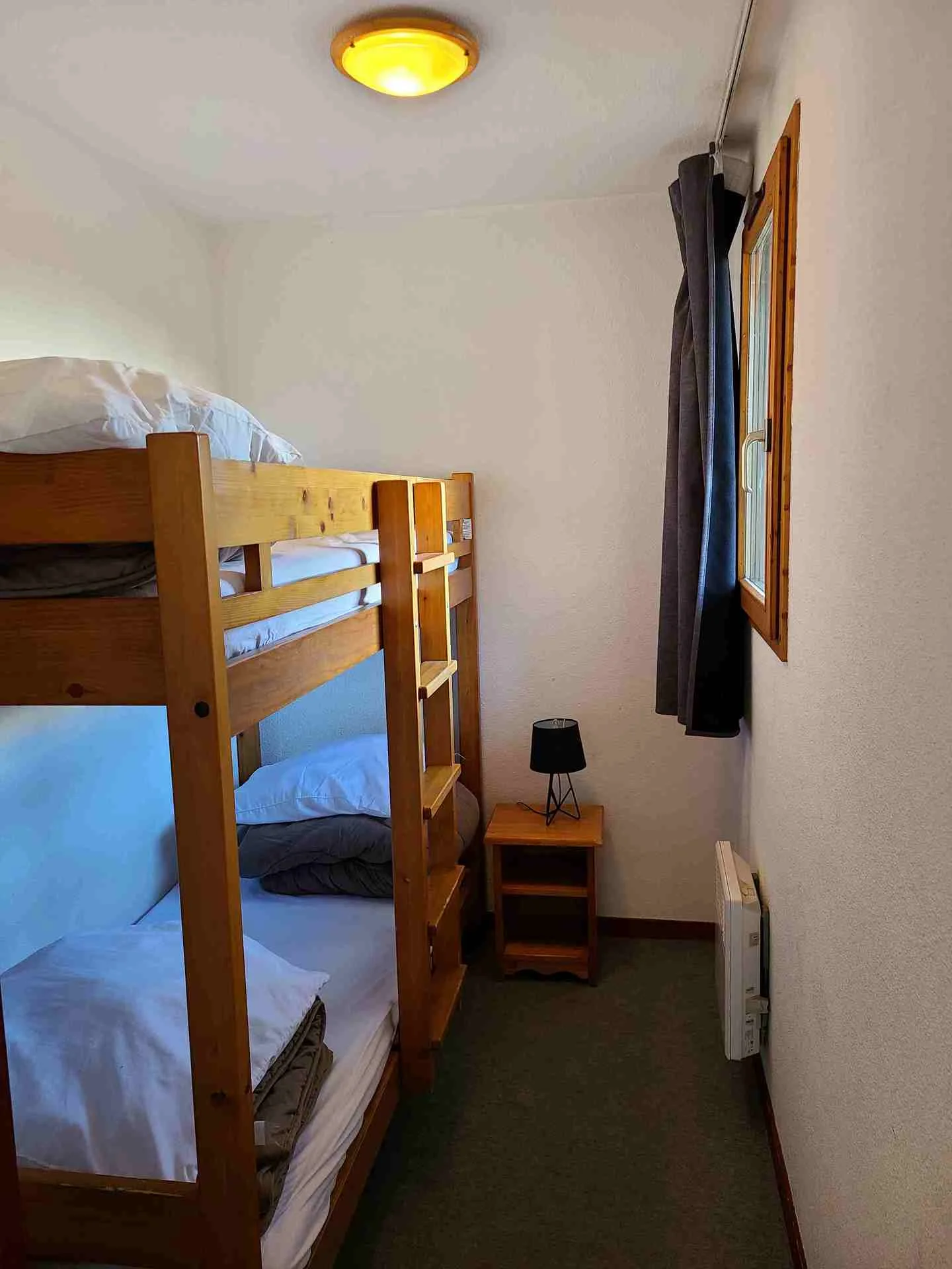 - Hoofdvertrek: 2 stapelbedden (2 slaapplaatsen, elk 80x190 cm per bed)