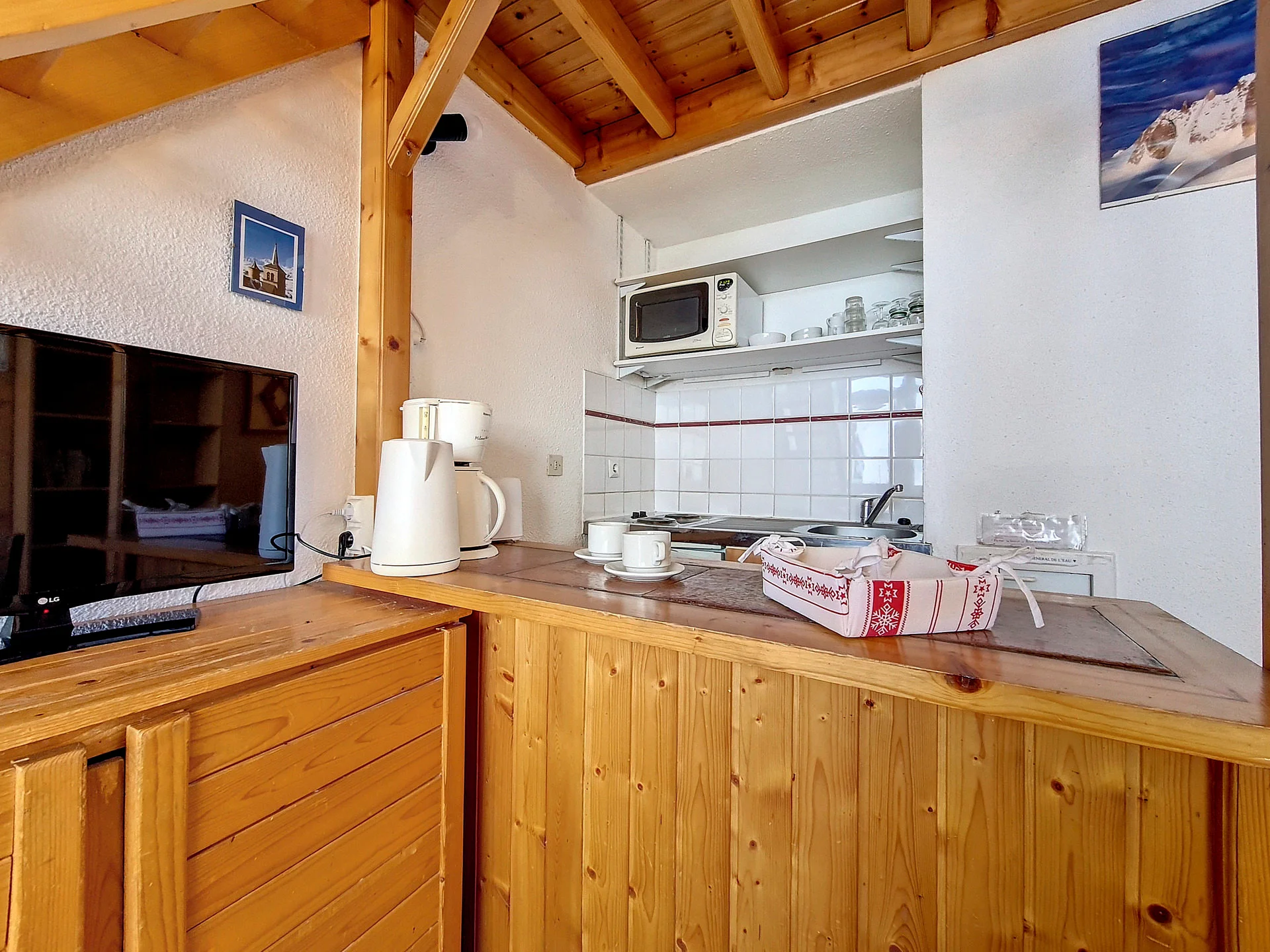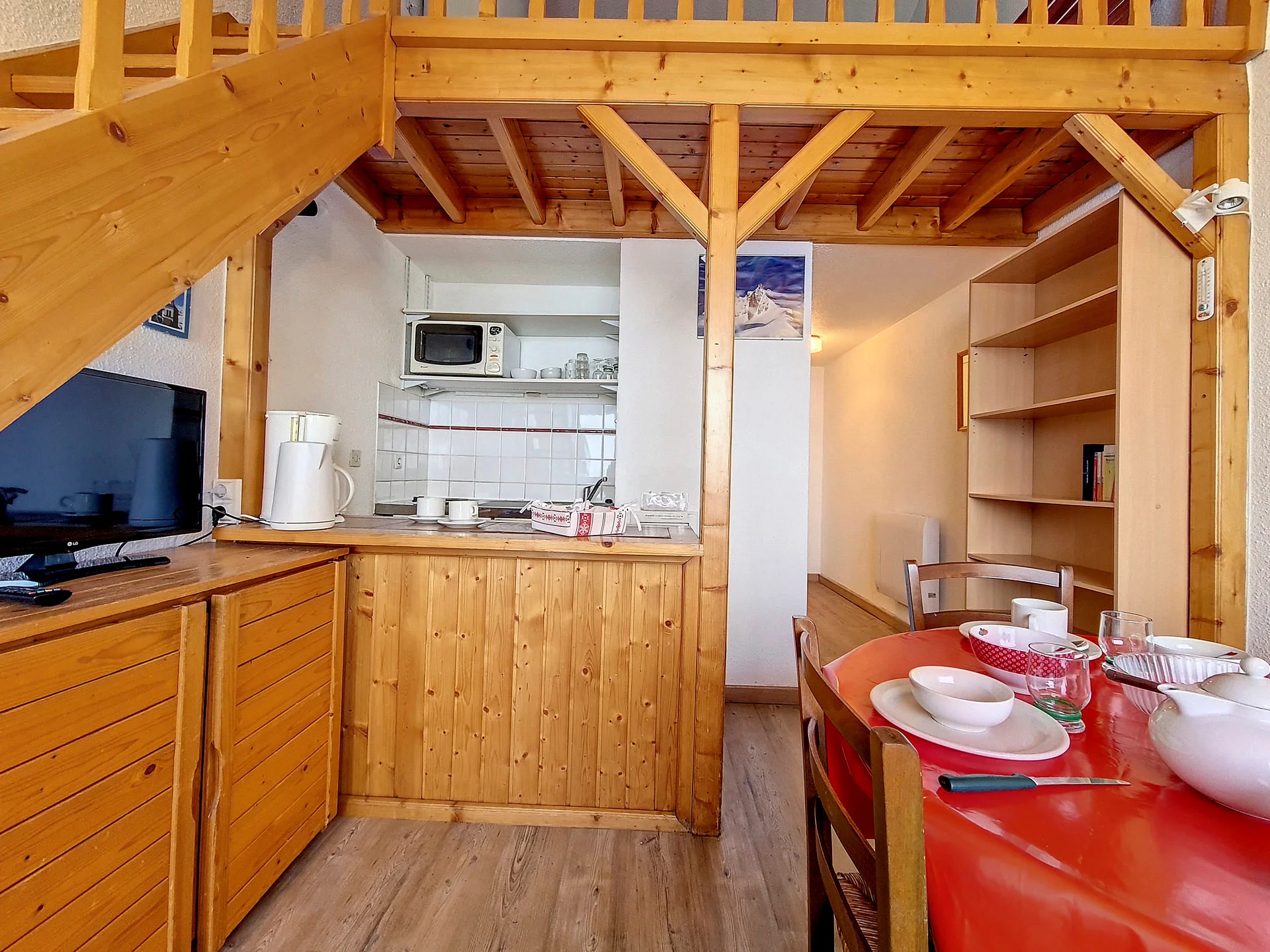 De appartement beschikt over een goed uitgeruste open keuken met inductiekookplaat, oven, magnetron, koelkast, vaatwasser, broodrooster, waterkoker, Senseo-apparaat en mini-oven. Aanwezig zijn verder onder meer een crêpepan, fondue-set, raclette-apparaat en een cocotte minute. Ook beschikbaar zijn alle nodige keukenbenodigdheden zoals servies, bestek, pannen, glazen, kopjes en diverse keukengerei.