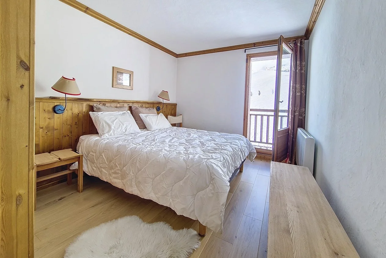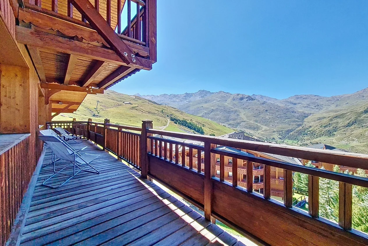 Balkon of terras aanwezig. Zuid-oriëntatie. Gelegen op verdieping 1, deur 5. Direct aan de pistes.