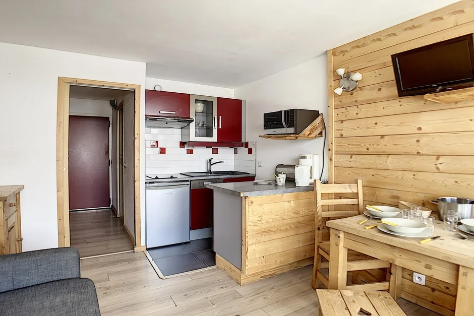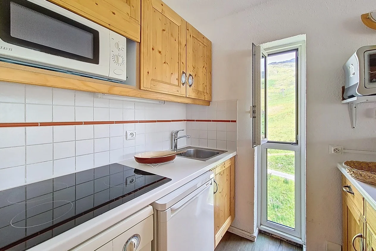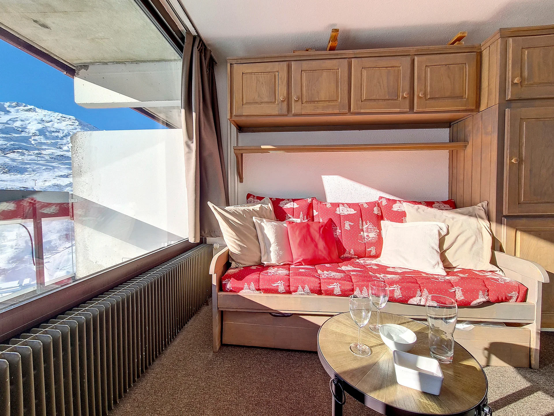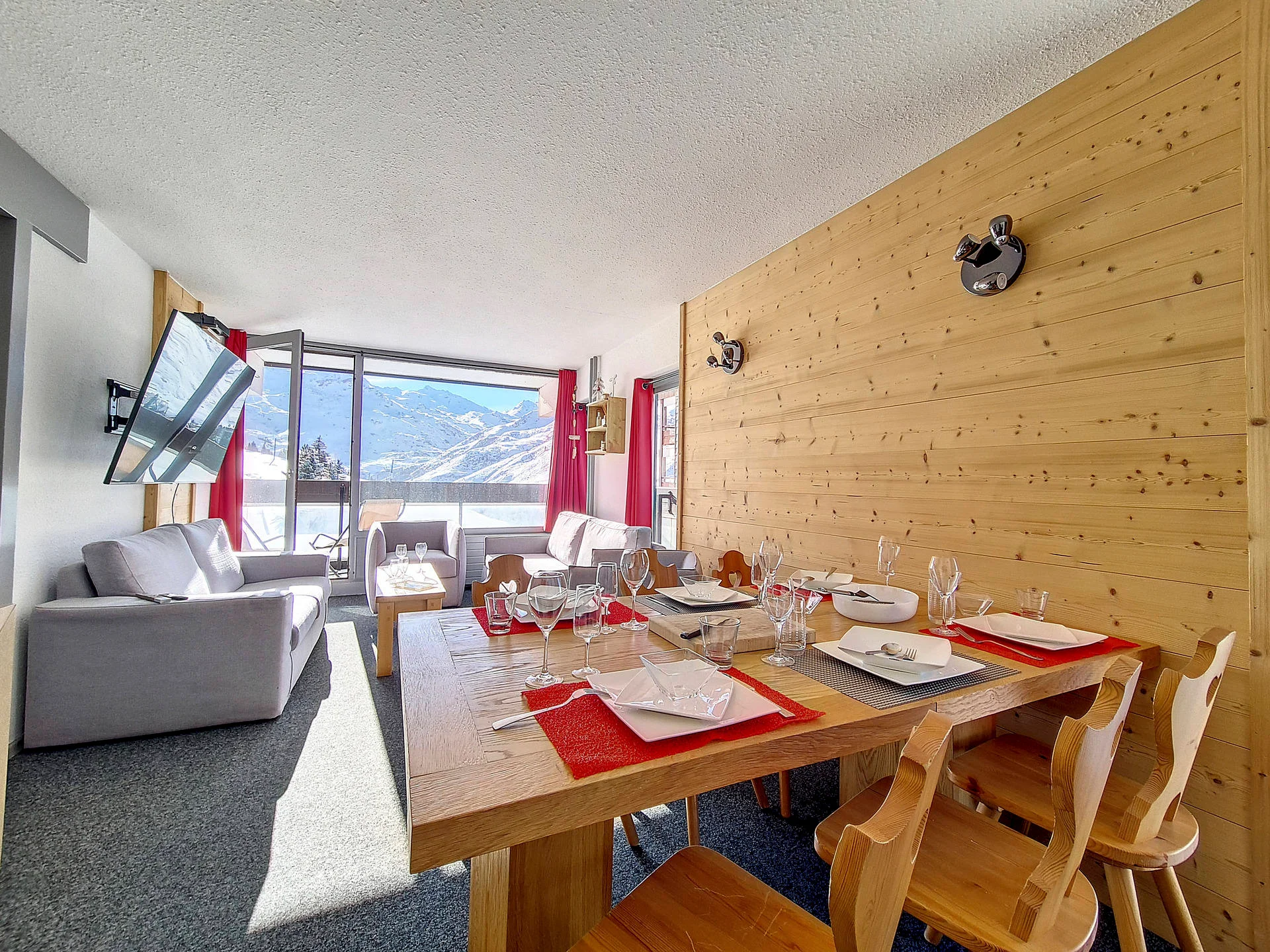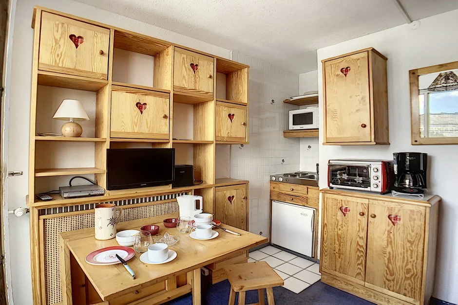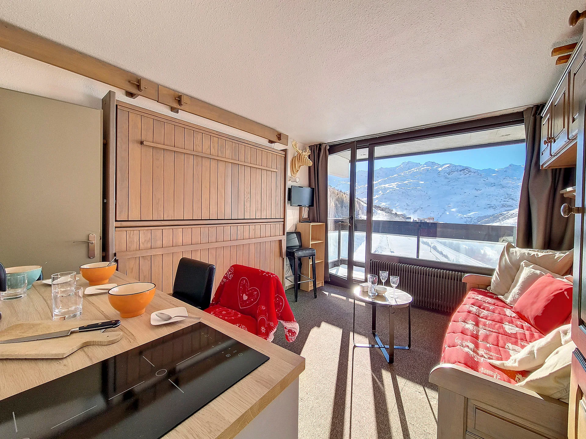 Appartement op hoge verdieping met lift. Balkon op het zuiden met zitplaatsen en eettafel. Uitzicht op de skigebieden. Lift aanwezig in het gebouw. Direct aan de pistes gelegen.