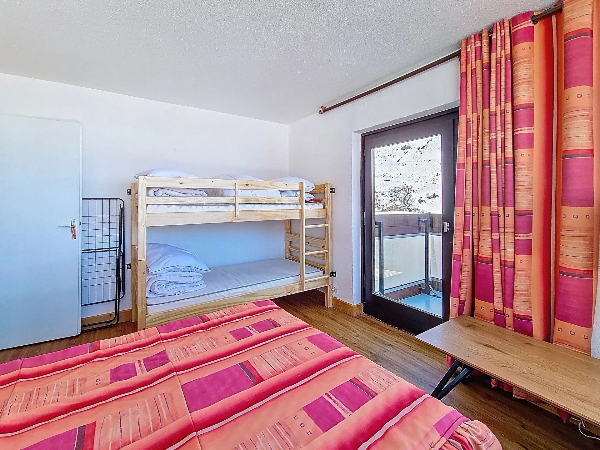 Slaapkamer 2: 1 tweepersoonsbed (140x190 cm) + 2 eenpersoonsbedden (80x190 cm)