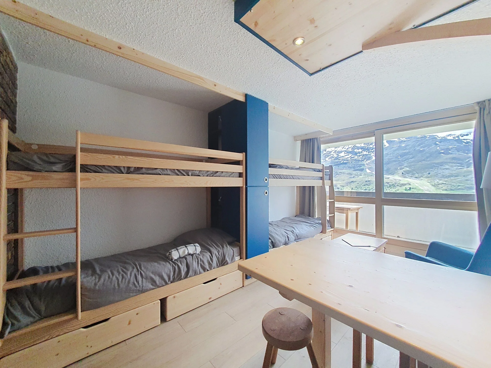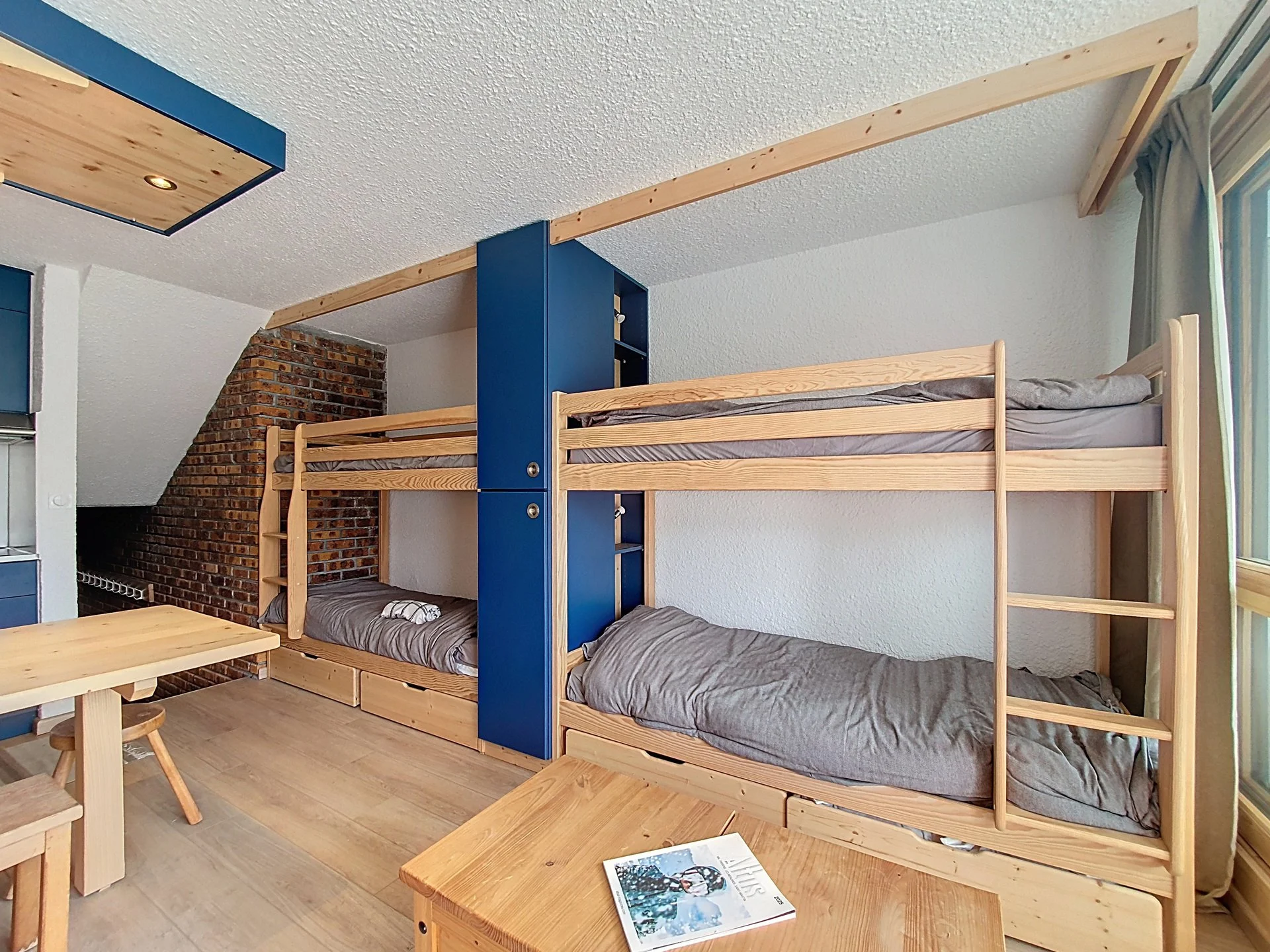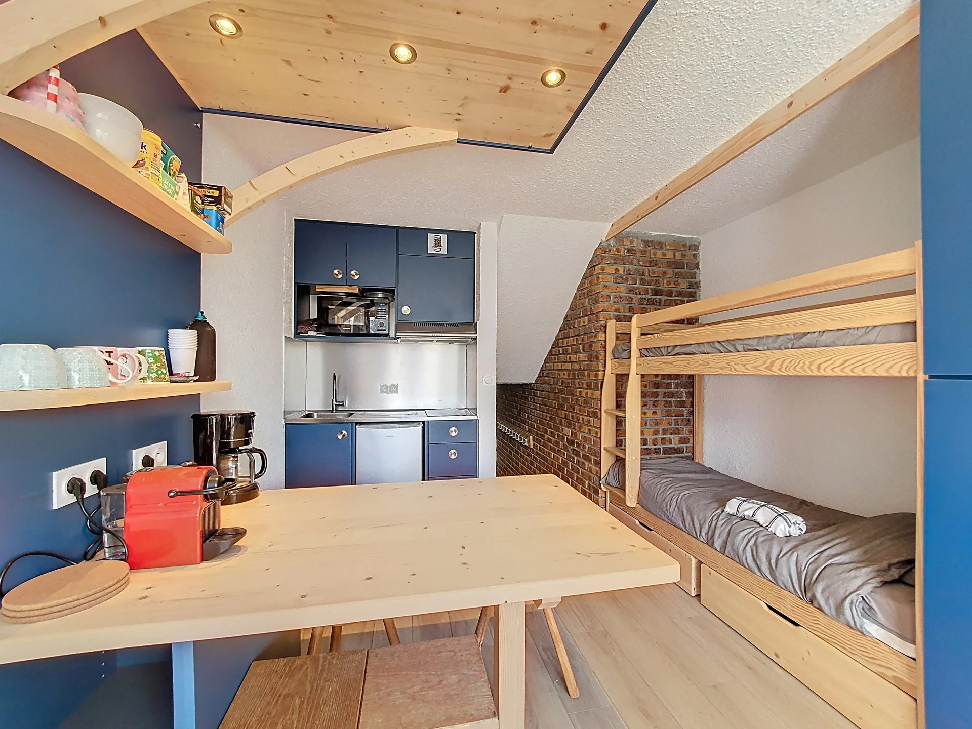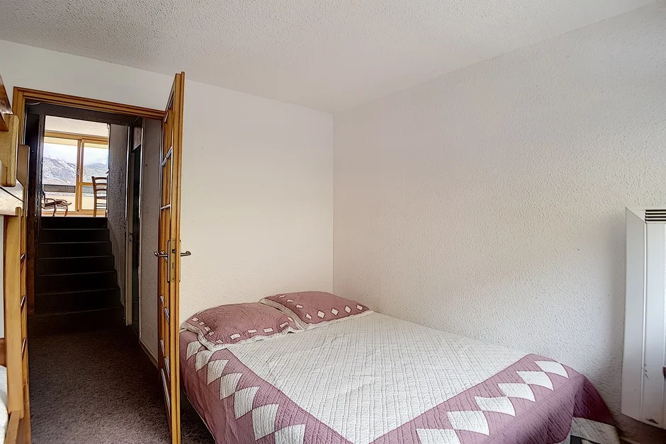 Slaapkamer: 1 tweepersoonsbed (140x190 cm) + 1 stapelbed (2 slaapplaatsen, 80x190 cm per bed)