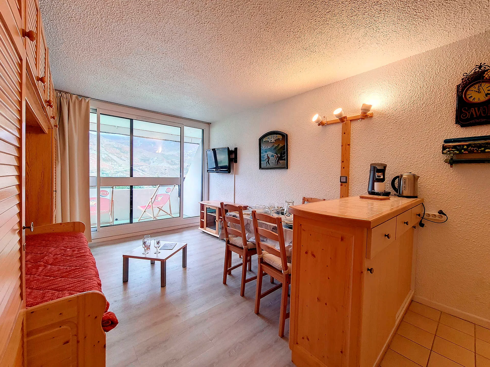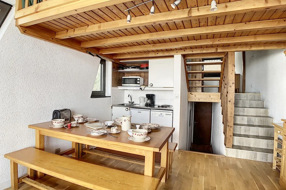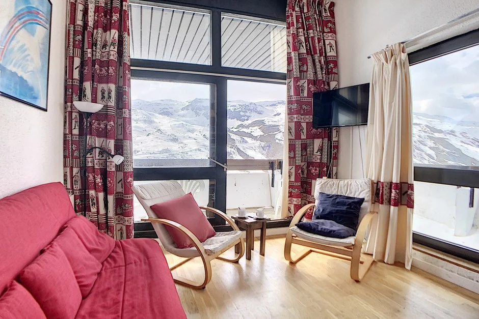 5e verdieping (bereikbaar met lift), zuidgeoriënteerd balkon met uitzicht. Directe ligging aan de pistes.