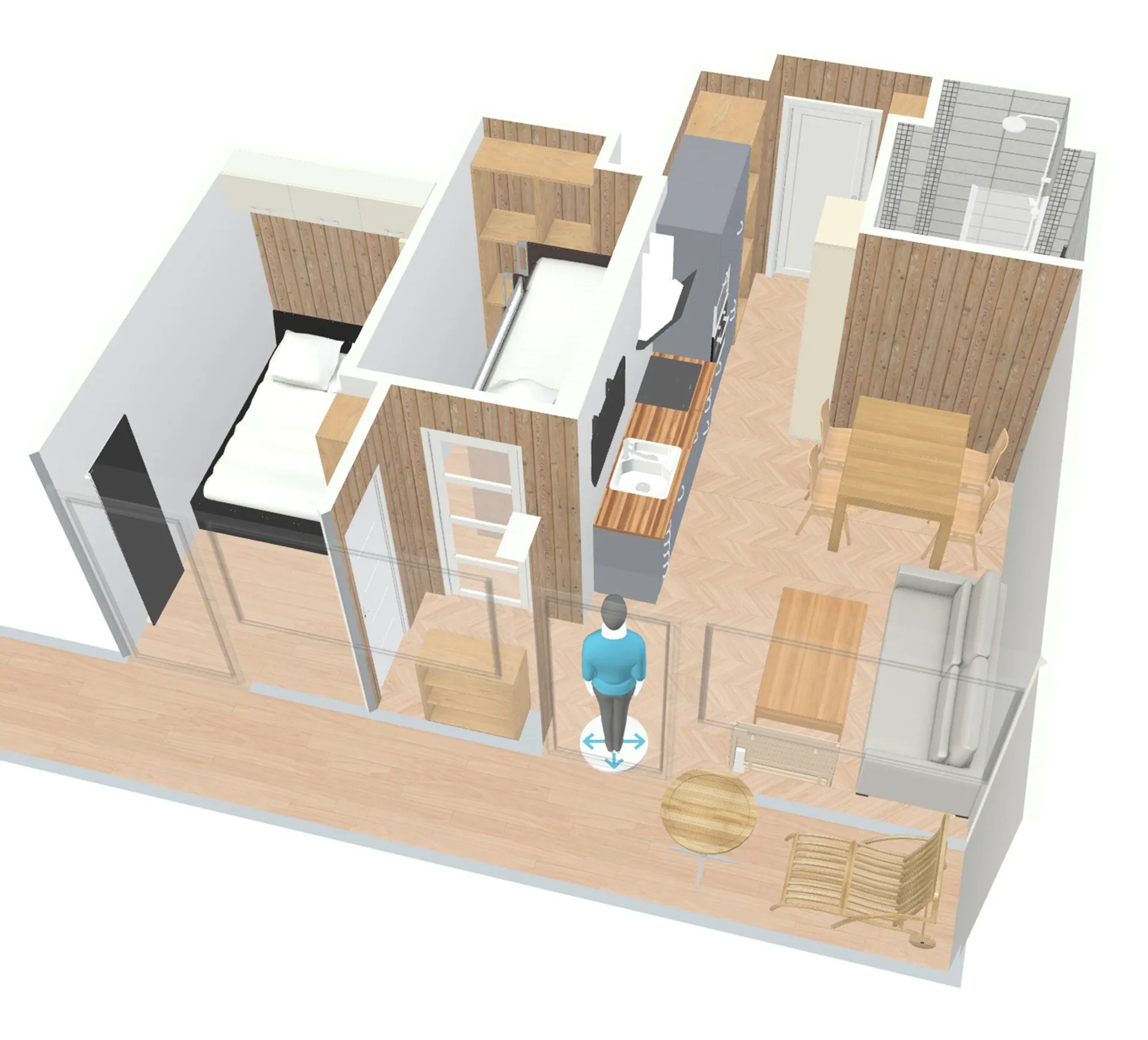 Woonkamer: slaapbank (2 slaapplaatsen), slaapbank (2 slaapplaatsen), slaapbank (2 slaapplaatsen)