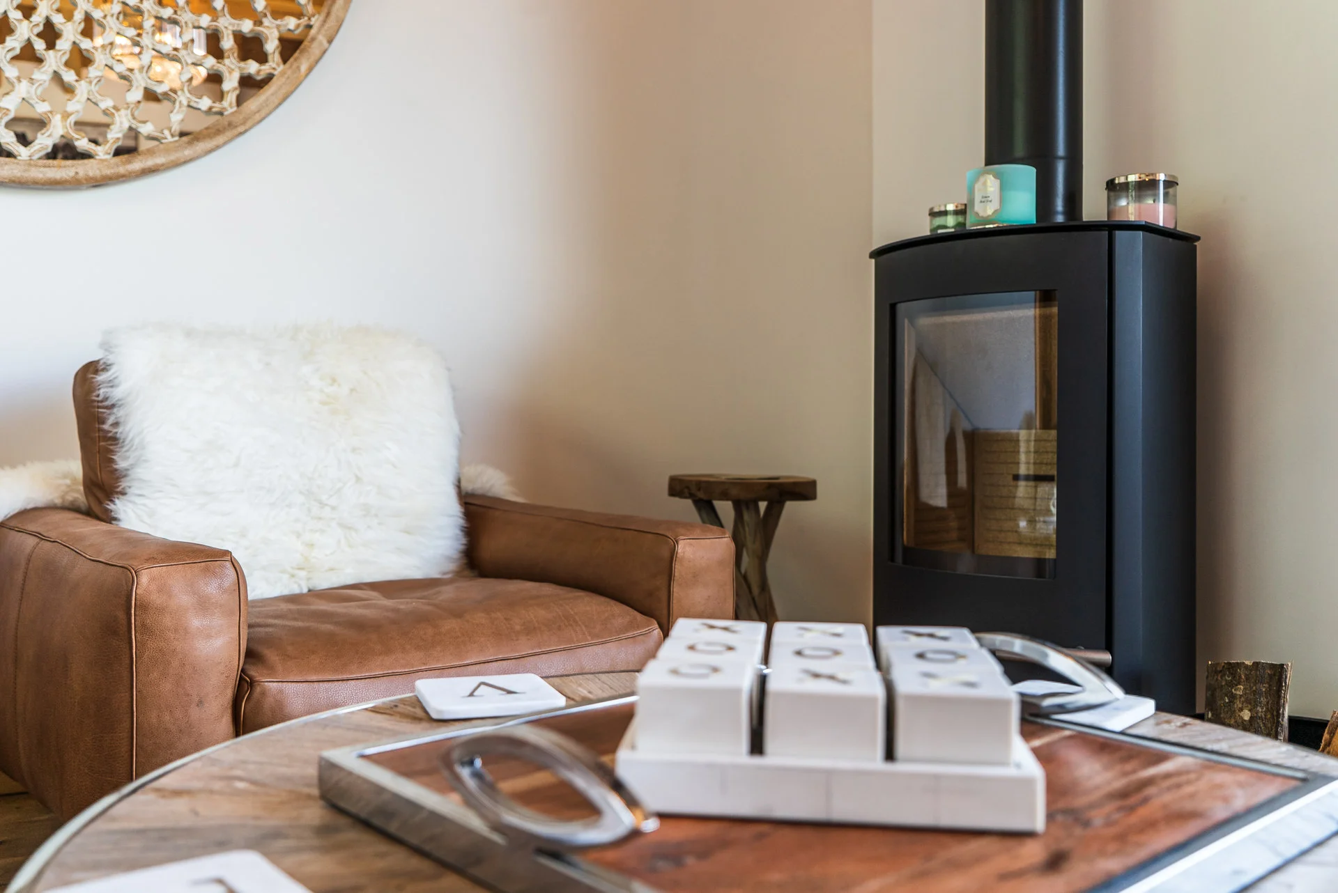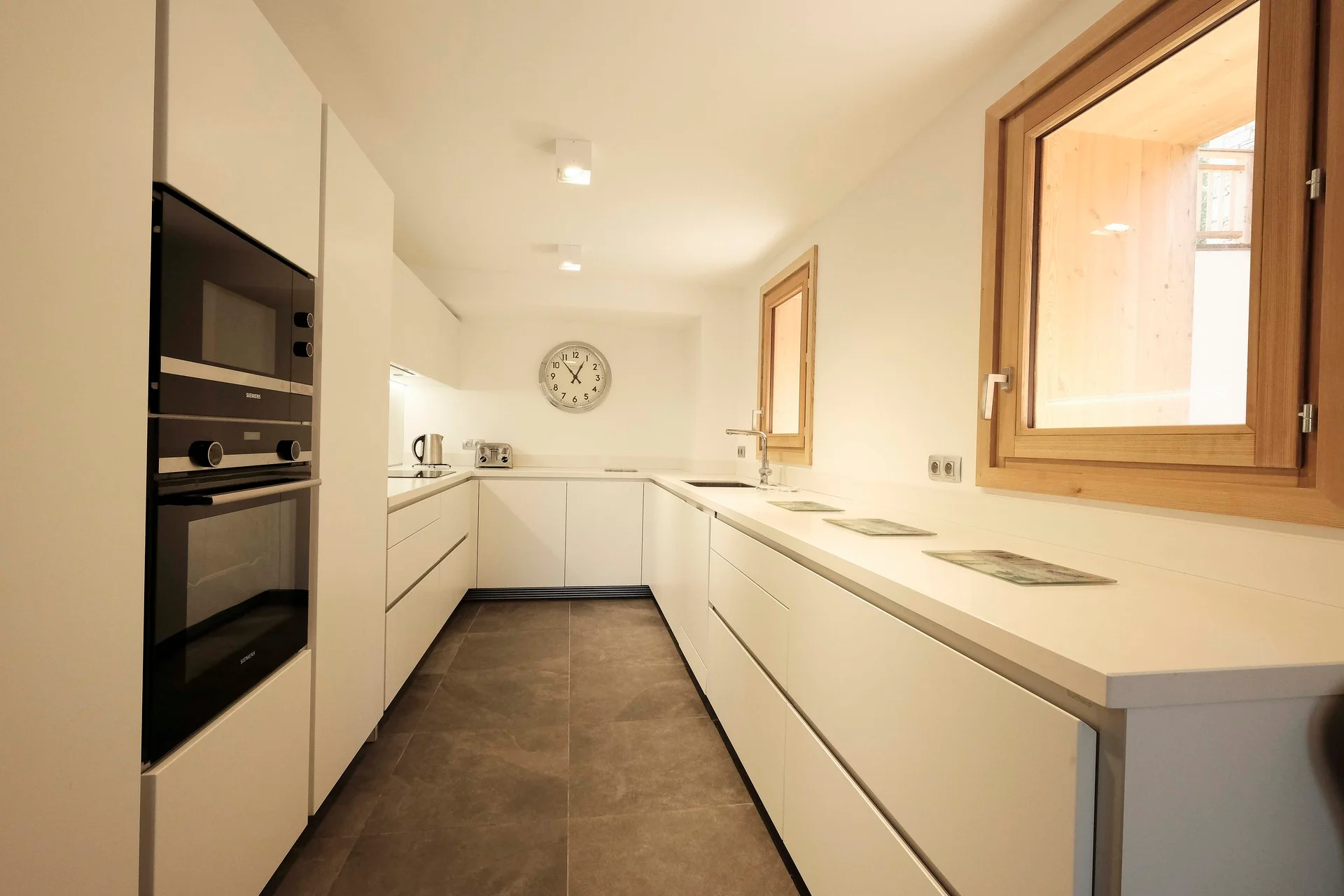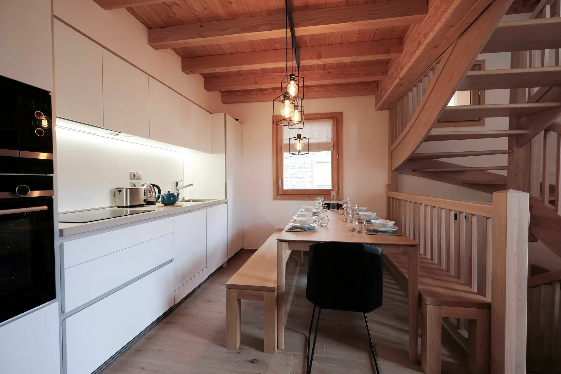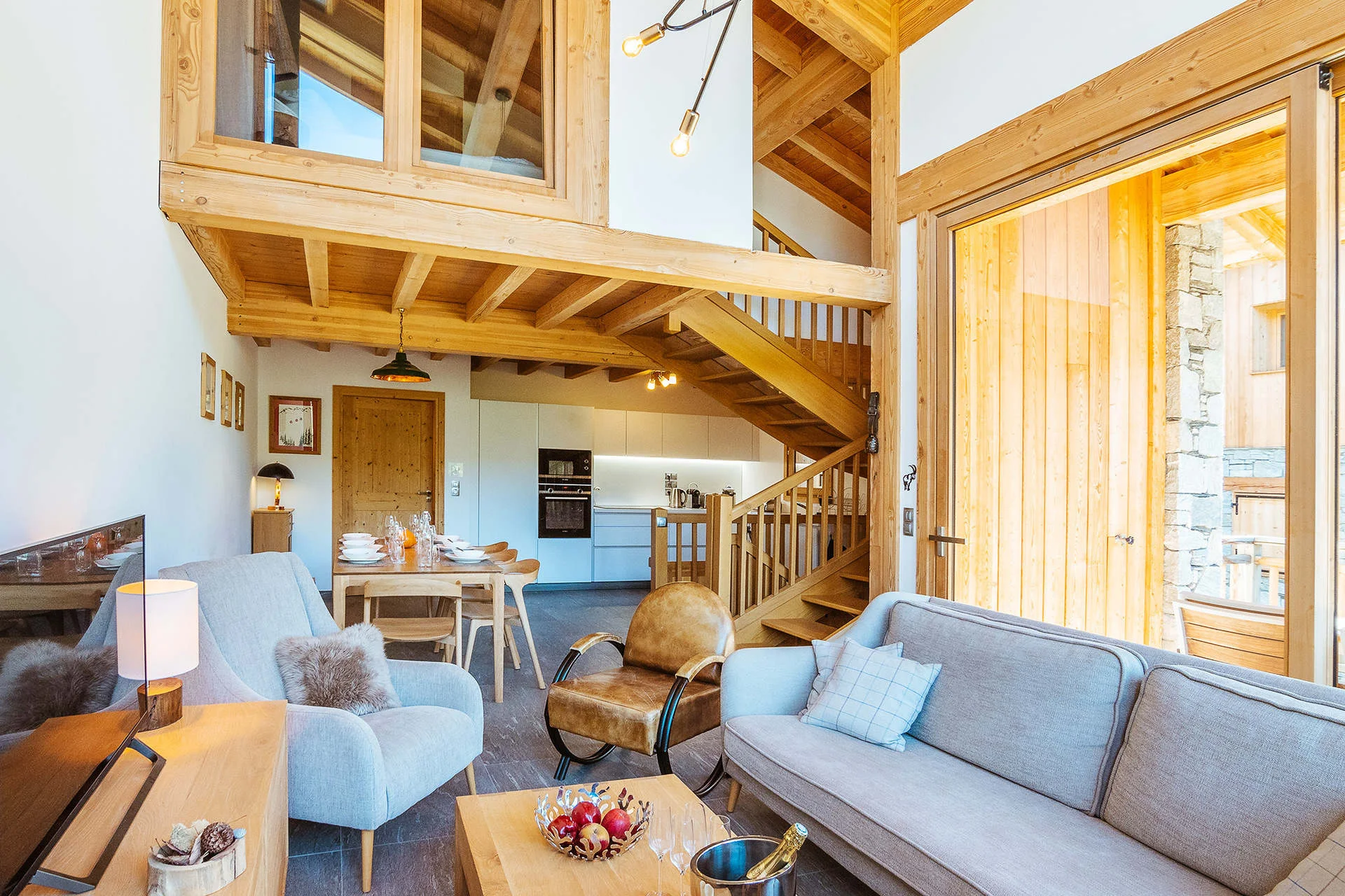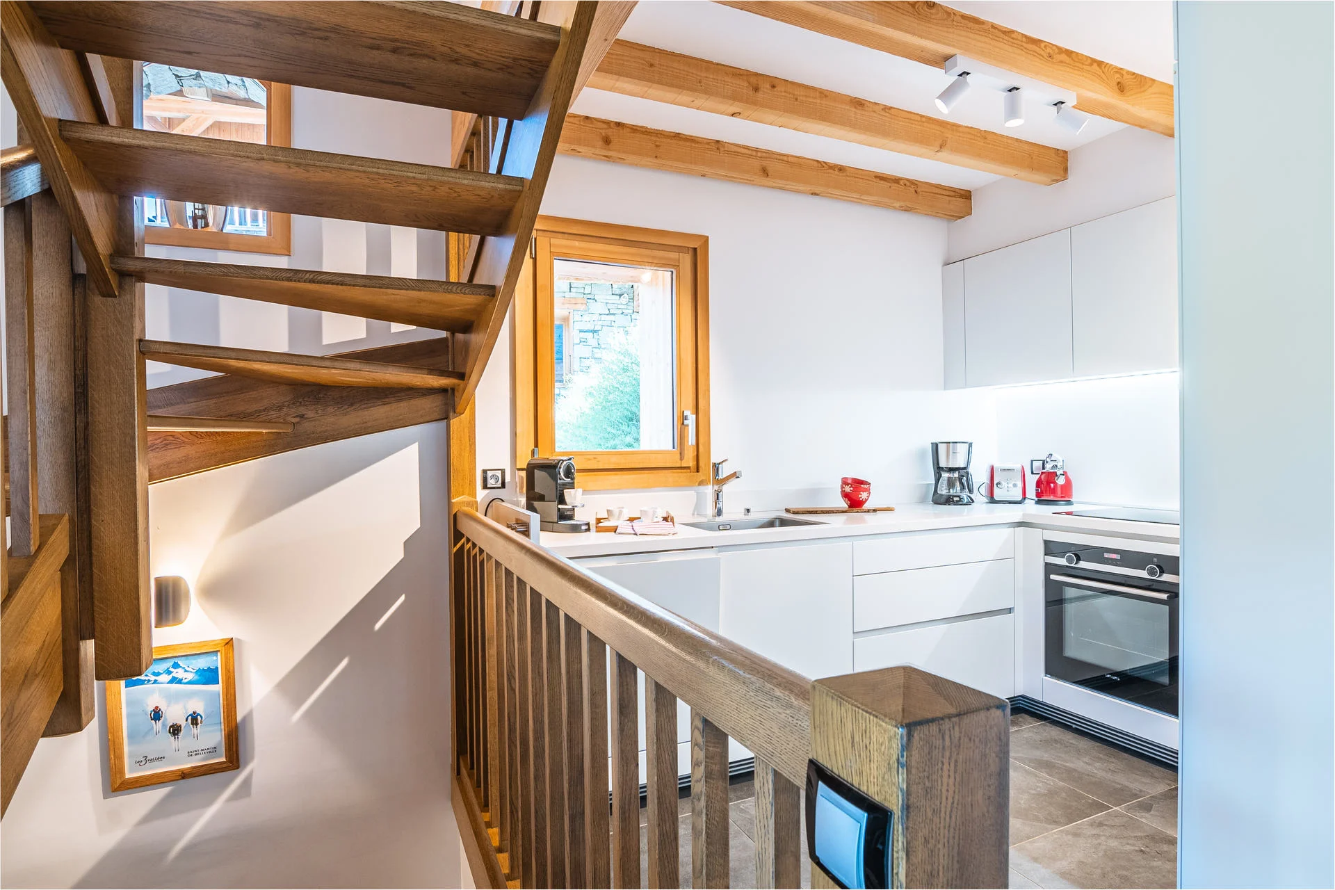 Gezellige woonkamer met TV, Orange-box aansluiting en 2 afstandsbedieningen, zithoeken met 3 fauteuils en canapé, 3 salontafels, 8 stoelen, tafel, 6 onderzetters, speelplaid, Marshall-speaker, houten houtmand, schapenvacht en decoratieve houders. Elektrische induction kookplaat (3 pitten) Siemens, oven, broodrooster Cuisinart, elektrische hachoir WMF, espresso-apparaat illy, filterkoffiezetapparaat HKoenig, vaatwasser Siemens en koelkast met vriesvak.