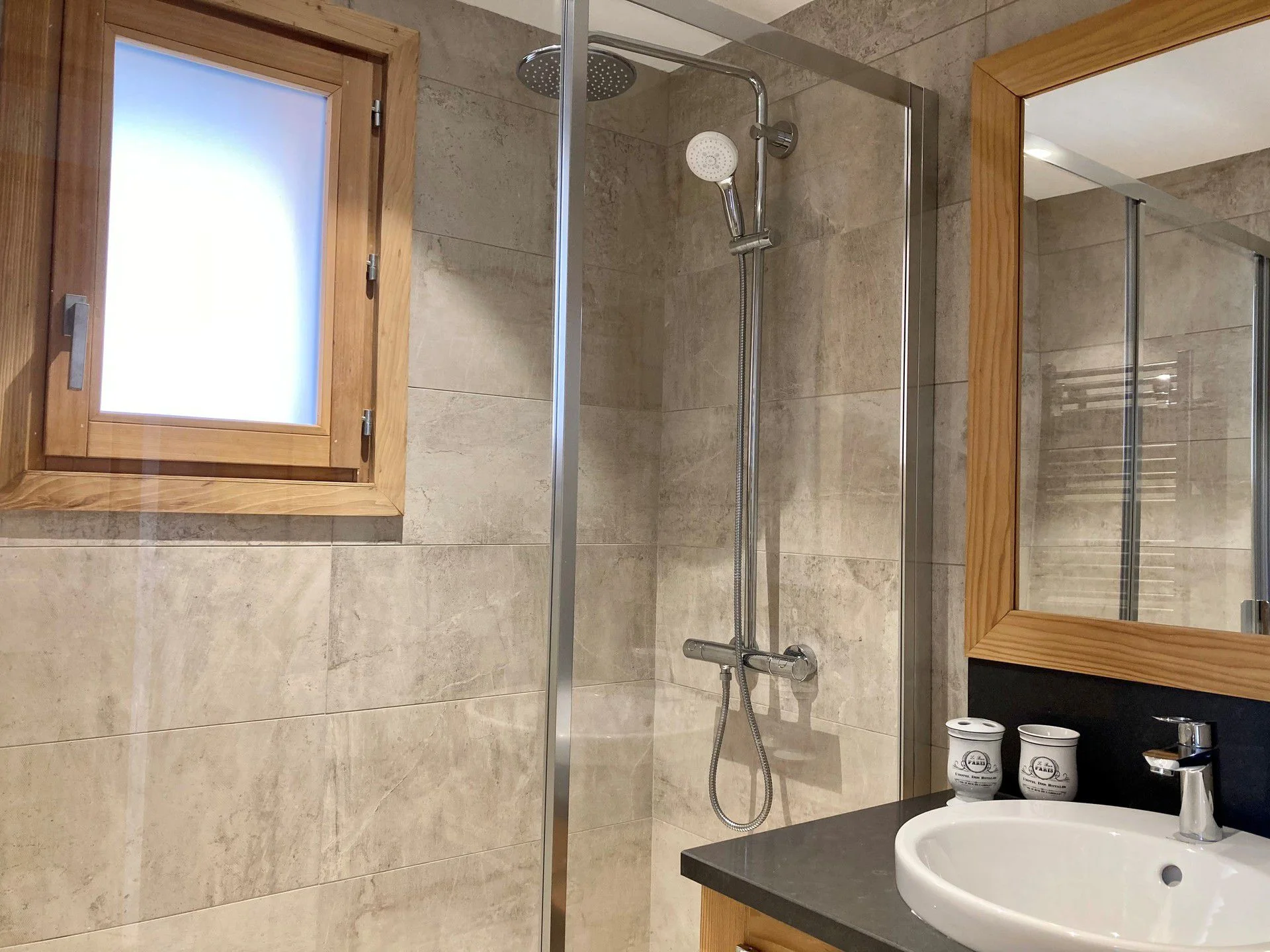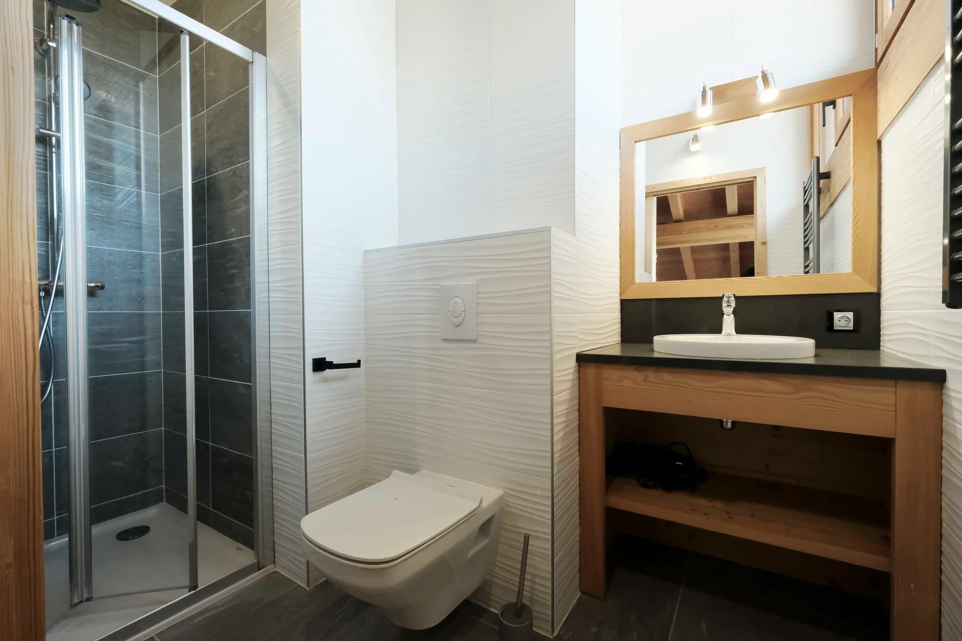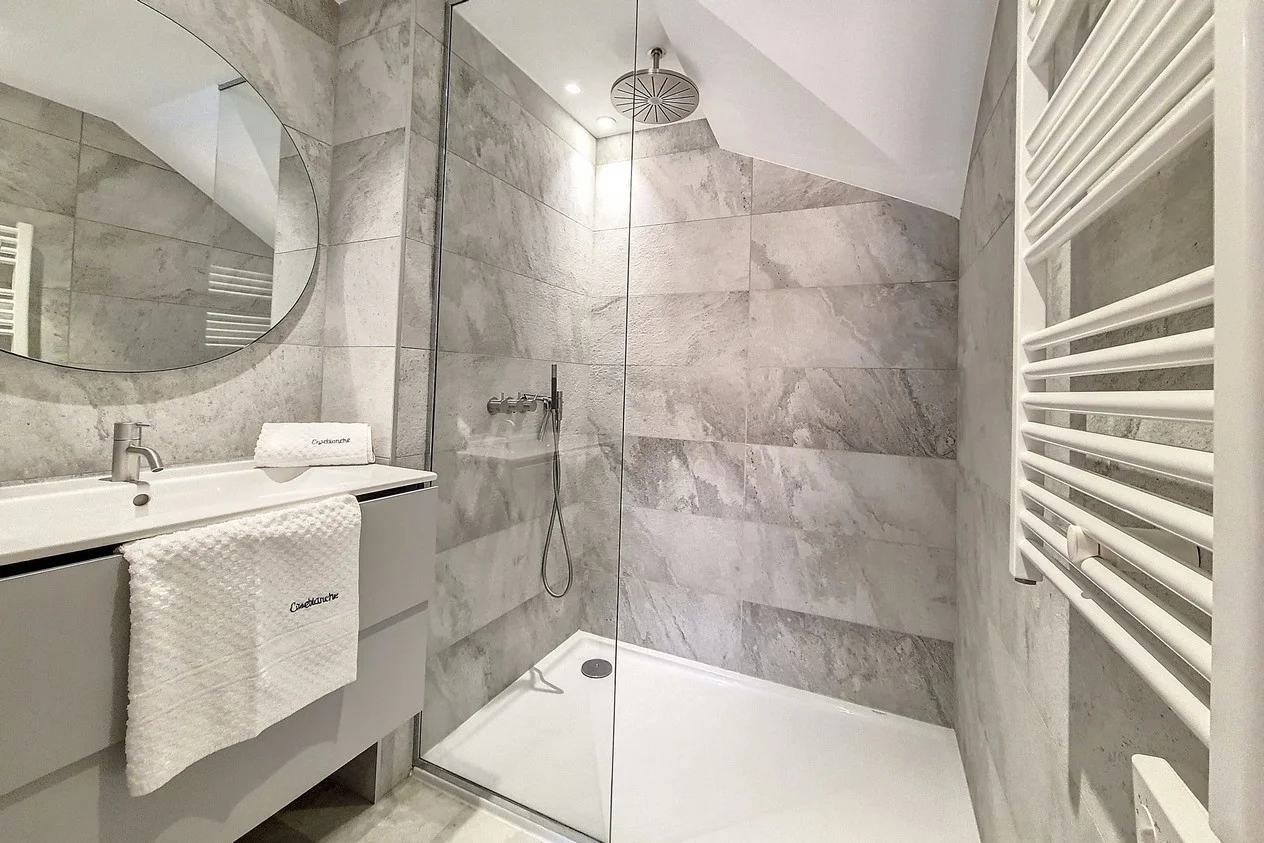 Slaapkamer 3: 2 eenpersoonsbedden (80x190 cm), 2 kussens, 2 dekbedden, 2 beschermende matrashussen, 2 schapenvachtonderleggers, sprei, 19 kledinghangers en spiegel. Ruime badkamer met grote douche en apart toilet, uitgerust met toiletborstel, zeepdispenser, vuilnisbak, linnenmand, opbergmand, tandenborstelbeker, föhn met 2 opzetstukken en vergrootspiegels.
