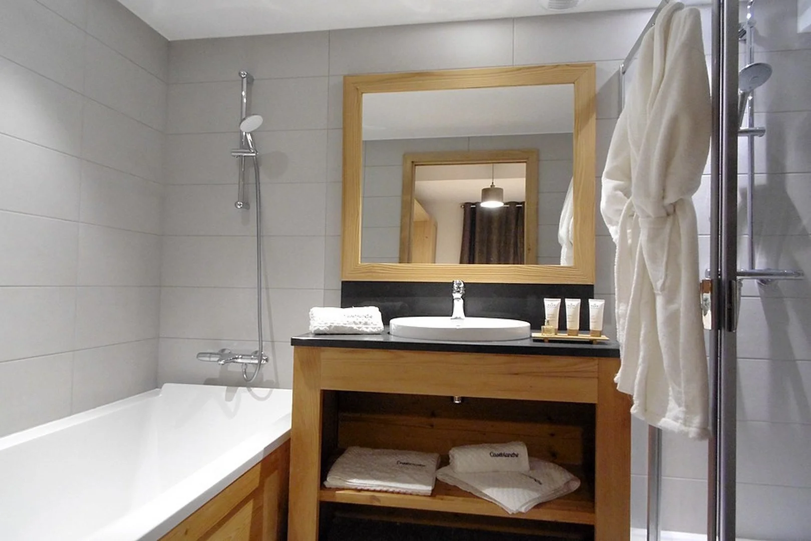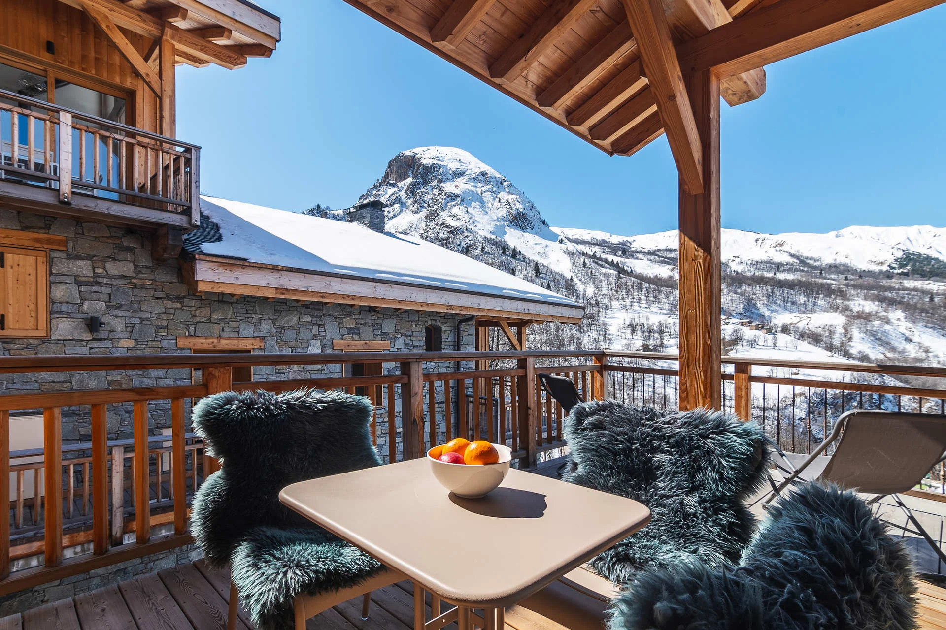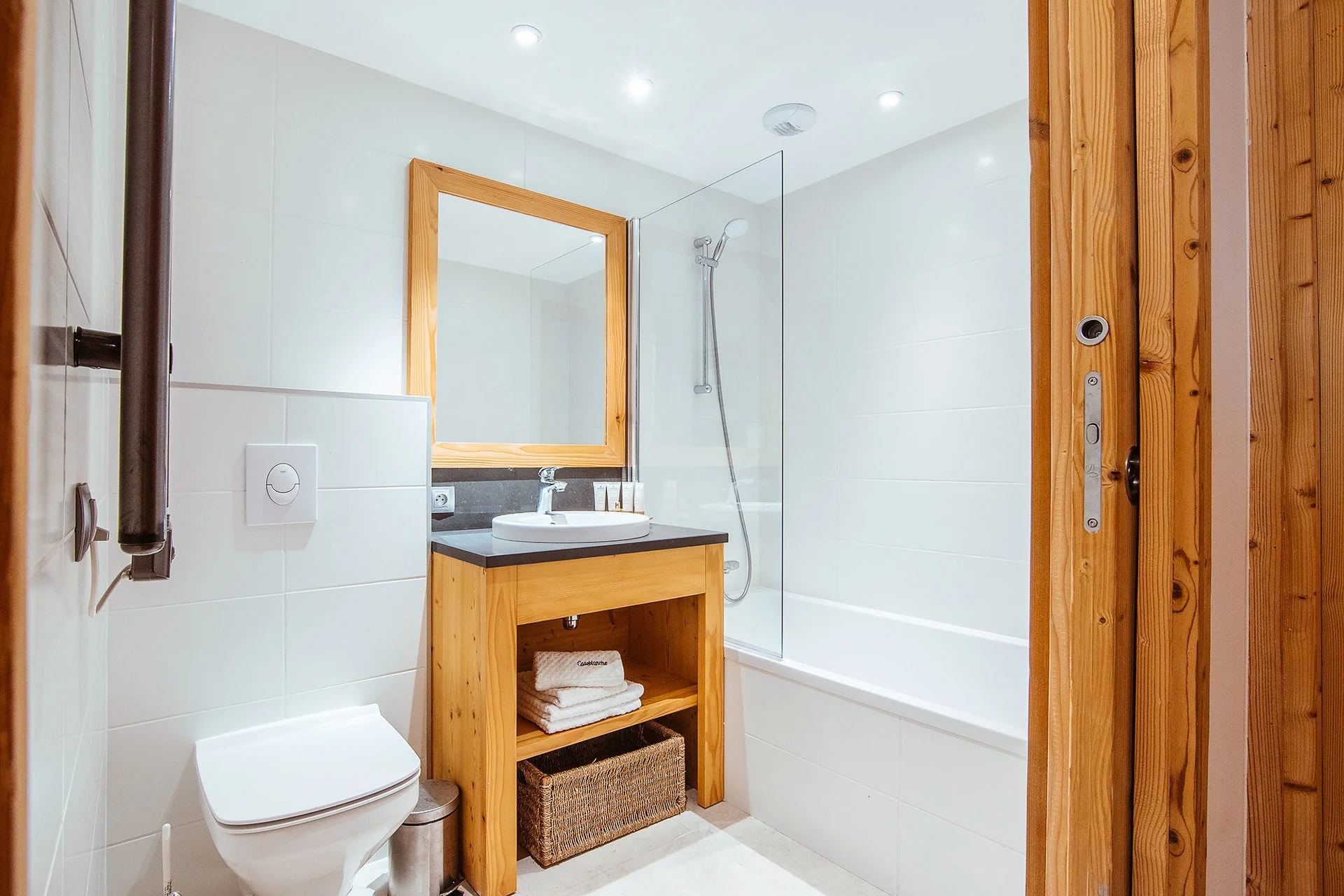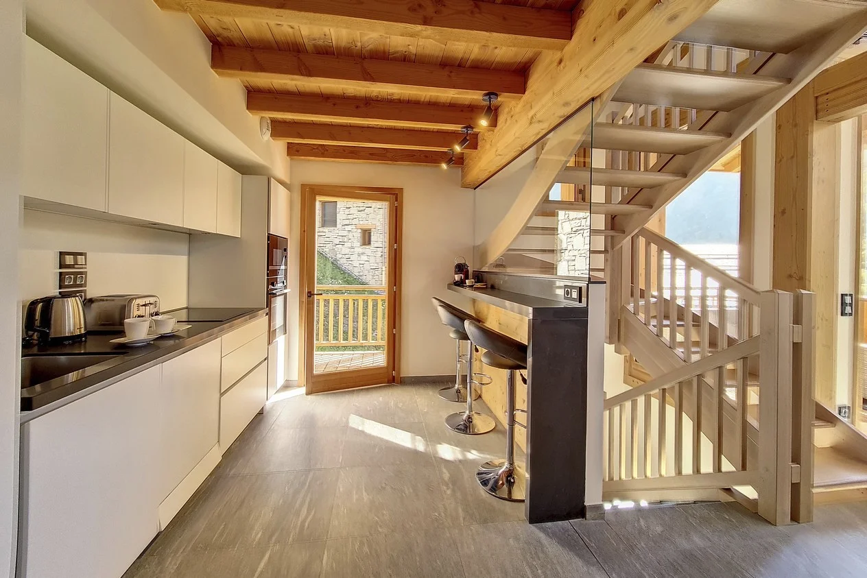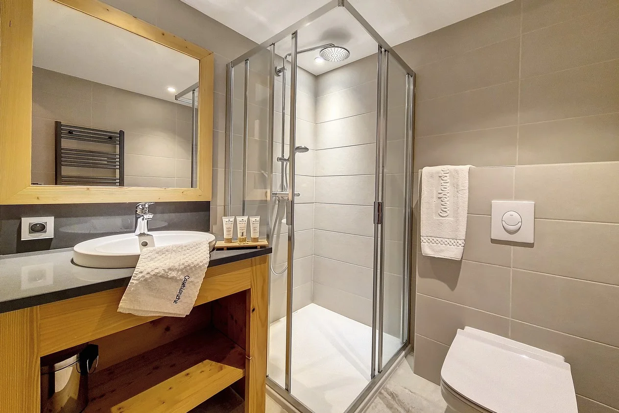 Entree aan het Plein van Caseblanche, begane grond. Pietvoetvriendelijk. Nabij de pistes en skiliften. Parkeerplaats beschikbaar.