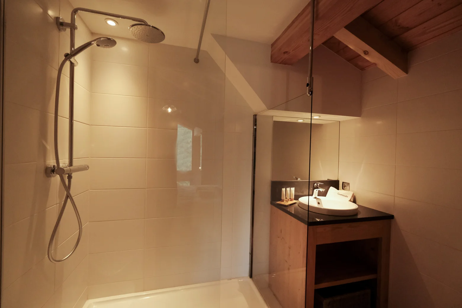 Totaal 3 badkamers met douche en 4 aparte toiletten verdeeld over de accommodatie. Alle voorzien van essentiële toiletartikelen.