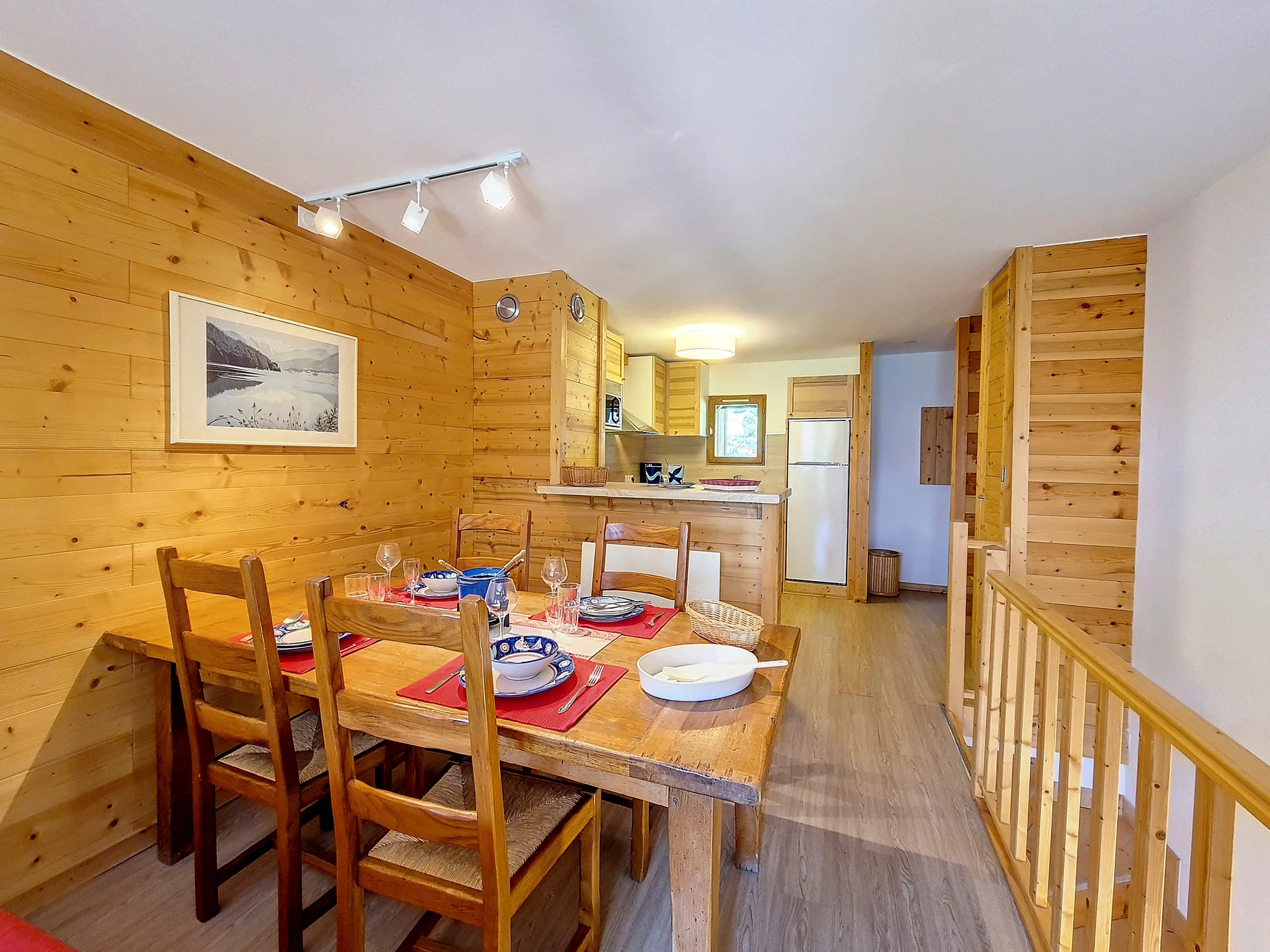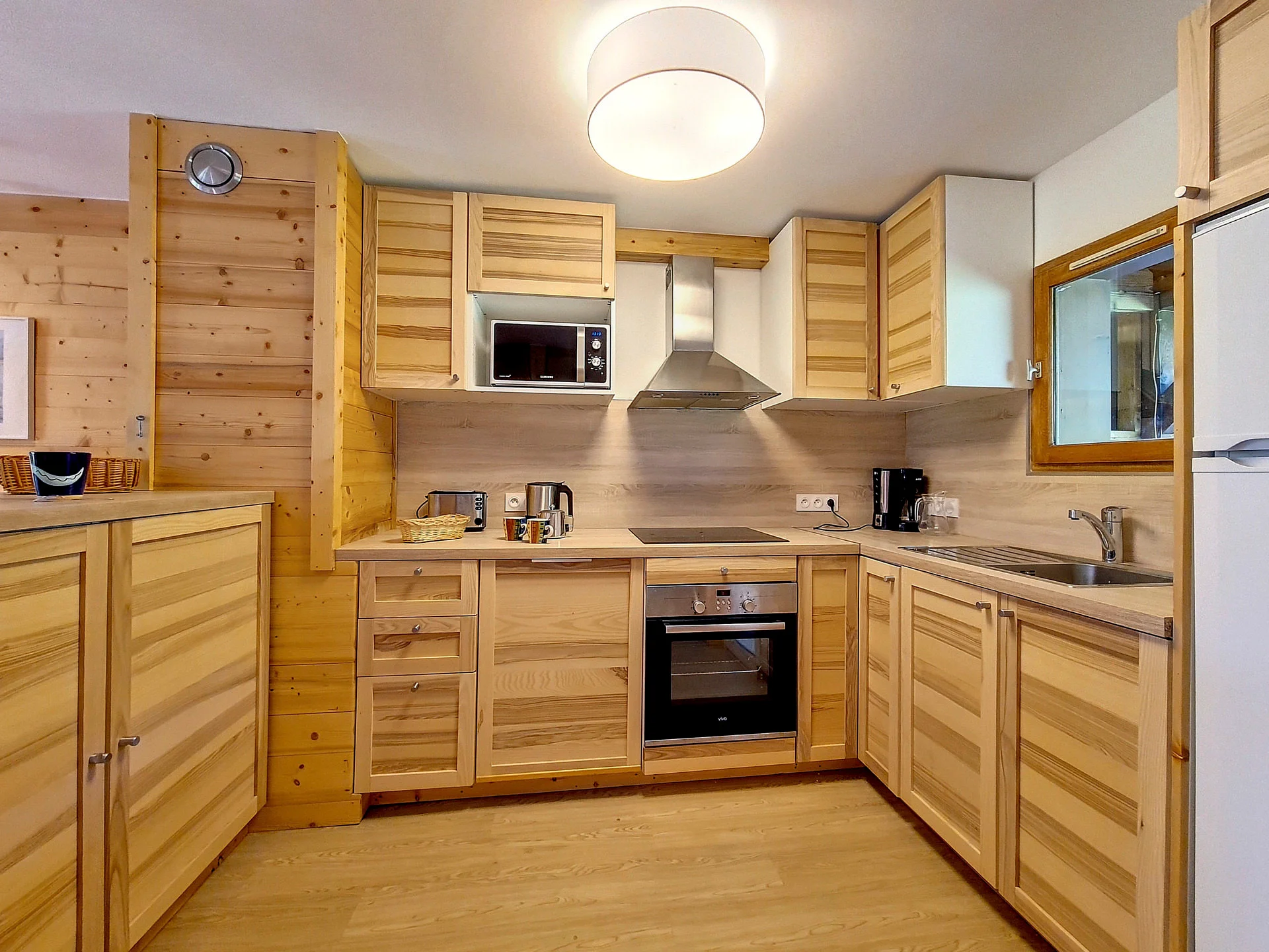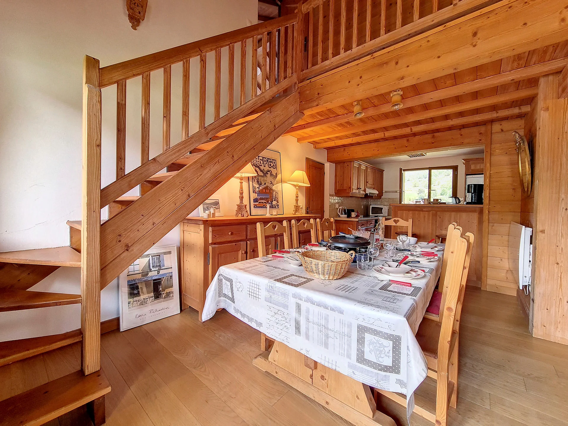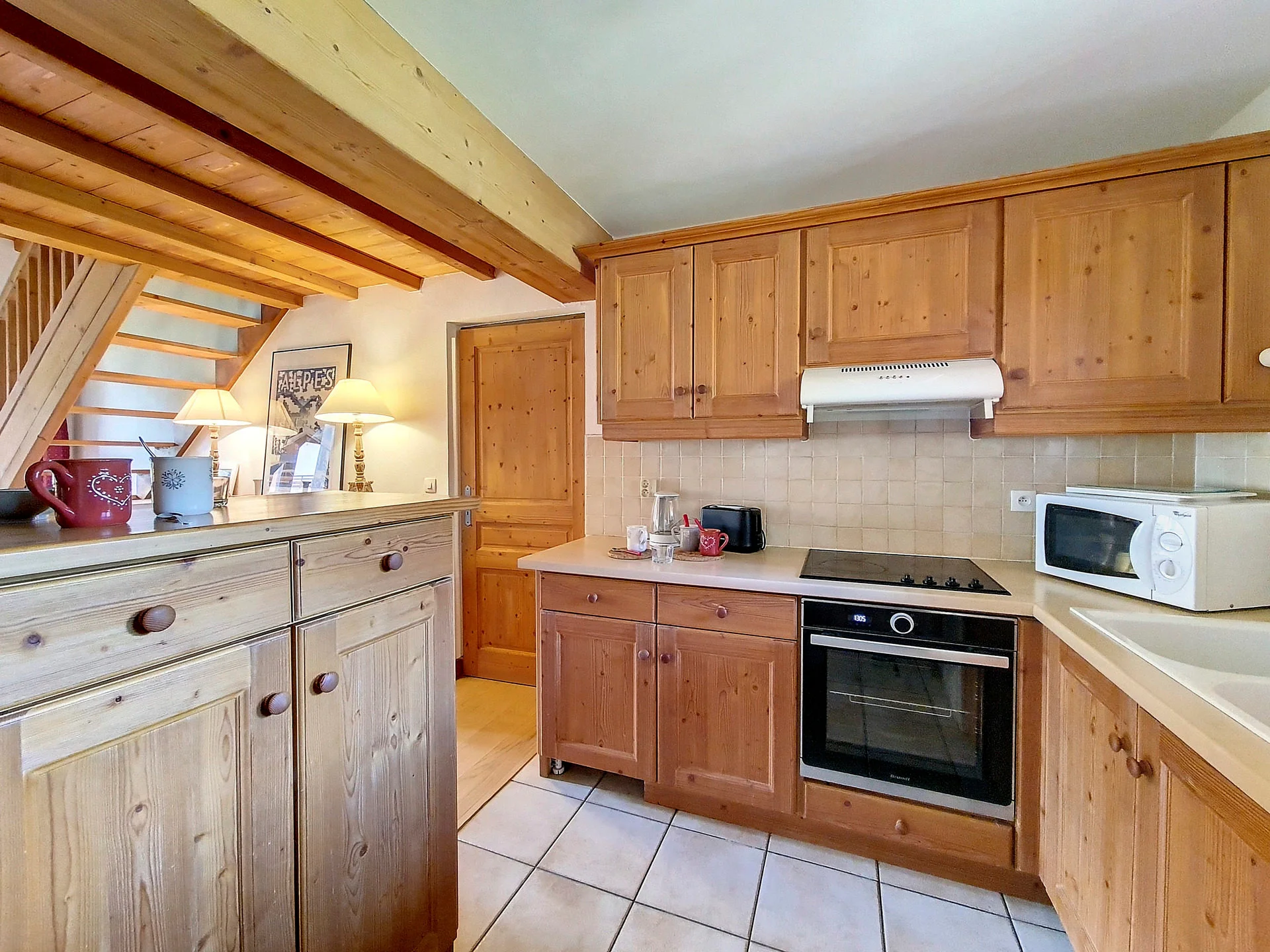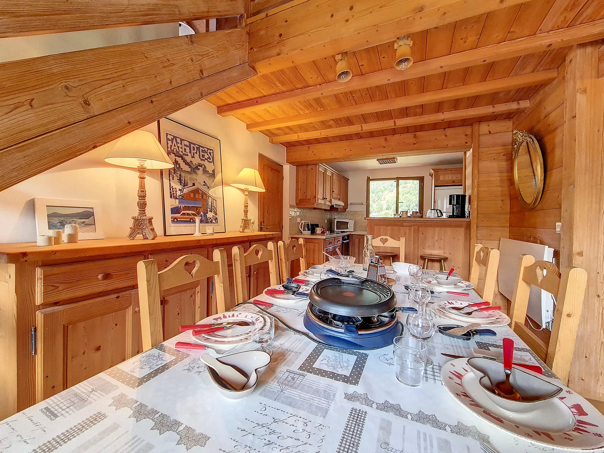 Goed uitgeruste keuken met inductiekookplaat (4 pitten), vaatwasser, oven, magnetron, koelkast met vriesvak, waterkoker, twee broodroasters, Nespresso-apparaat, elektrisch fondue-apparaat, raclette-apparaat en diverse kookgerei. Volledige serviesset, bestek, glazen, kannen, saladeslinger, pannen en keukenbenodigdheden aanwezig.
