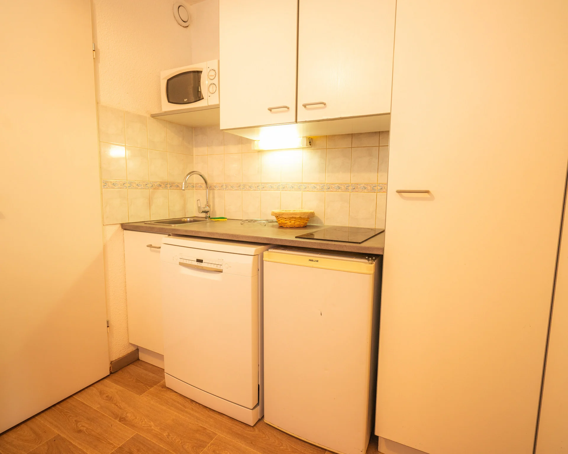 De kitchenette is uitgerust met inductiekookplaat (2 pitten), koelkast met vriesvak, vaatwasser, magnetron, oven, broodrooster, waterkoker, sinaasappelpers, servies, bestek en alle benodigde keukenbenodigdheden.