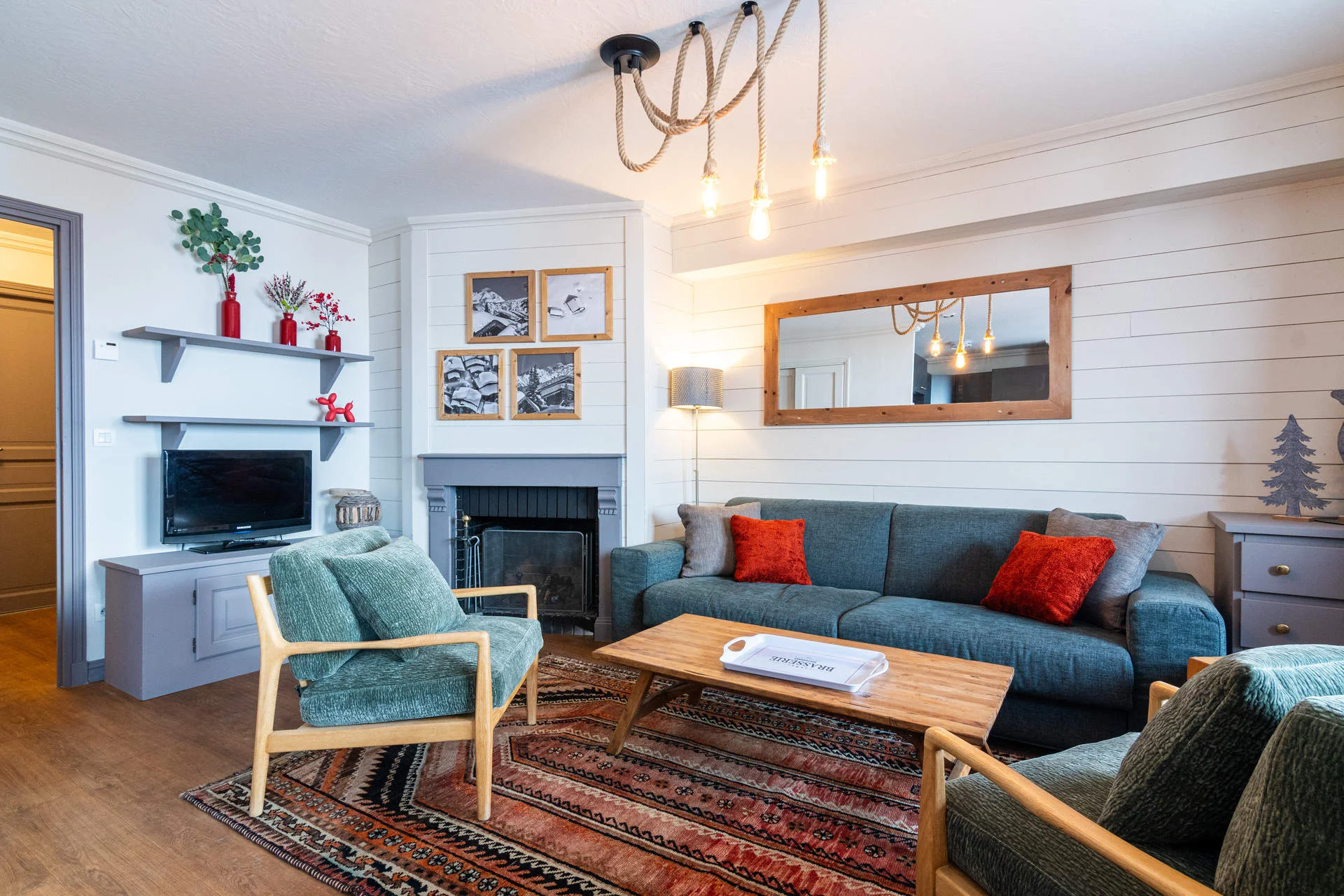 De woonkamer is voorzien van twee zitbanken (waarvan één uitklapbaar), een salontafel, televisie met afstandsbediening en een gezellige open haard met bijhorend haardhout en toebehoren. Veel natuurlijk licht en een prettige sfeer.