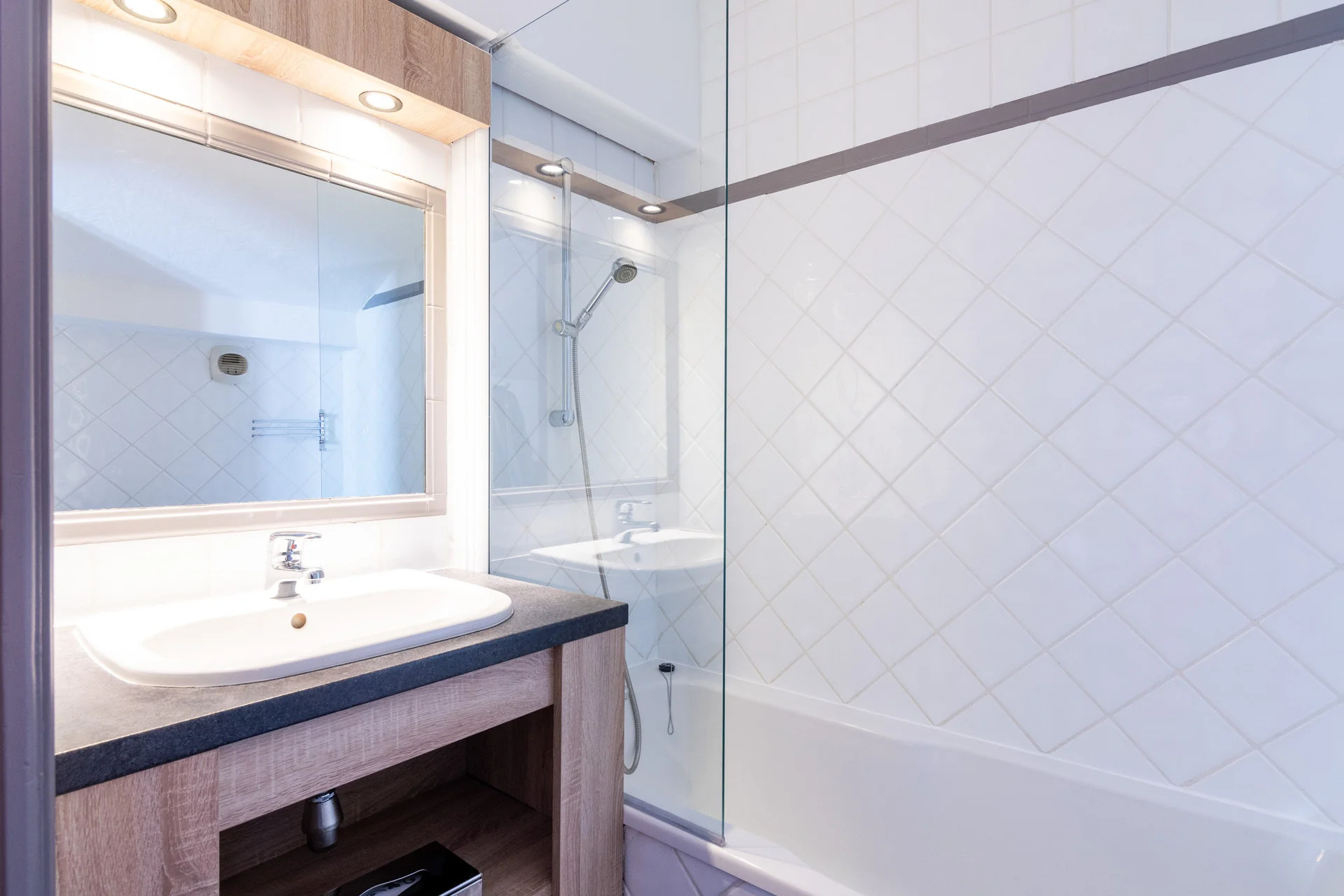 - 4 badkamers, elk voorzien van doucheruimte, meubel met wastafel, toiletpapierhouder, spiegelkast, haardroger en handdoekradiator