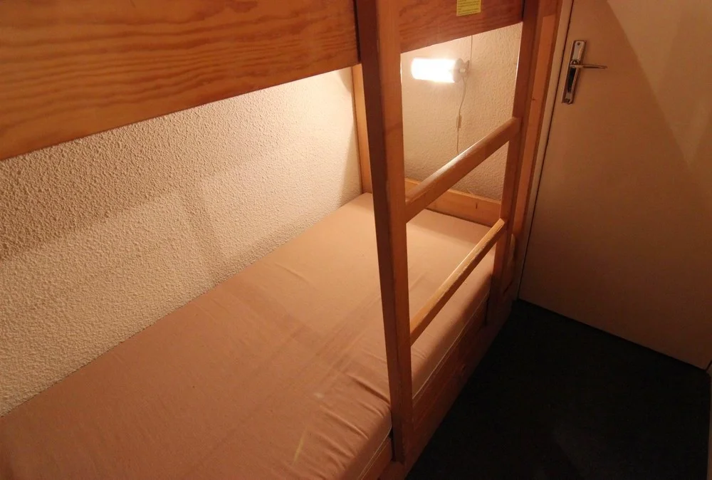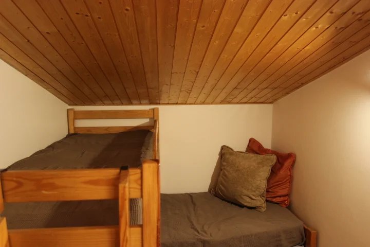 - Slaapkamer: 1 tweepersoonsbed (140x190 cm) en 1 stapelbed (2 slaapplaatsen, 80x190 cm per bed)