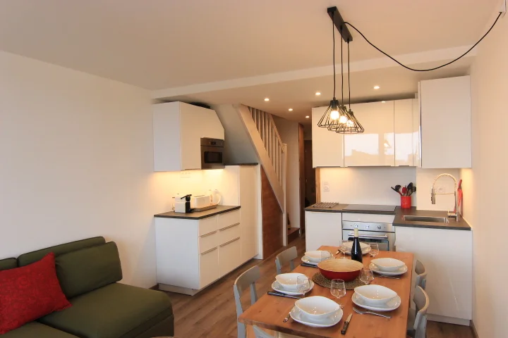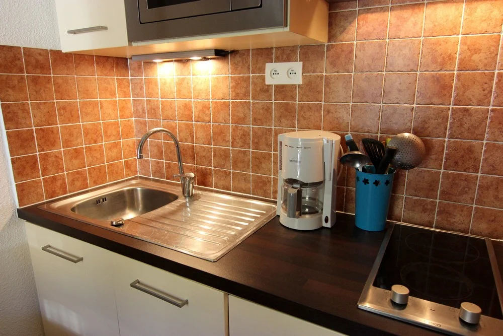 De keuken is goed uitgerust met vaatwasser, magnetron-grill, kookplaat, koelkast, waterkoker, broodrooster en koffiezetapparaat. Daarnaast zijn er alle benodigde keukenbenodigdheden aanwezig, waaronder servies, bestek, pannen en kookgerei.