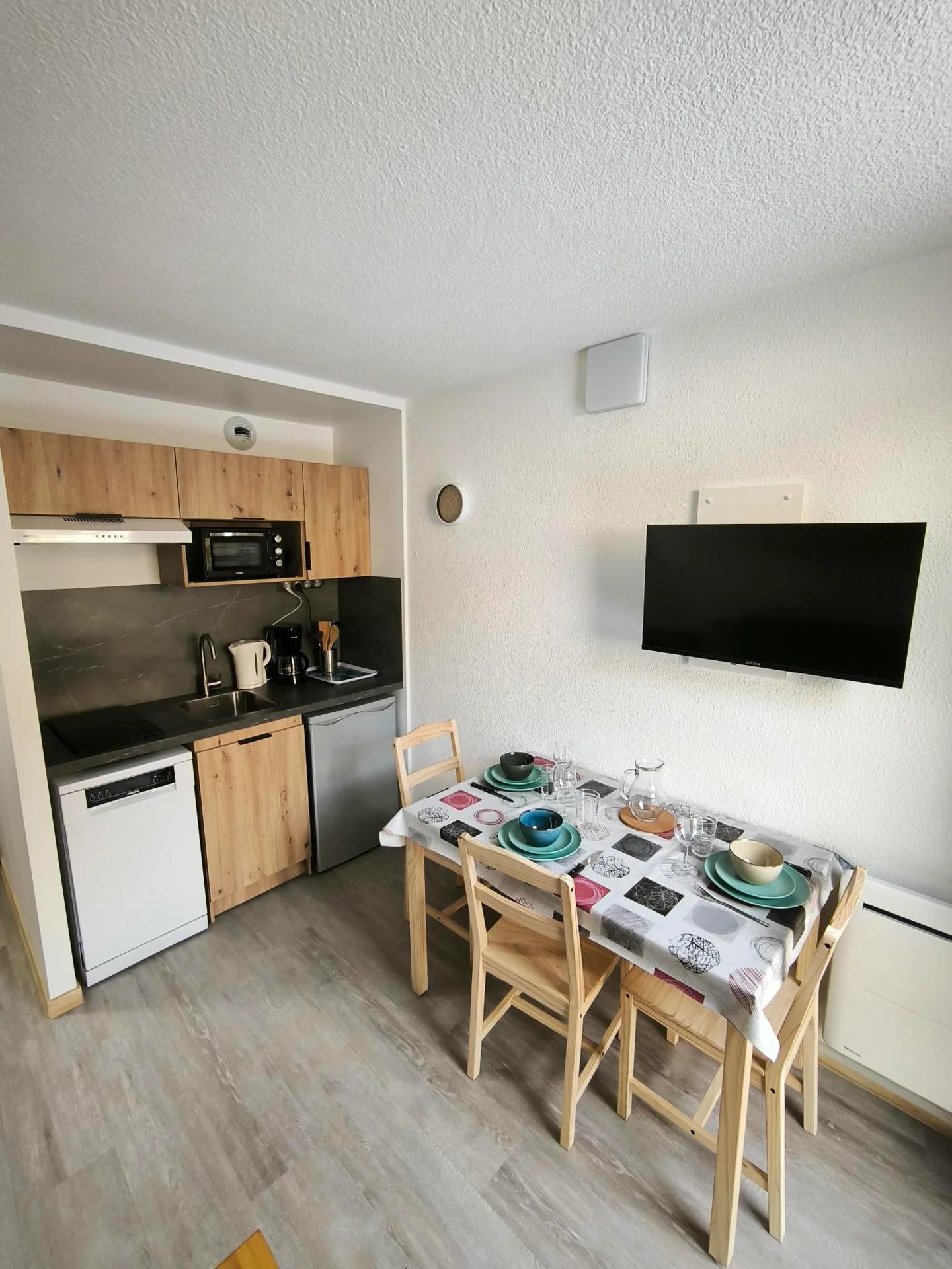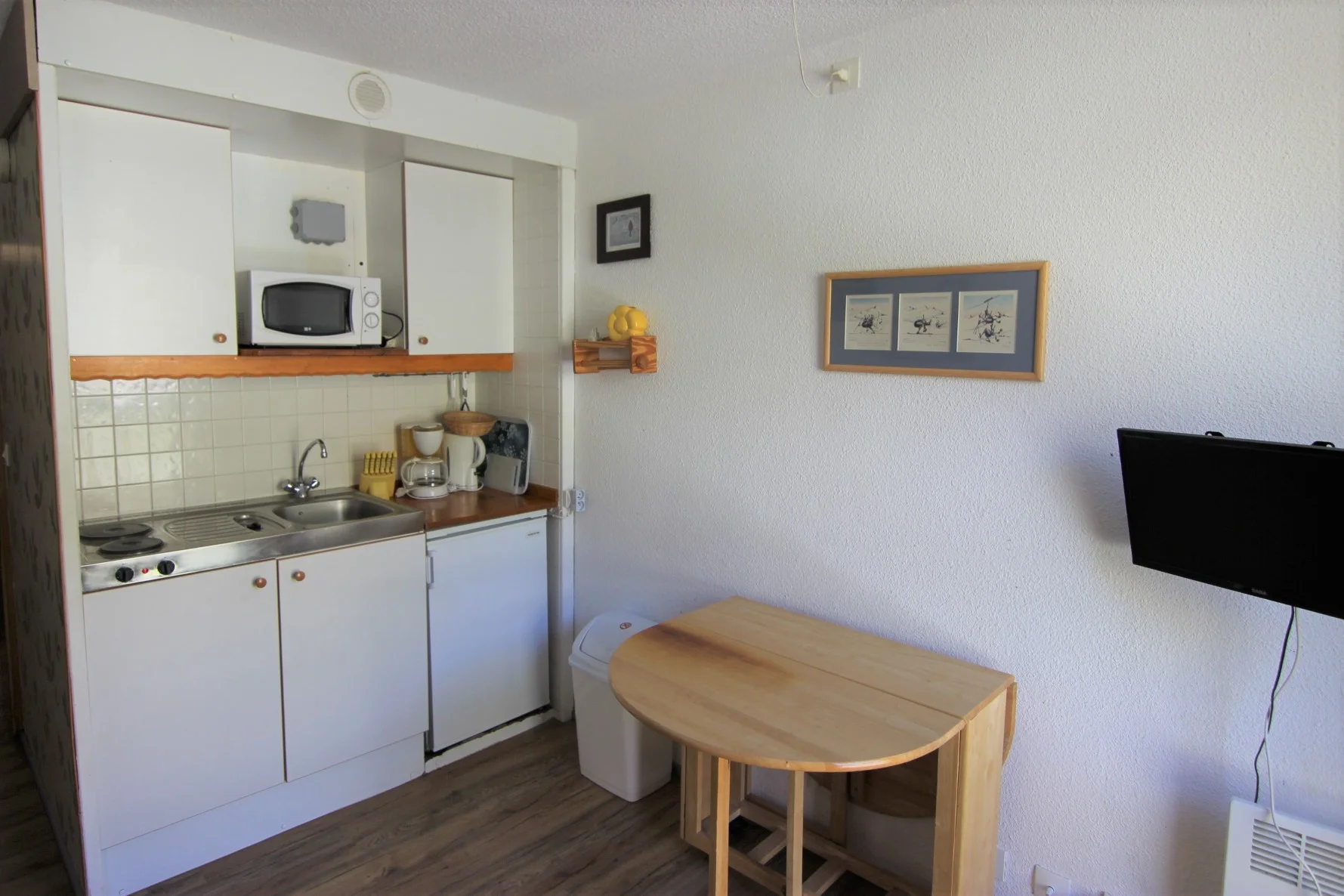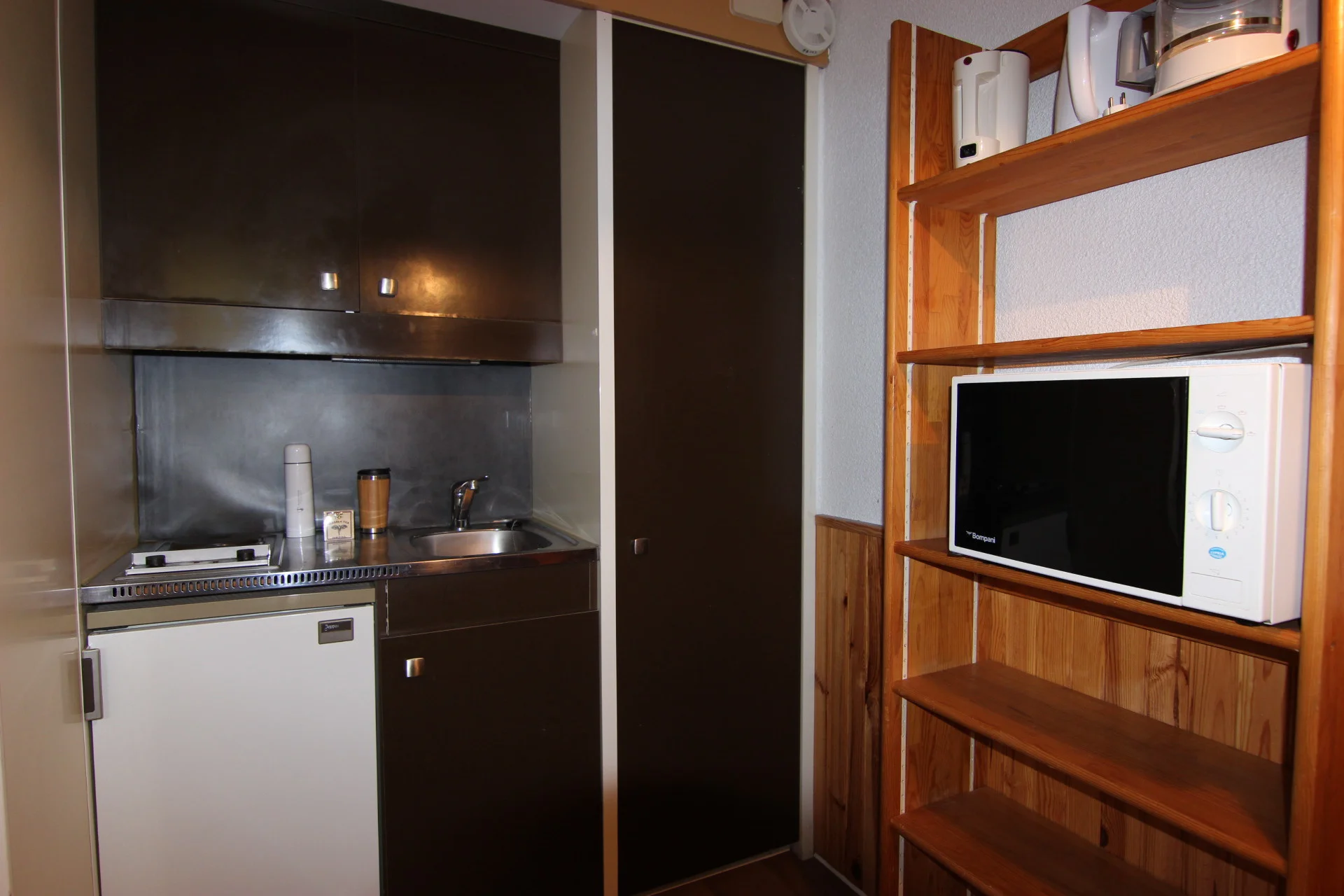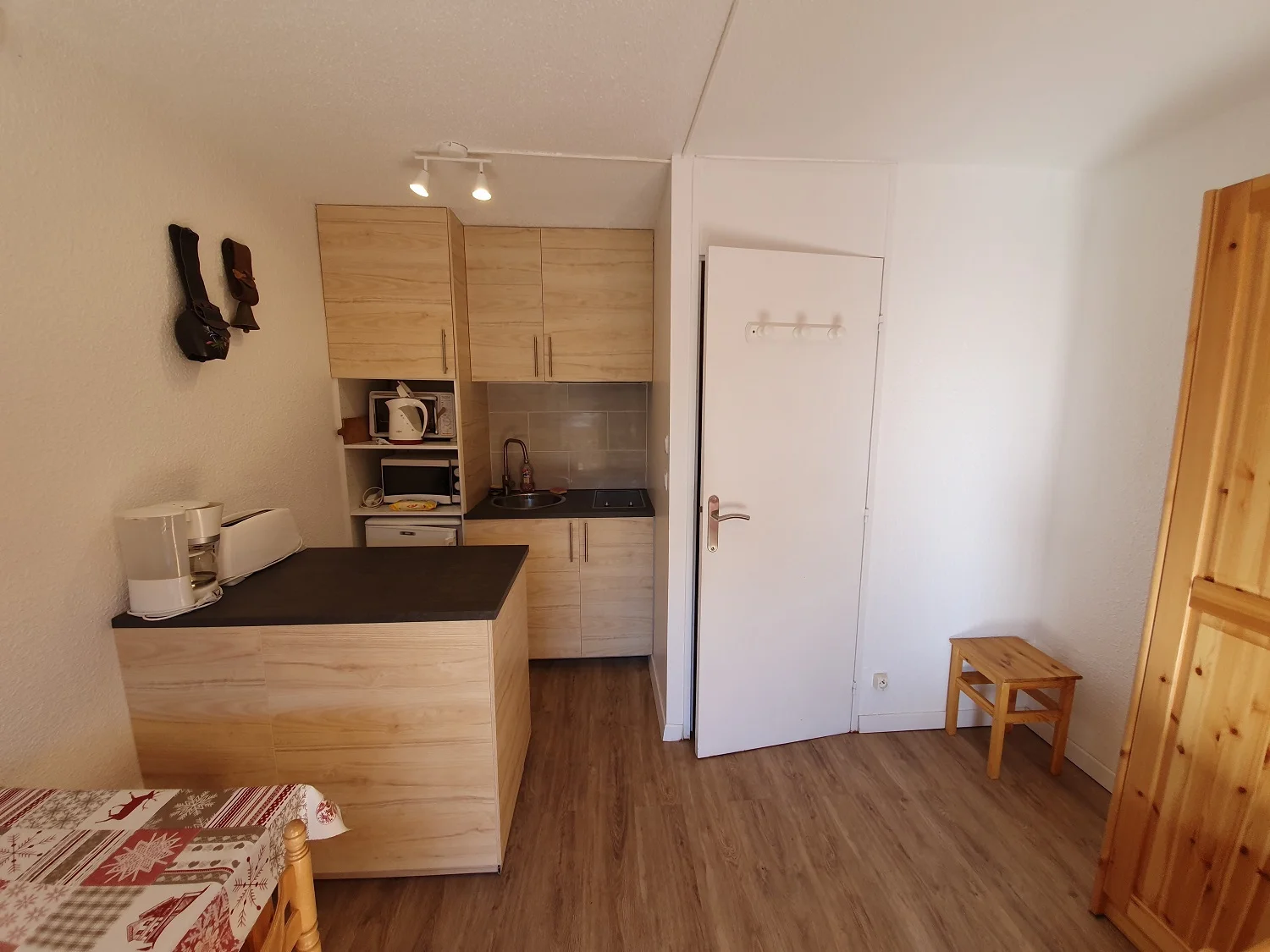 Het appartement bevindt zich op de 2e verdieping (entree La Roche Blanche, deur 27) en is bereikbaar met lift. Het heeft een balkon met zuid- en westgericht uitzicht. De ligging is ideaal dicht bij de pistes.