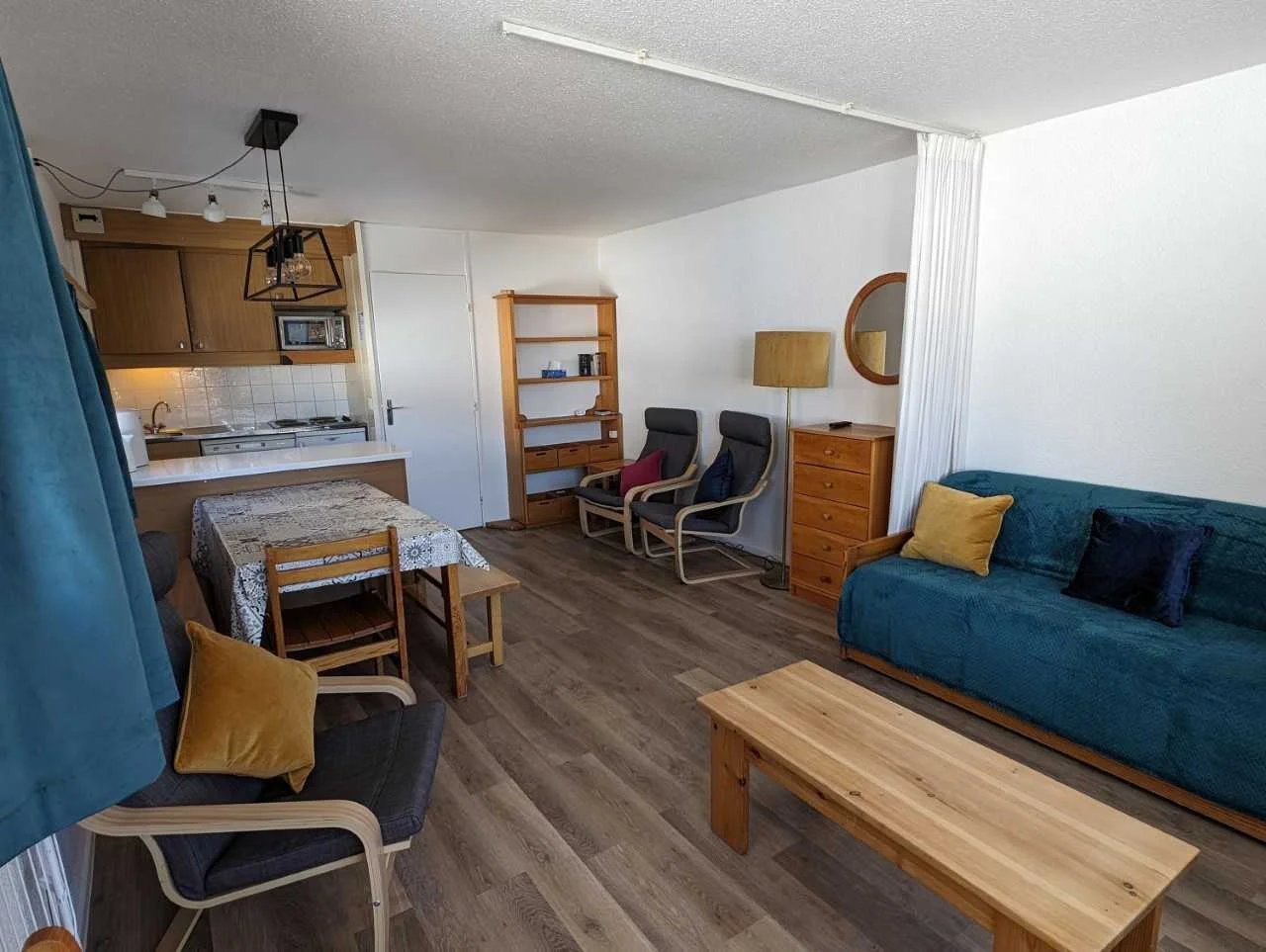 Dit gezellige 2-kamerappartement bestaat uit een woonkamer en één slaapkamer. De indeling is praktisch en compact, ideaal voor een familievakantie of groepje vrienden.
