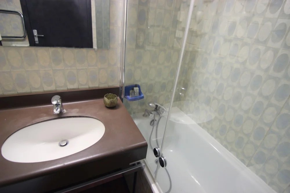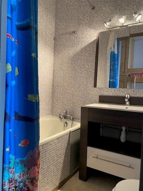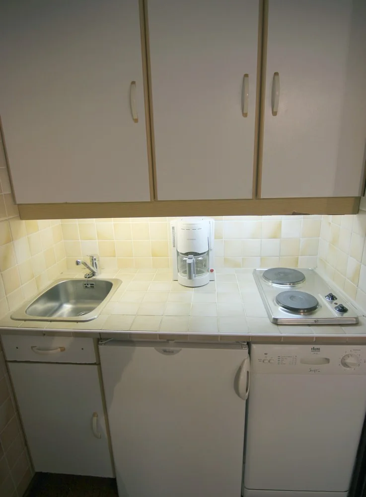 Dit is een compacte studio van 21 m² met een ruime indeling. De woonkamer is voorzien van een eettafel met stoelen en een slaapbank. De keuken bevindt zich in dezelfde ruimte en is volledig uitgerust.