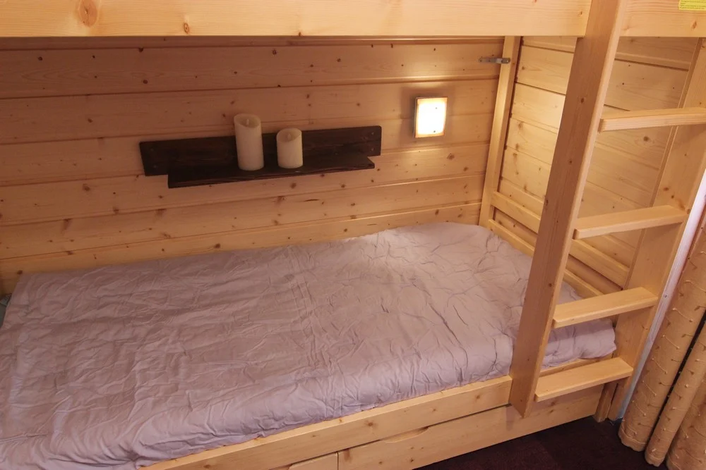 1 stapelbed (2 slaapplaatsen, 80x190 cm per bed) en 2 eenpersoonsbedden (80x190 cm). Totaal 4 slaapplaatsen. Bedden zijn opgemaakt bij aankomst.