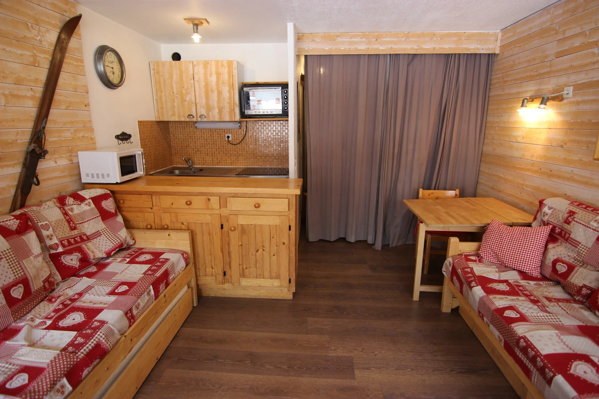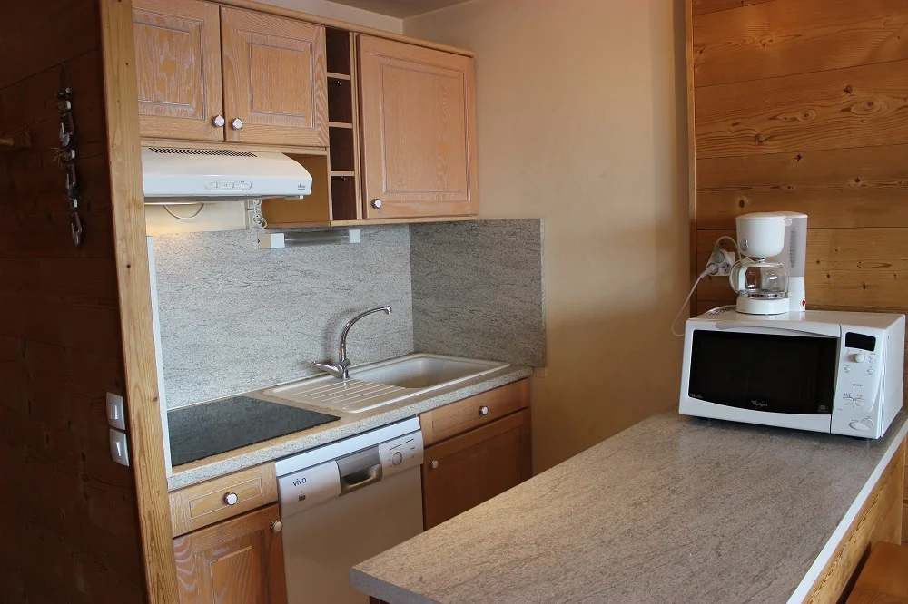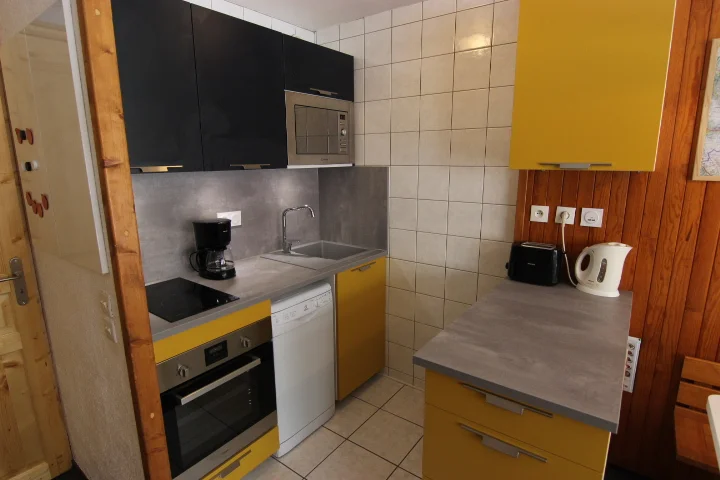 De keuken is uitgerust met een inductiekookplaat, vaatwasser, magnetron, koelkast, oven, broodrooster, waterkoker, raclette-apparaat en koffiezetapparaat. Verder zijn er keukengerei, servies, bestek en overige keukenbenodigdheden aanwezig.