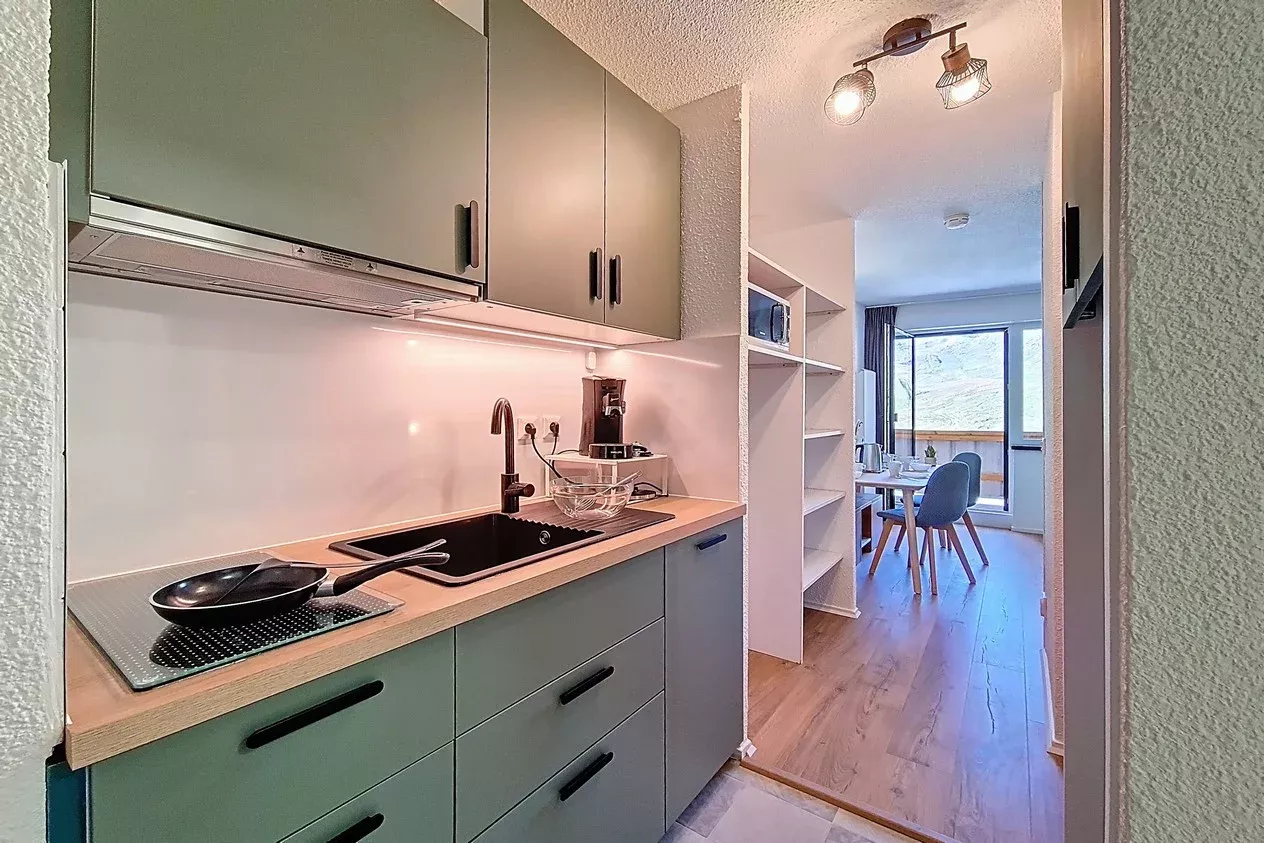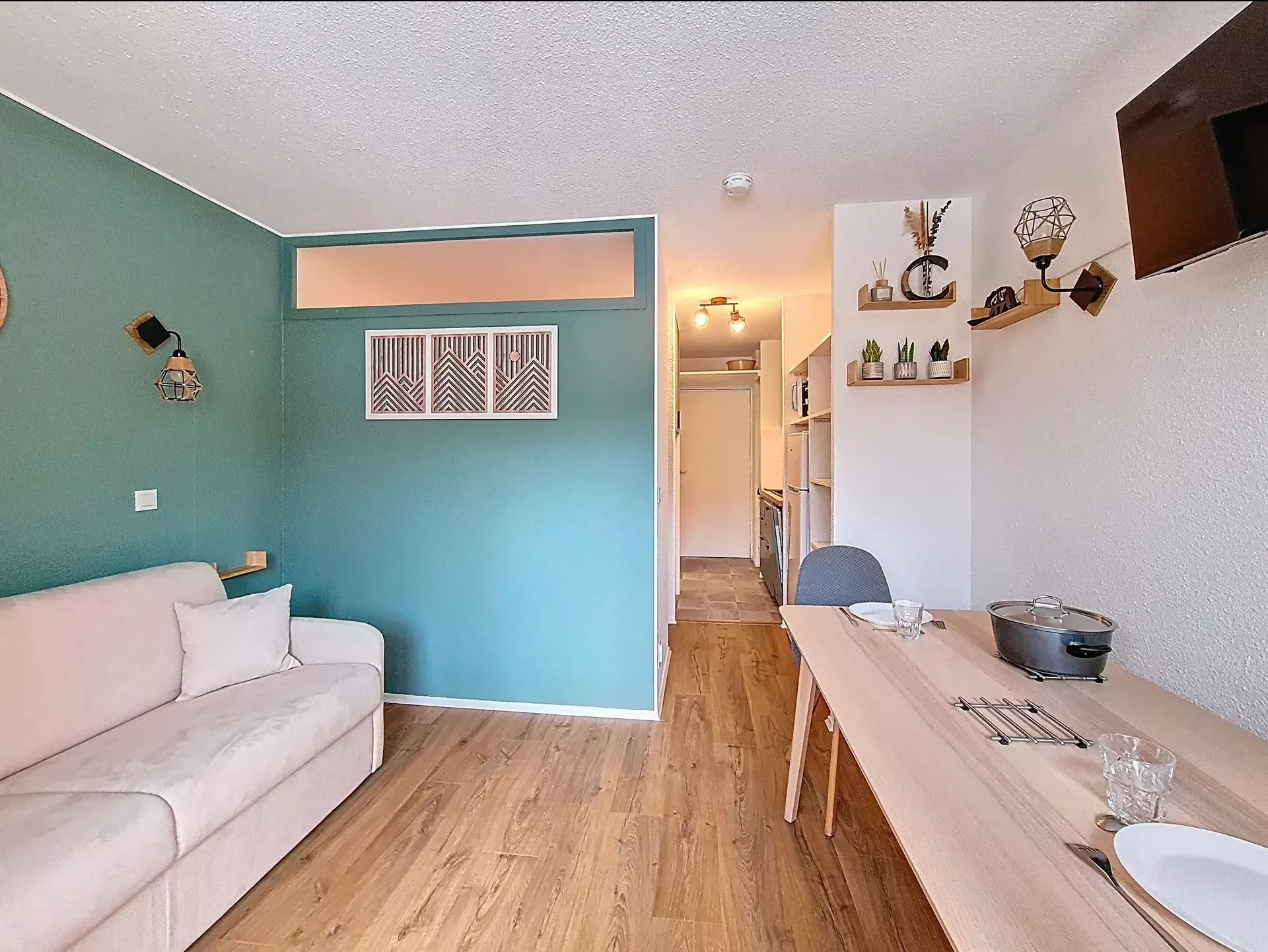 Gezellige studio van 23 m², gelegen op de 6e verdieping van de résidence, geschikt voor maximaal 4 personen. De studio beschikt over een balkon op het zuiden met vrij uitzicht over de bergen en de pistes.