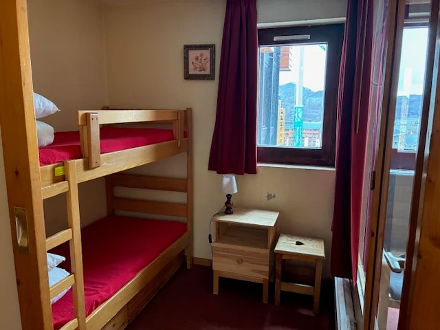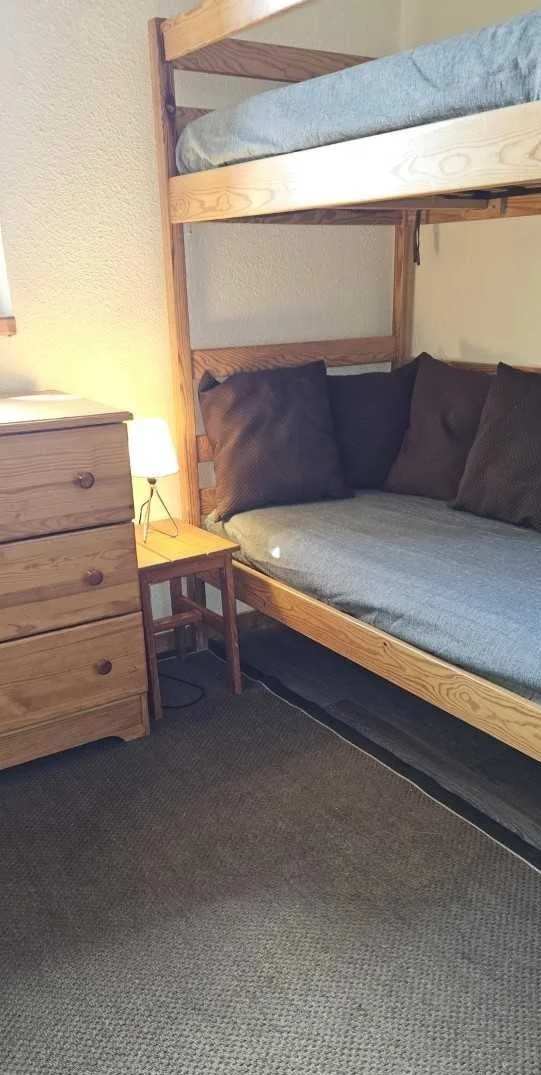 - Slaapkamer: 1 tweepersoonsbed (140x190 cm) + 2 stapelbedden (4 slaapplaatsen, 80x190 cm per bed)