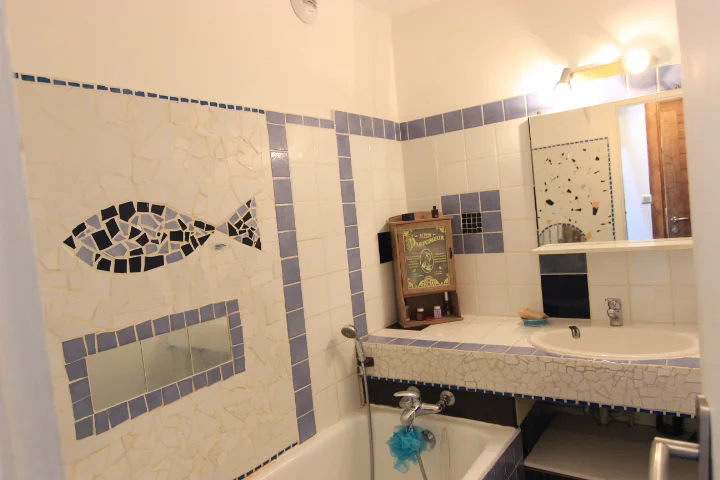Dit studio cabine-appartement bestaat uit een woonkamer met open keuken en een aparte slaapkamer. De woonruimte is voorzien van een zithoek met bank en fauteuil, en beschikt over alle comfort voor een aangenaam verblijf.