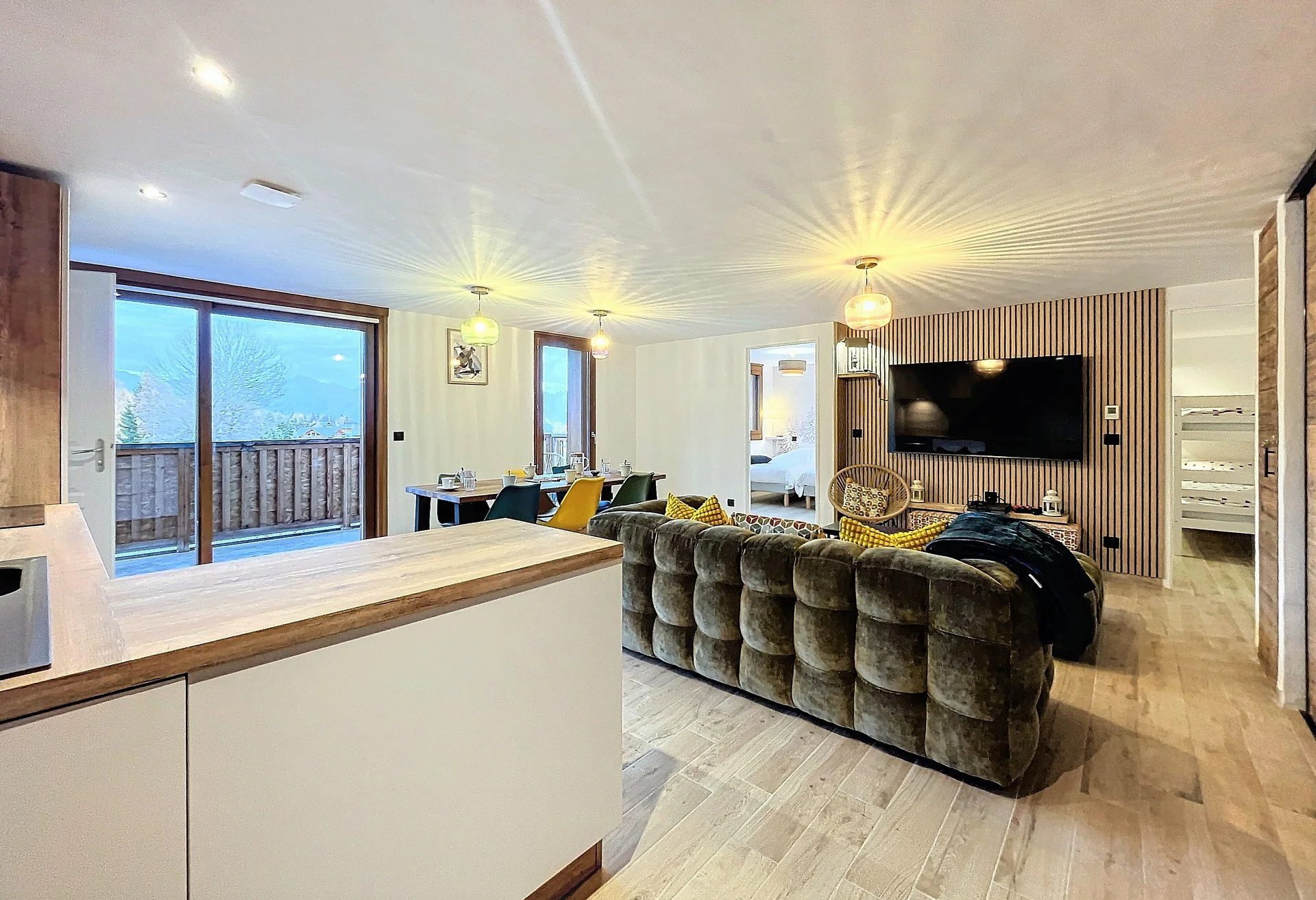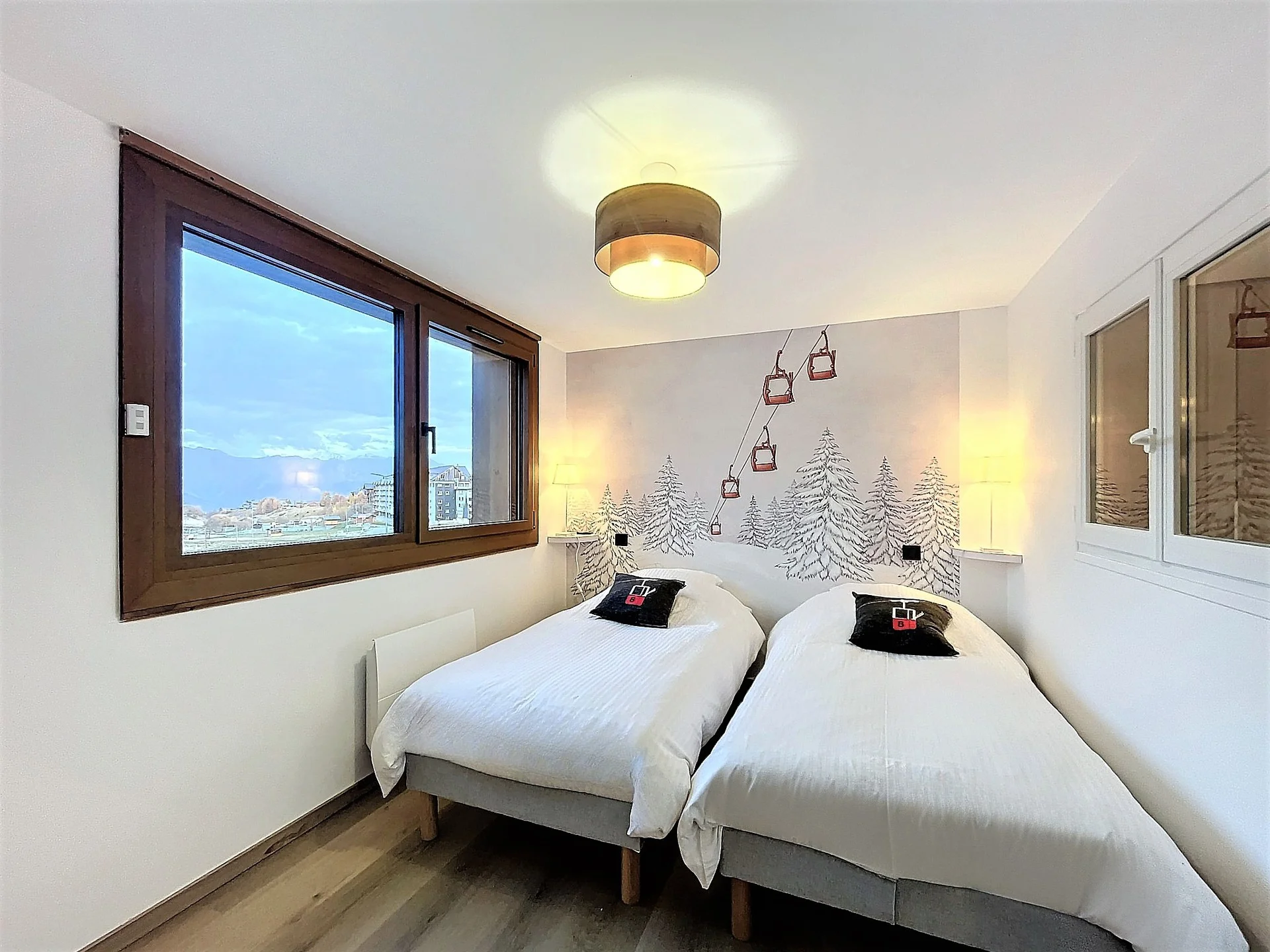 3-kamerappartement met cabine van 80 m², gelegen op de 1e verdieping van de résidence Les Pierres Blanches, midden in het centrum van La Toussuire en direct aan de pistes. Het appartement is geclassificeerd met 3 sterren en biedt plaats aan 8 personen. Dankzij het moderne interieur, de ruime opzet en het grote balkon van 21 m² met uitzicht op Le Grand Truc is dit de ideale plek voor een comfortabele wintersportvakantie met familie of vrienden.