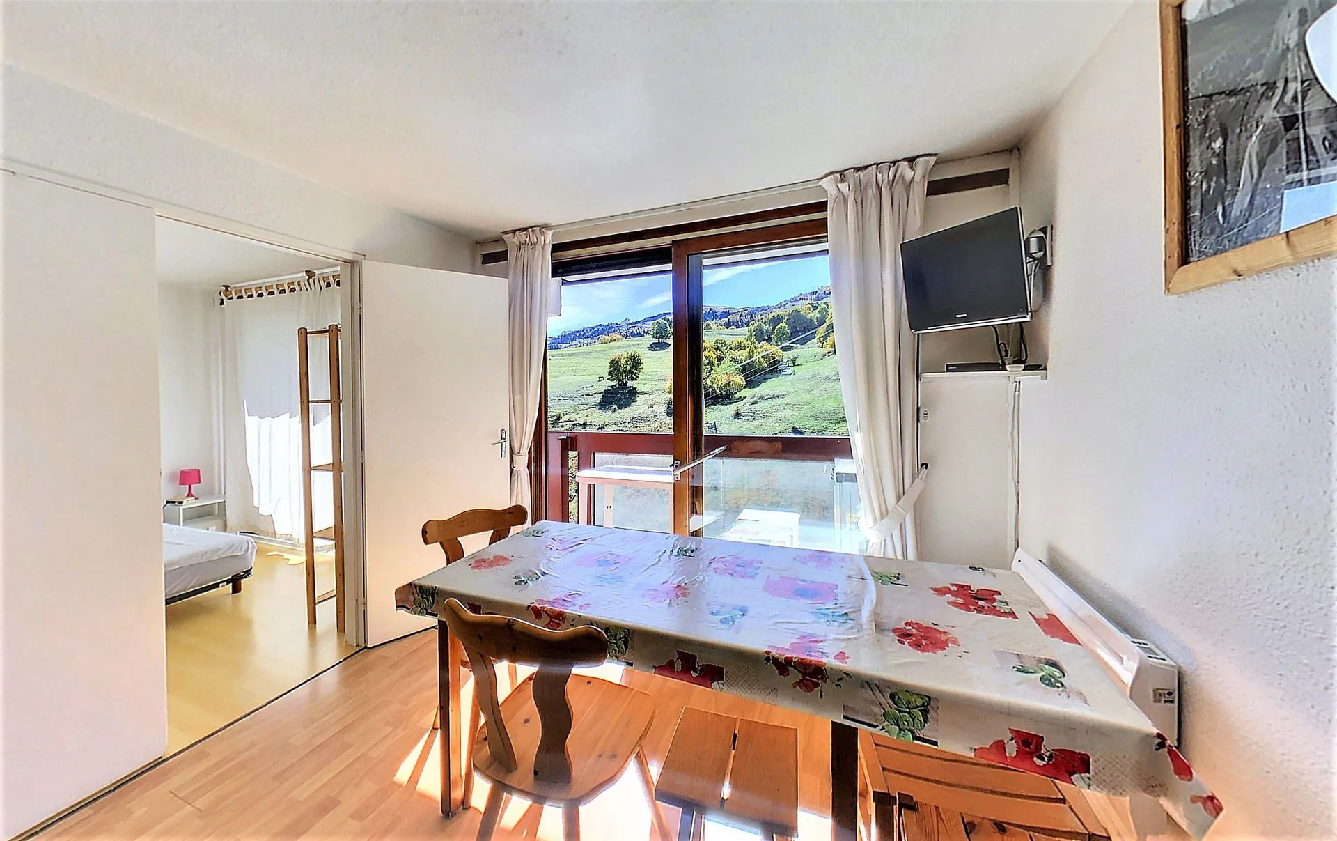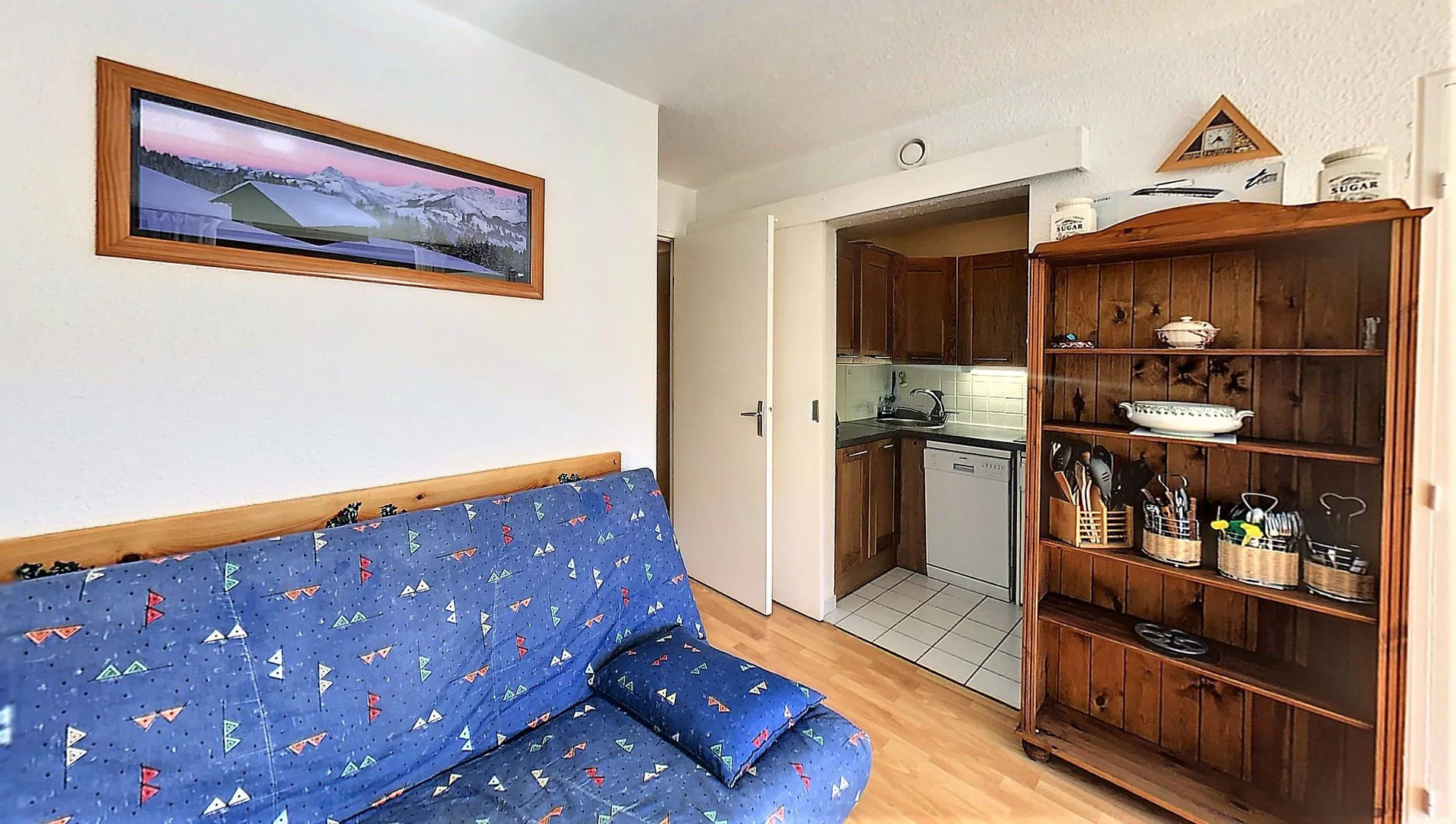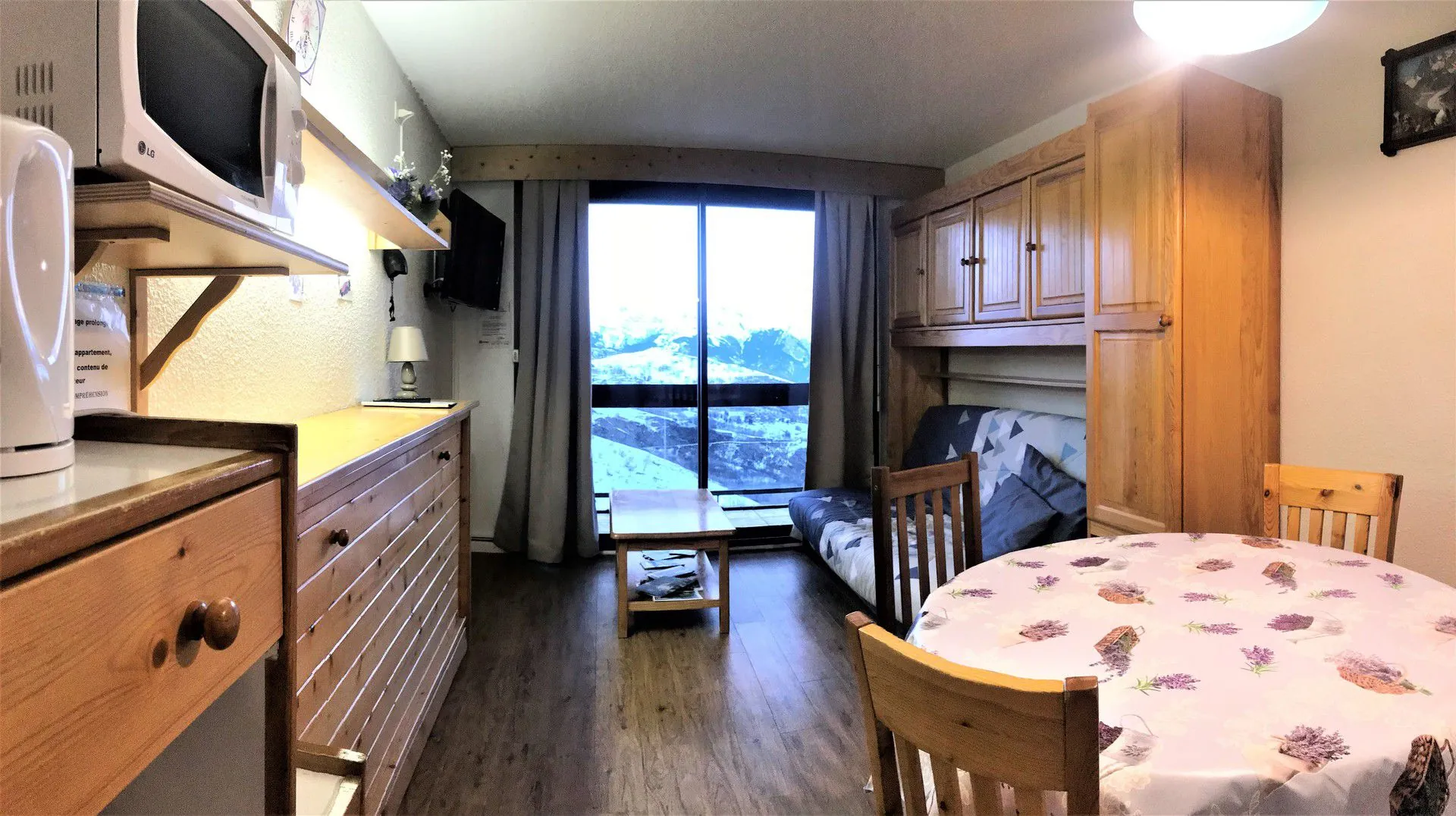 Dit verzorgde en gerenoveerde appartement van 32m² ligt op de 8e verdieping van Résidence Lunik, direct bij de télésiège La Voie Lactée. Dankzij de twee balkons geniet je zowel van de ochtendzon met uitzicht over de vallei als van de middagzon met uitzicht op de pistes en de Mont Charvin.