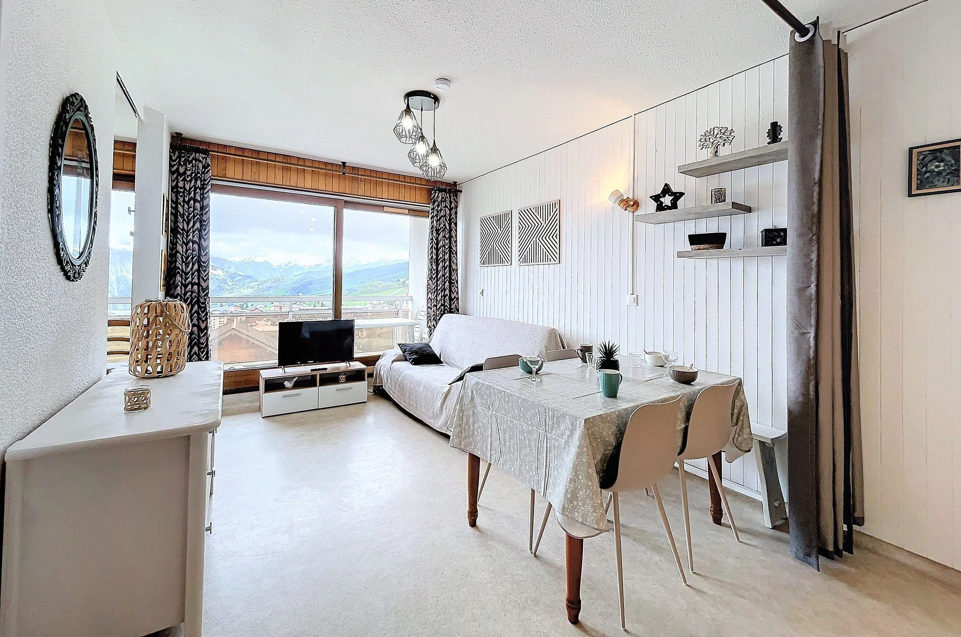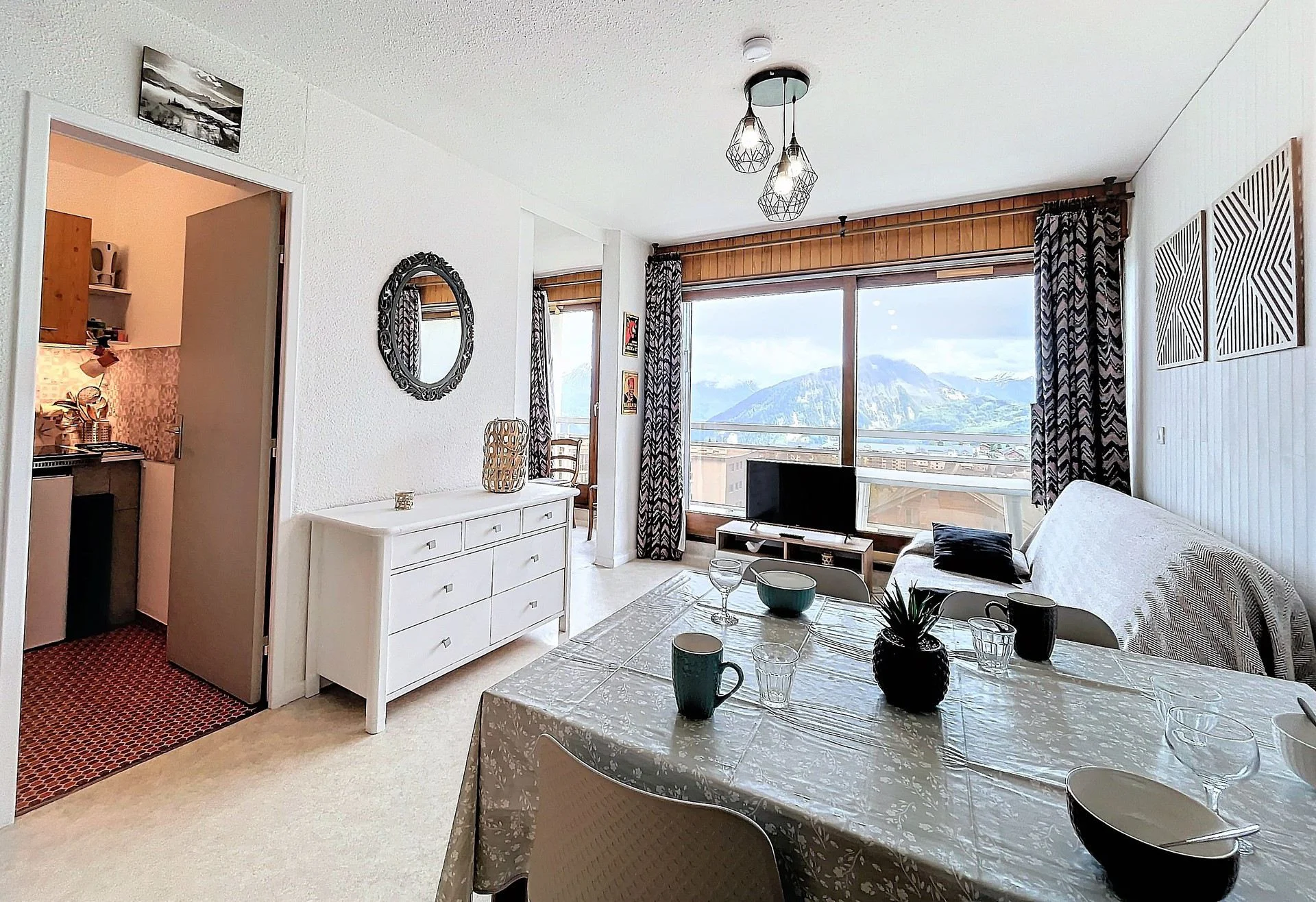 Het appartement is gelegen op de begane grond. Er is een balkon of terras met uitzicht op de bergen. Een ascenseur is aanwezig in het complex. Het ligt dicht bij de pistes.