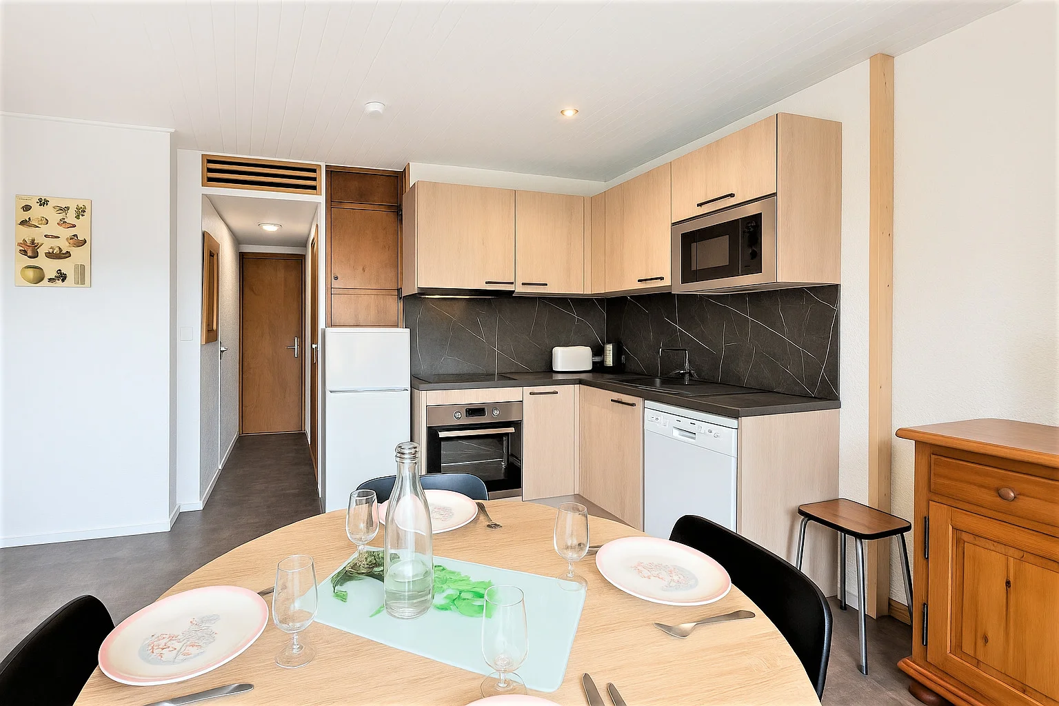 De appartementen zijn uitgerust met een comfortabele woonkamer, een functionele keuken en slaapkamers voor je hele gezin. Veel units hebben een balkon of terras waar je kunt genieten van het berglandschap. De residentie heeft geen lift, maar je voelt je hier direct thuis in een gezellige bergsfeer. Beknopte beschrijving