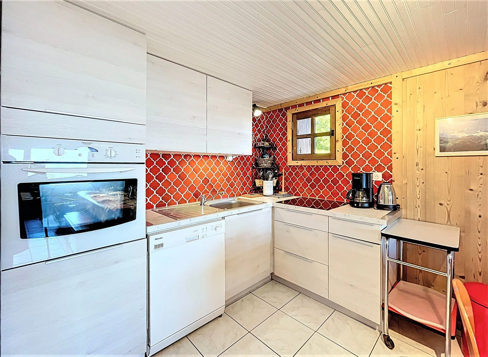 De aparte keuken met glazen wand is volledig vernieuwd en uitgerust met alles wat je nodig hebt: koelkast, kookplaten, oven, magnetron, vaatwasser, koffiezetapparaat, waterkoker, broodrooster en natuurlijk de onmisbare raclette- en fonduesets voor sfeervolle avonden rond het haardvuur.