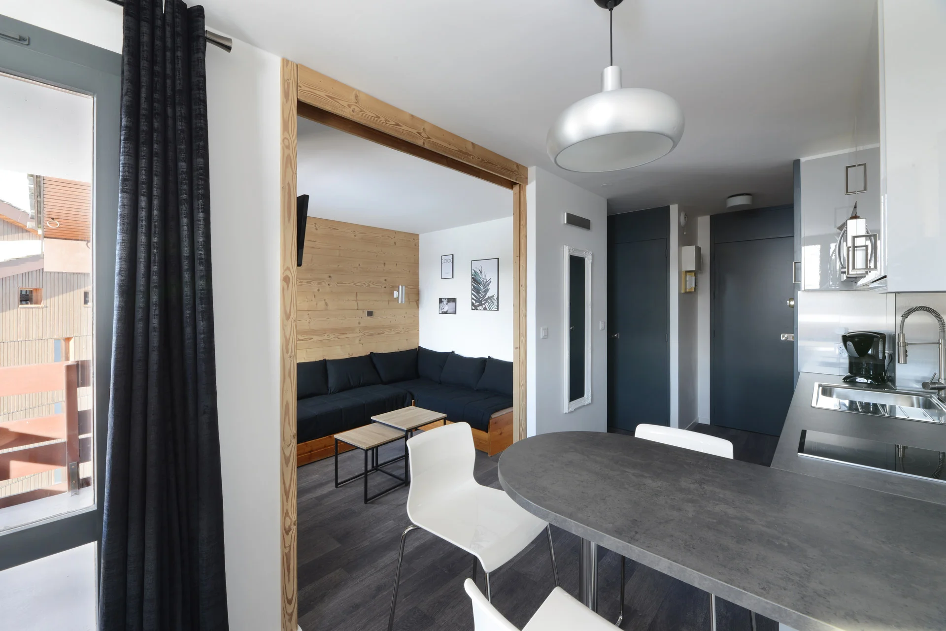 Appartement – Aigue-marine: 6 personen · 28 m² · 4e verdieping · zuidoost · balkon met bergketen zicht · skibox