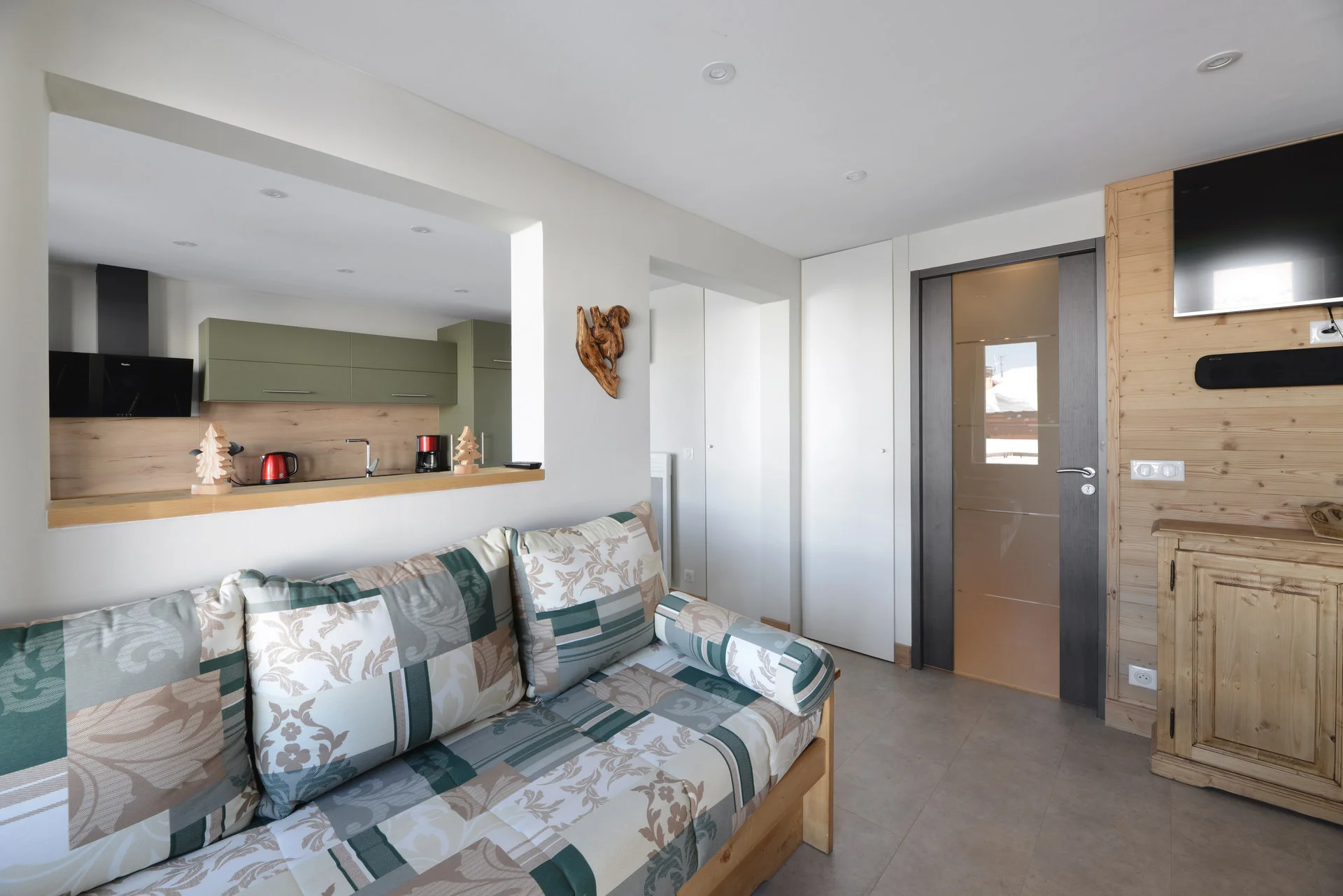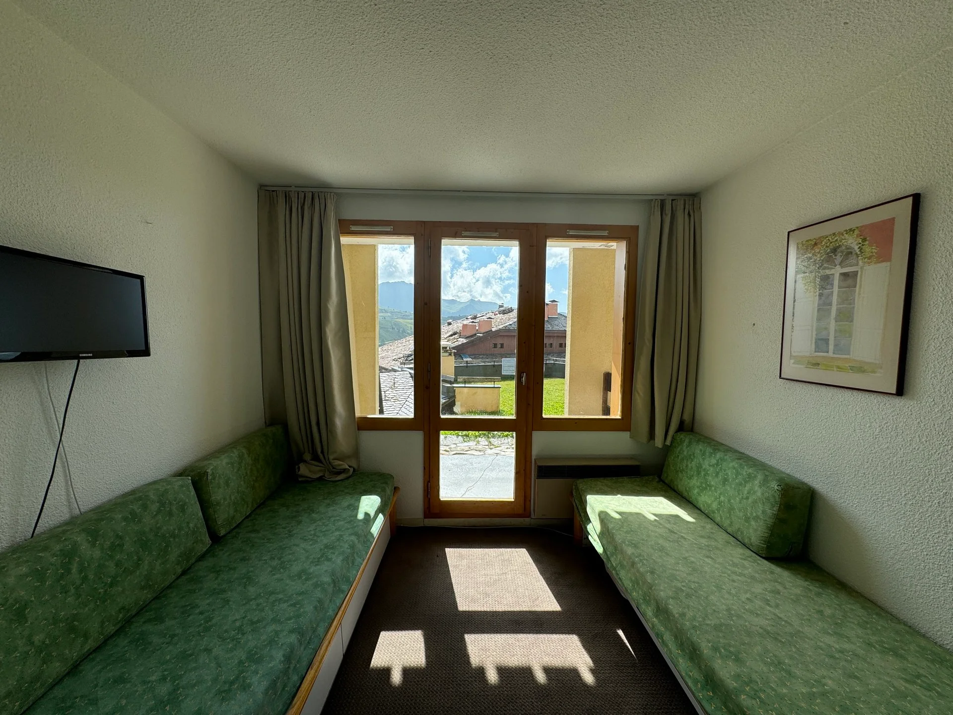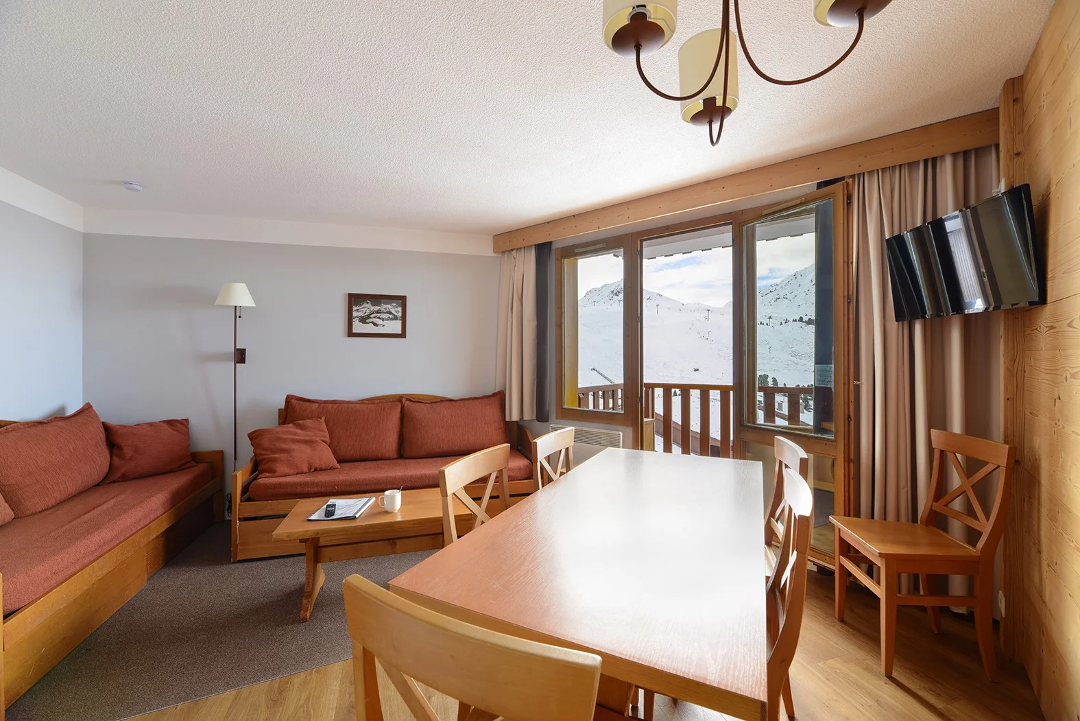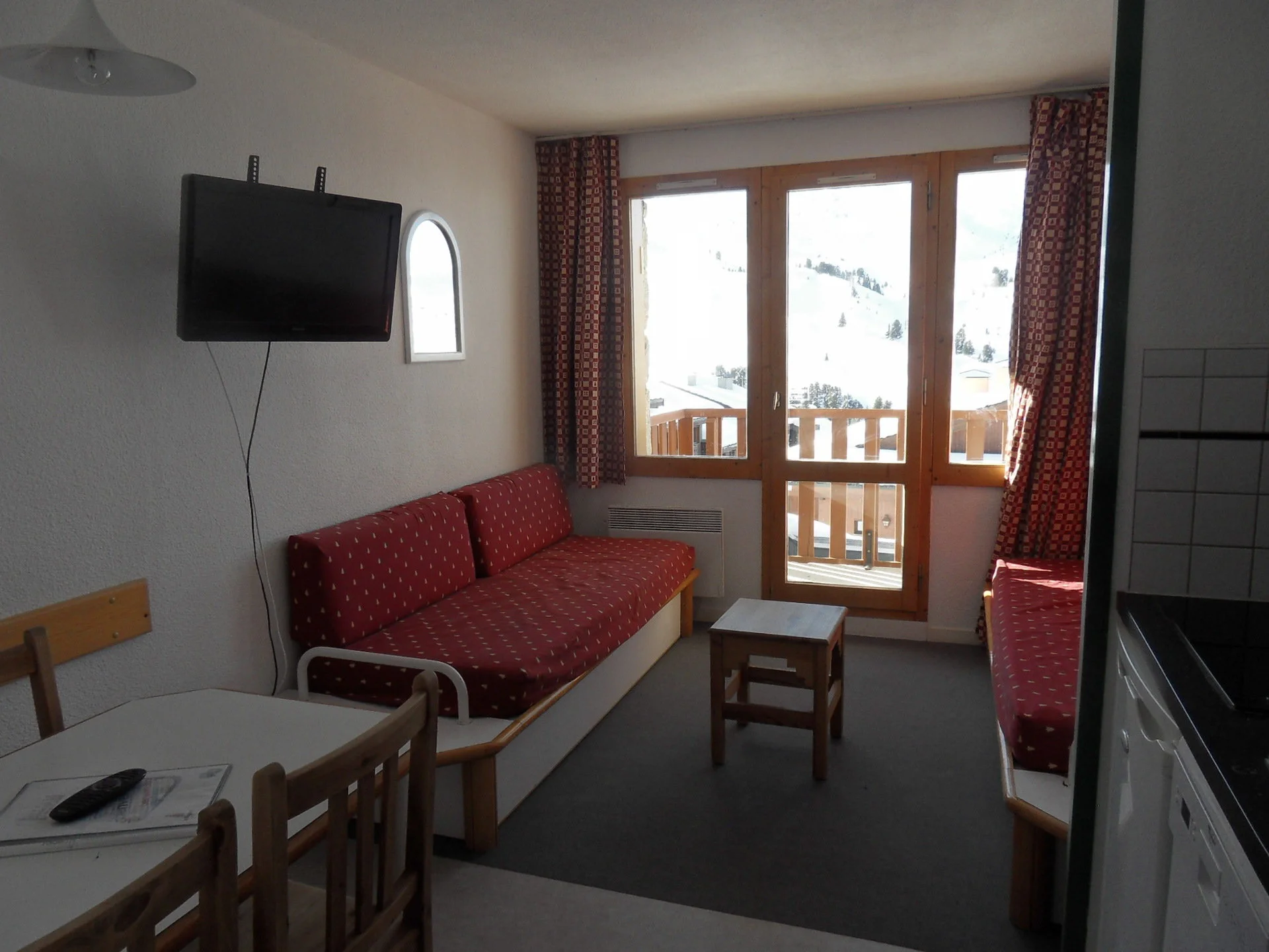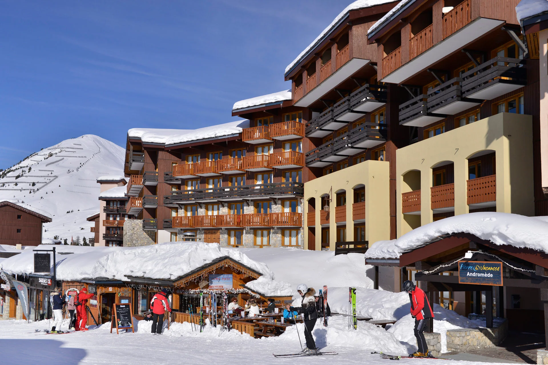 Het appartement bevindt zich op de 5e verdieping (bereikbaar via lift) aan de ingang Andromède, nummer 503. Het heeft een balkon met uitzicht op de bergen. Het ligt op loopafstand van de pistes en het skilift-station. Parkeren is mogelijk in de ondergrondse parkeergarage (tegen betaling).