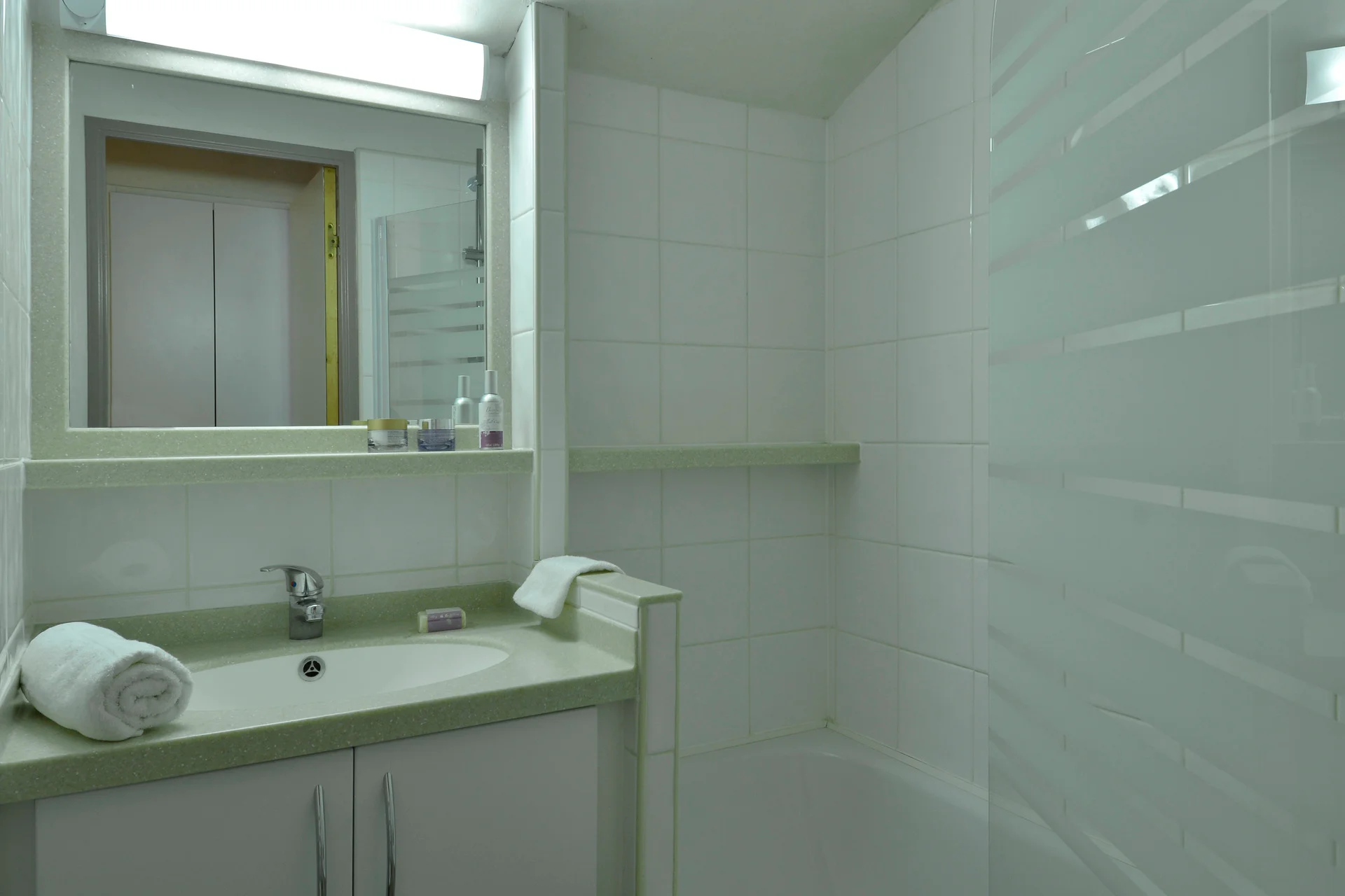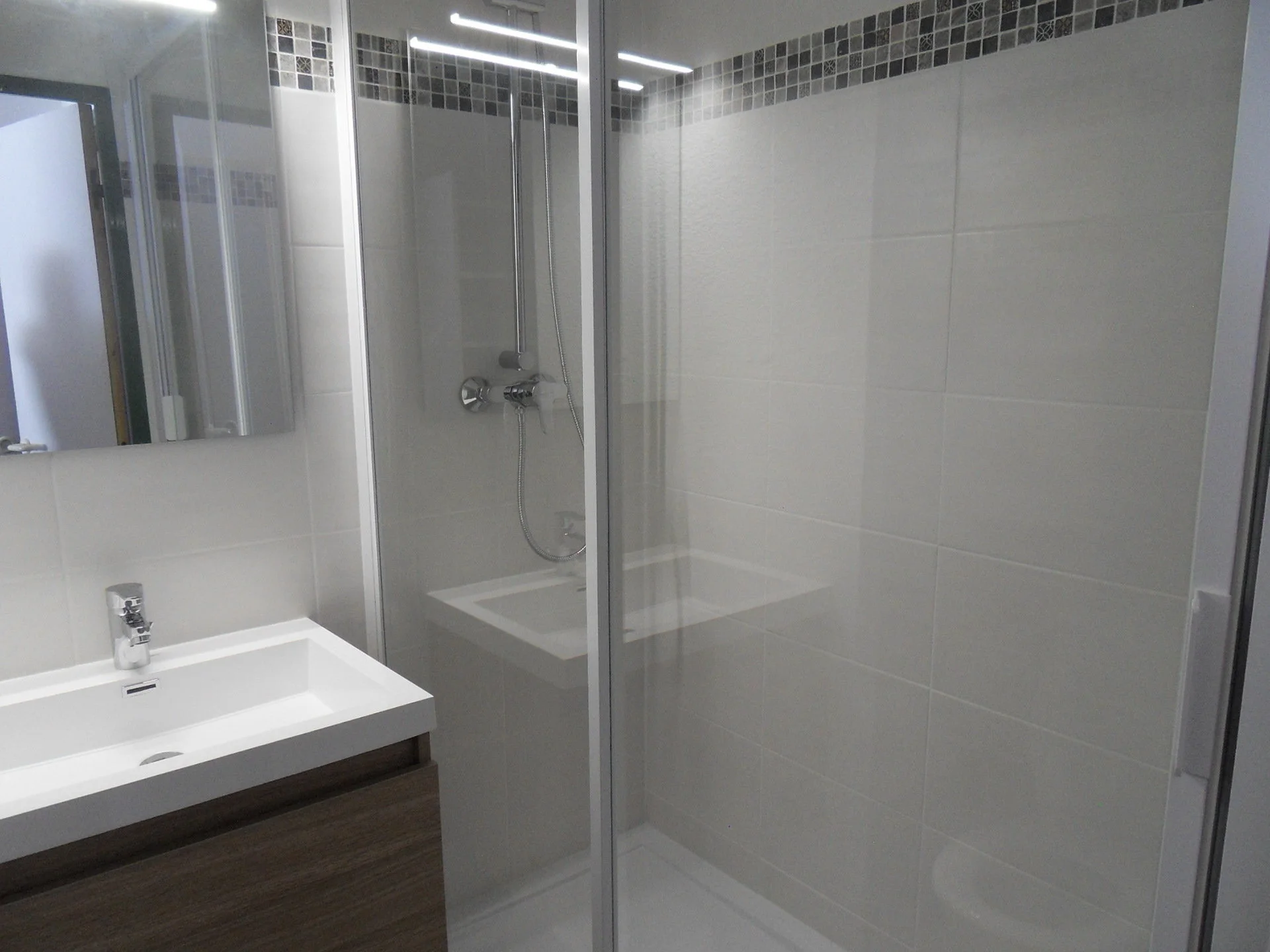 Het appartement beschikt over twee badkamers beide voorzien van spiegel, opslagruimte en handschoenenrek. Een afzonderlijk toilet is eveneens aanwezig. Beide badkamers hebben een radiator en zijn volledig ingericht.