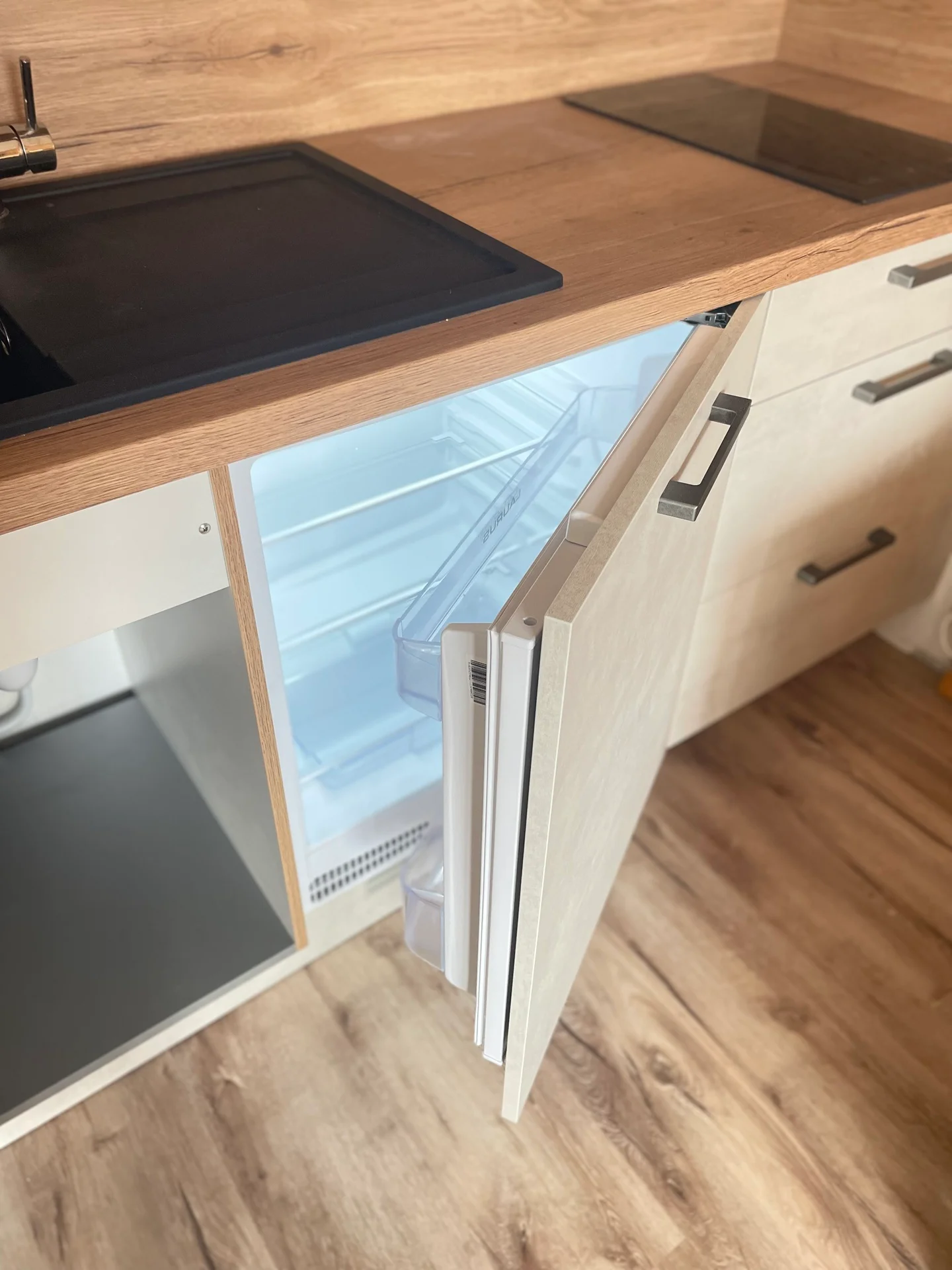 Het appartement is uitgerust met inductiekookplaat (2 pitten), koelkast, magnetron, vaatwasser, oven, broodrooster, waterkoker, koffiezetapparaat en raclette-apparaat. Alle servies, bestek en keukenbenodigdheden zijn aanwezig, waaronder pannen, potten, pastapan, slacentrifuge en overige kookgerei.