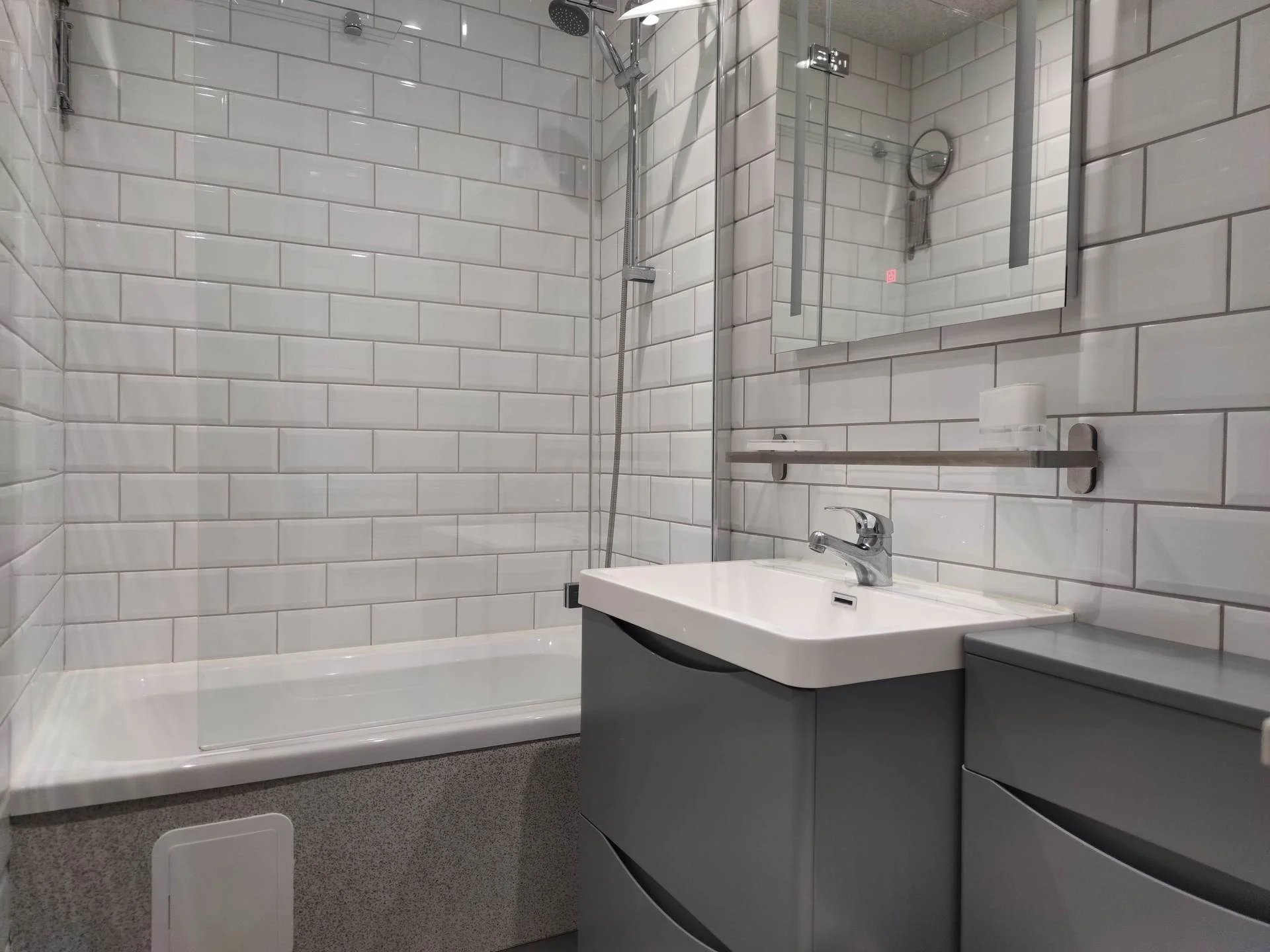 • Badkamer met doucheruimte en baignoire