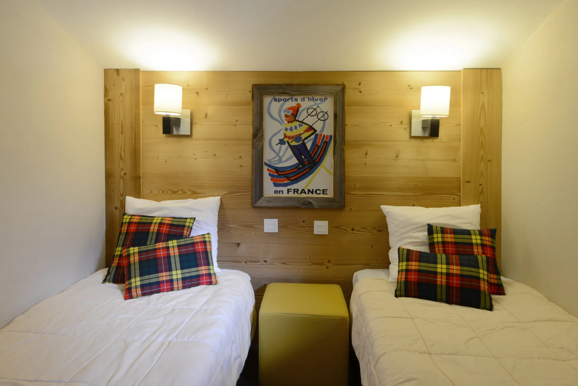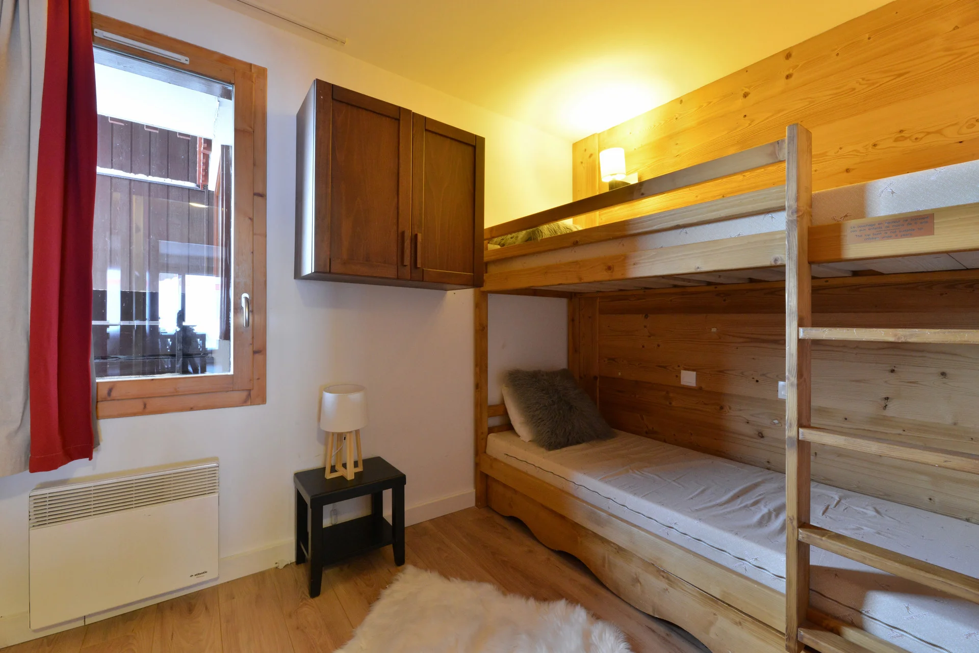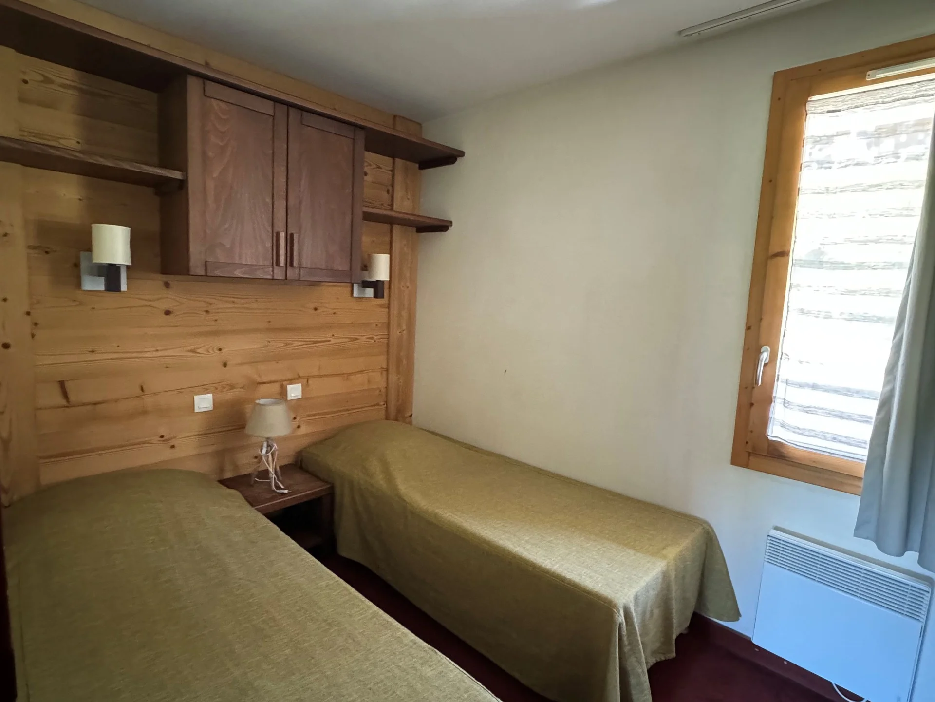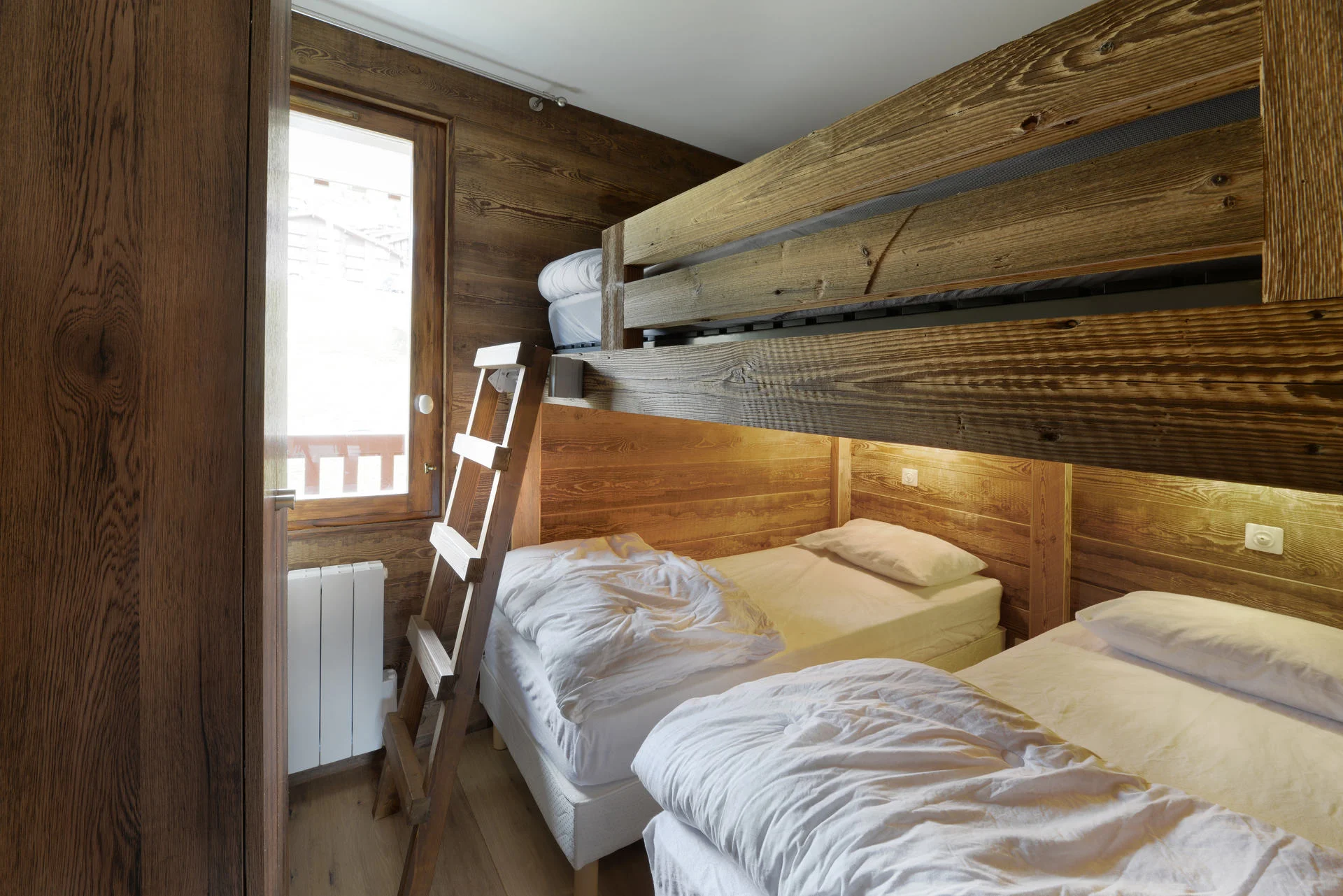 Slaapkamer: 1 tweepersoonsbed (140x190 cm) + 2 eenpersoonsbedden (80x190 cm)