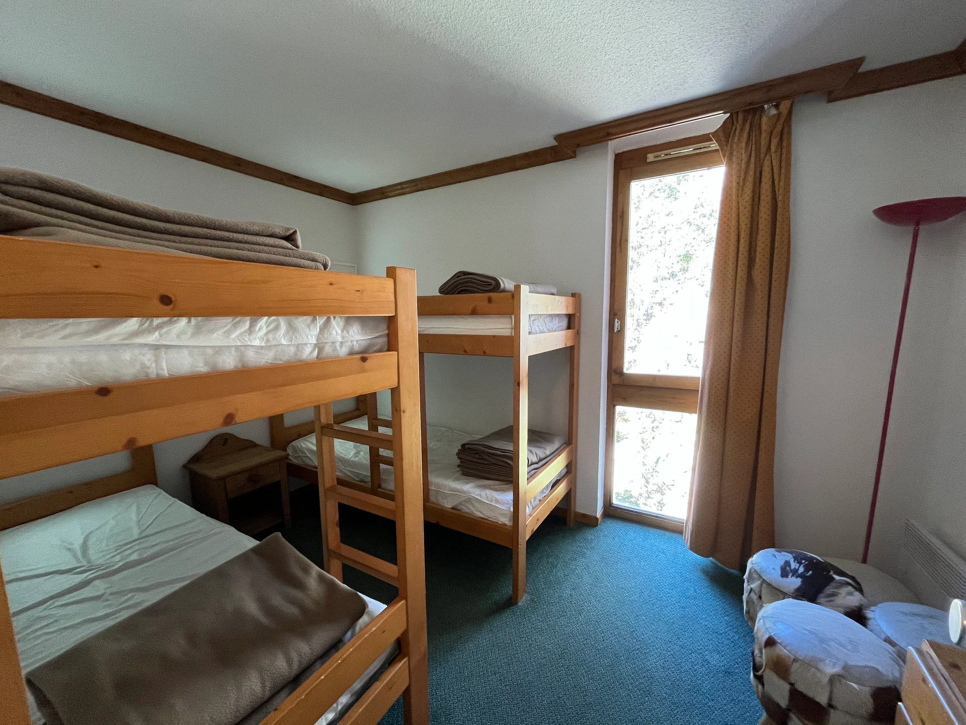 Slaapkamer 1: 1 tweepersoonsbed (140x190 cm) + 1 stapelbed (2 slaapplaatsen, 80x190 cm per bed)