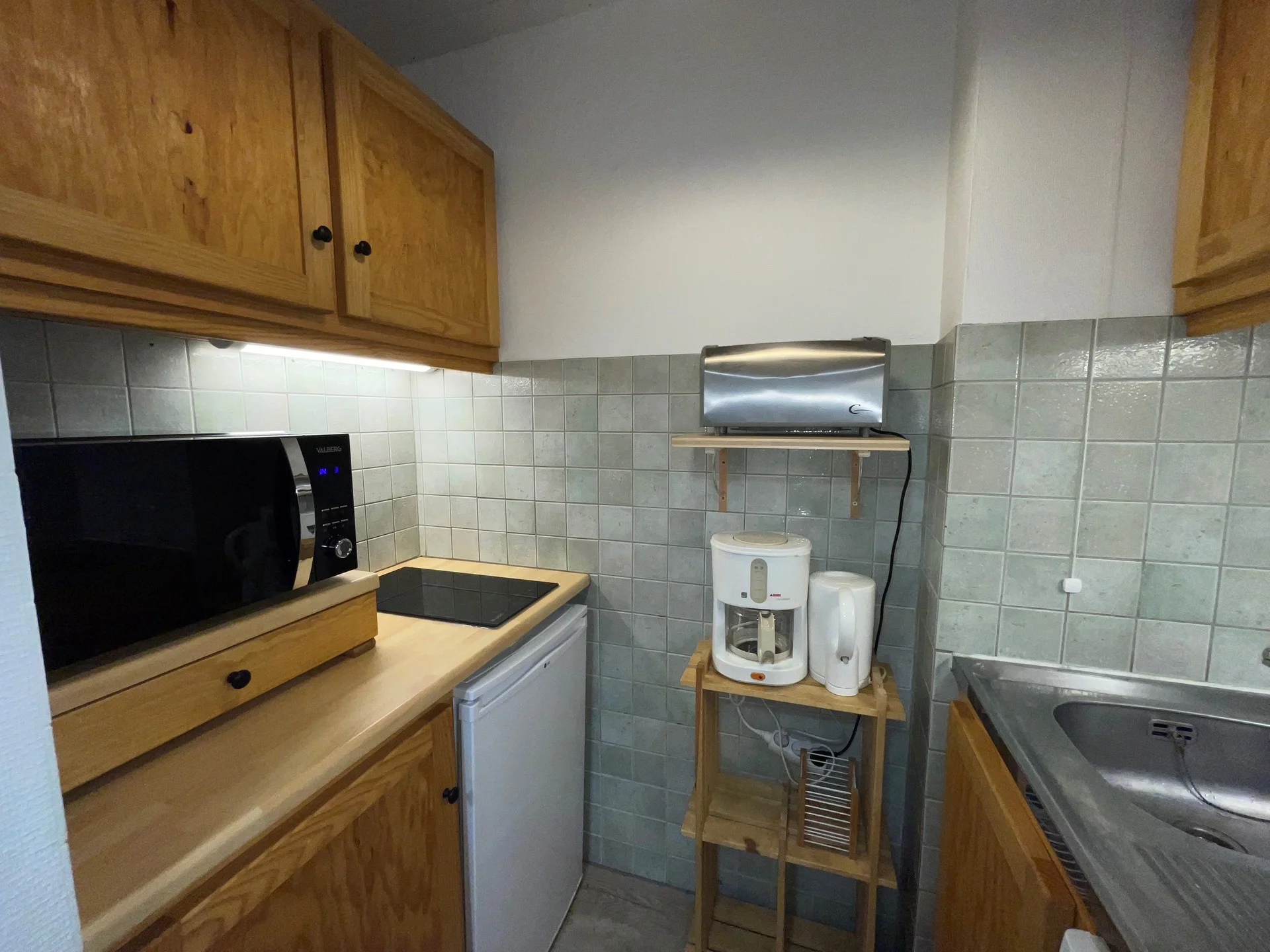 Dit is een compact studio van 26 m² met alles wat je nodig hebt voor een bergvakantie. De ruimte bevat een woonkamer, slaapgedeelte, kitchenette en badkamer met apart toilet.