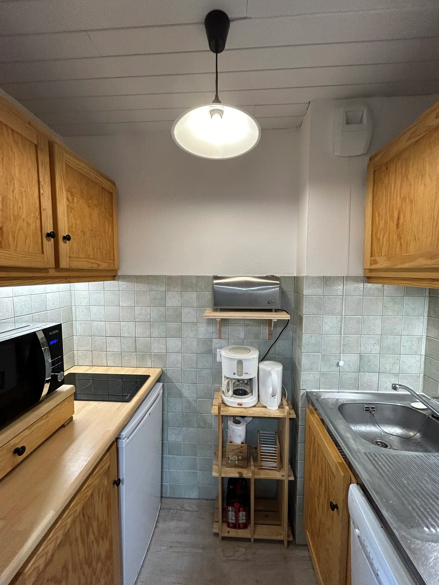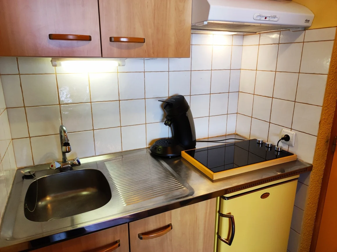 De kitchenette is voorzien van inductiekookplaat (2 pitten), magnetron, koelkast, vaatwasser, oven, broodrooster, waterkoker, crêpepan en raclette-apparaat. Voor koken en eten beschik je over pannen, kookgerei, servies, bestek, glazen en kopjes. Ook aanwezig: koffiezetapparaat, mixeur, sinaasappelpers en alle nodige keukenhulpstukken.
