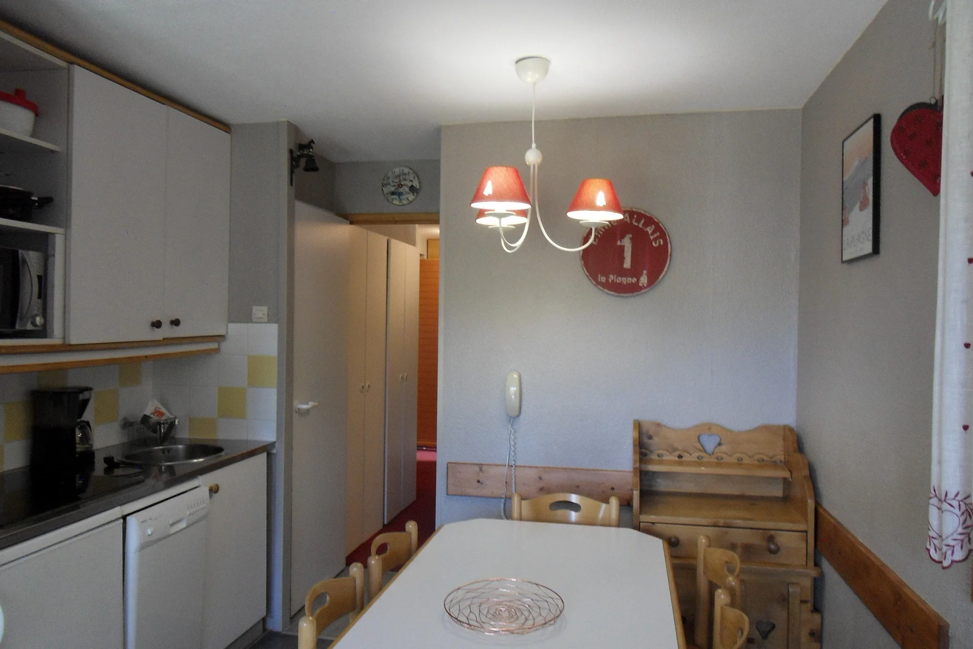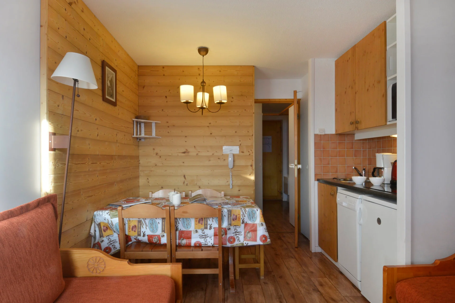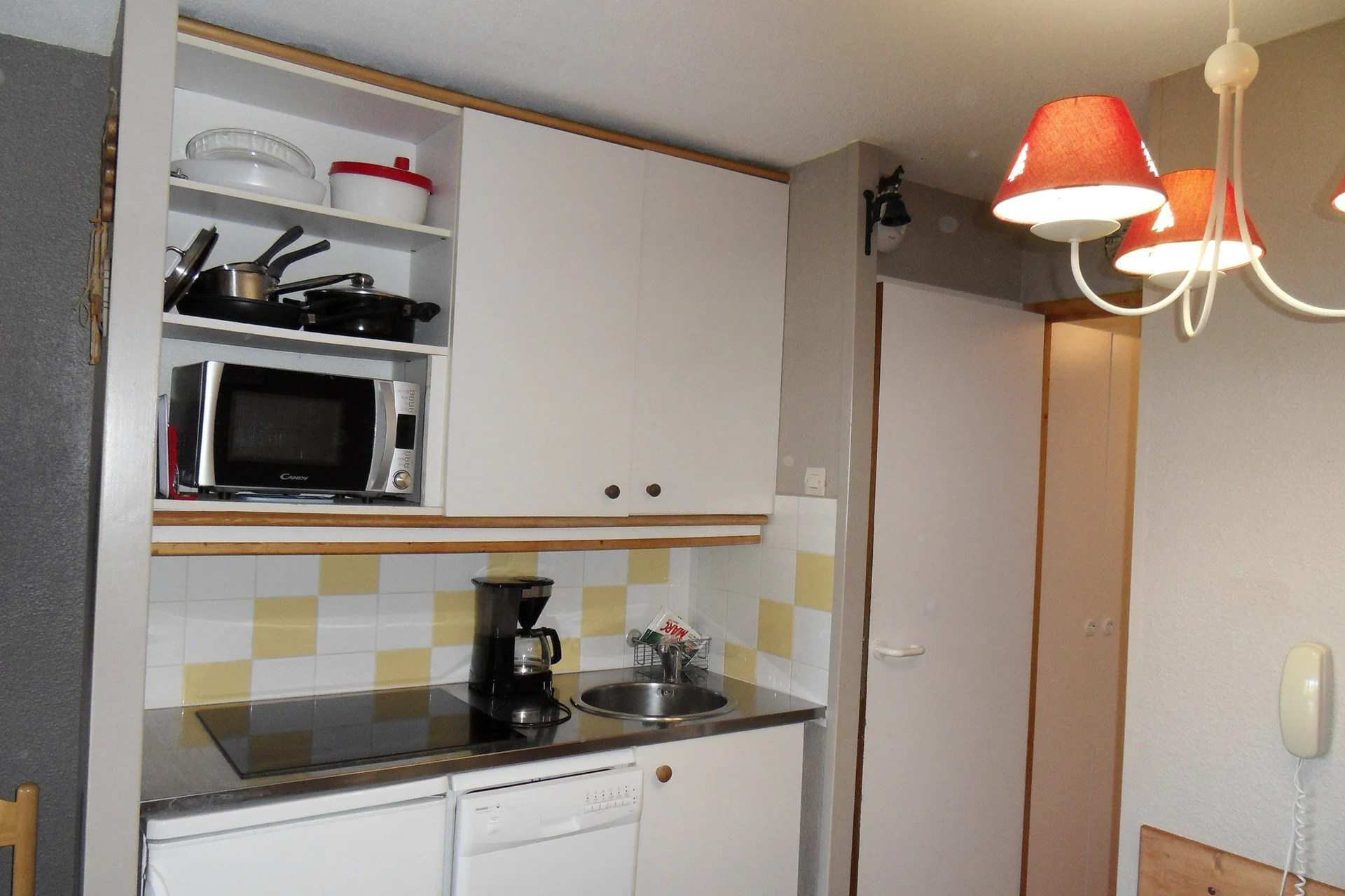 Volledig uitgerust met elektrisch koffiezetapparaat, waterkoker, broodrooster, magnetron, vaatwasser en fornuis. Beschikbare keukenbenodigdheden zijn onder meer serviesset, bestek, glazen, kopjes, schalen, pannen, koekenpan, crêpepan, fooiiërende pannen, broodmes, groentemes, ontbitmes, groenteschaafmes, blikopener, kurkentrekker, notenkraker, ijsschep, houten lepels, spatel, garde, soeplepel, slacentrifuge, snijplanken, waterkan en broodmand.