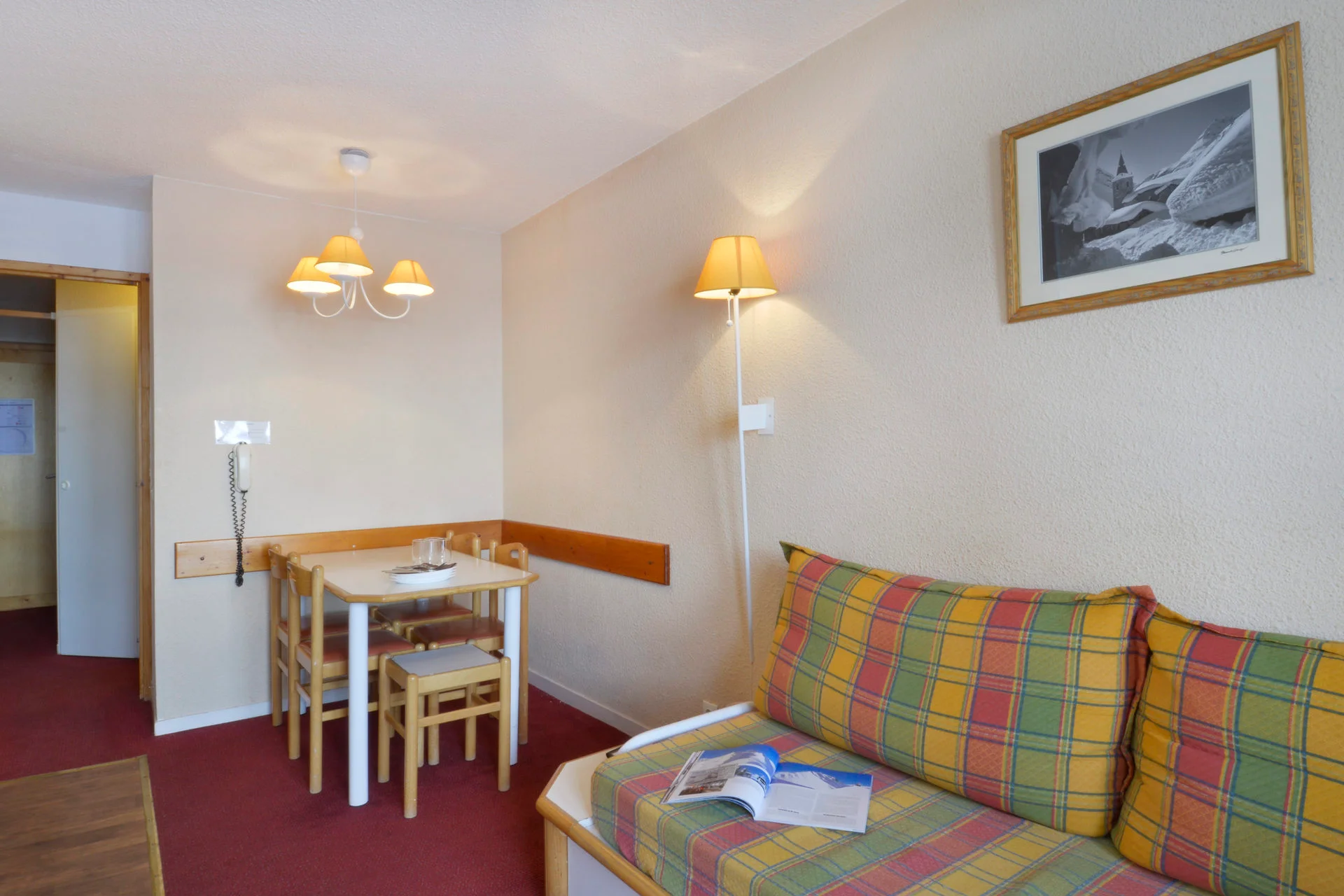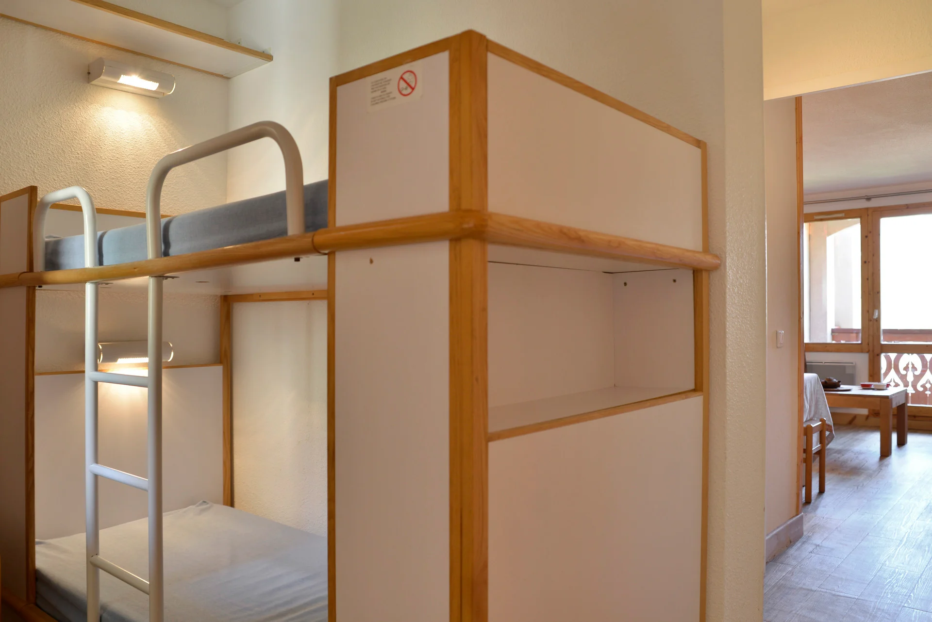 Het appartement bestaat uit 3 kamers met 1 slaapkamer en 1 cabine. De indeling biedt ruimte voor een groep of familie met voldoende slaapgelegenheid.