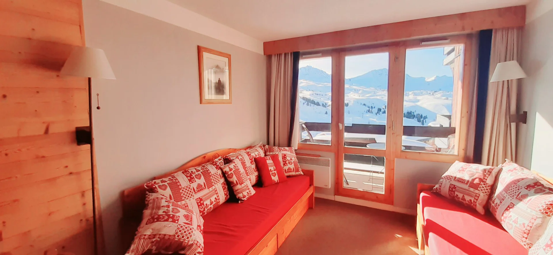 Airconditionering, verwarming in alle kamers. Skilocker ter plaatse. Balkon/terras met zitgelegenheid (stoelen en loungechair beschikbaar).