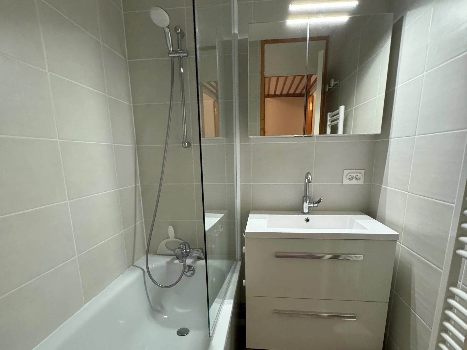 Dit 2-kamer appartement bestaat uit een slaapkamer en een woonkamer met een totale oppervlakte van 27 m². Het appartement is gelegen op de 3e verdieping (toegang via lift) en heeft een zuid- en westgerichte ligging met balkon.