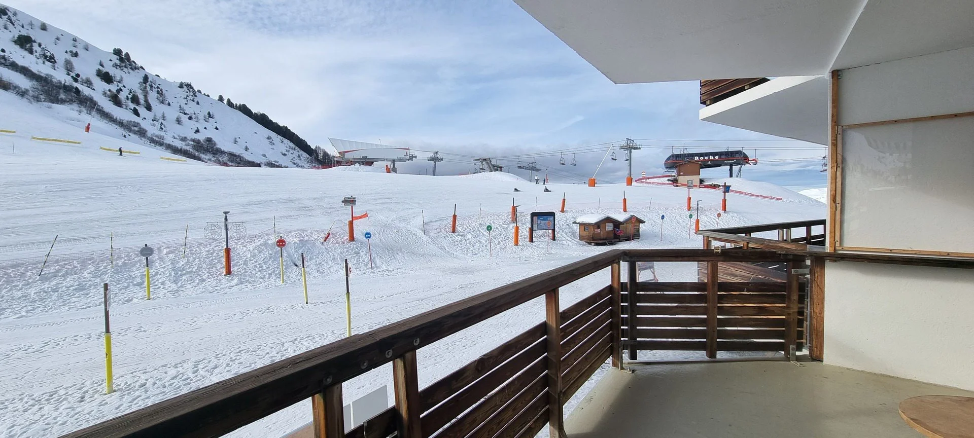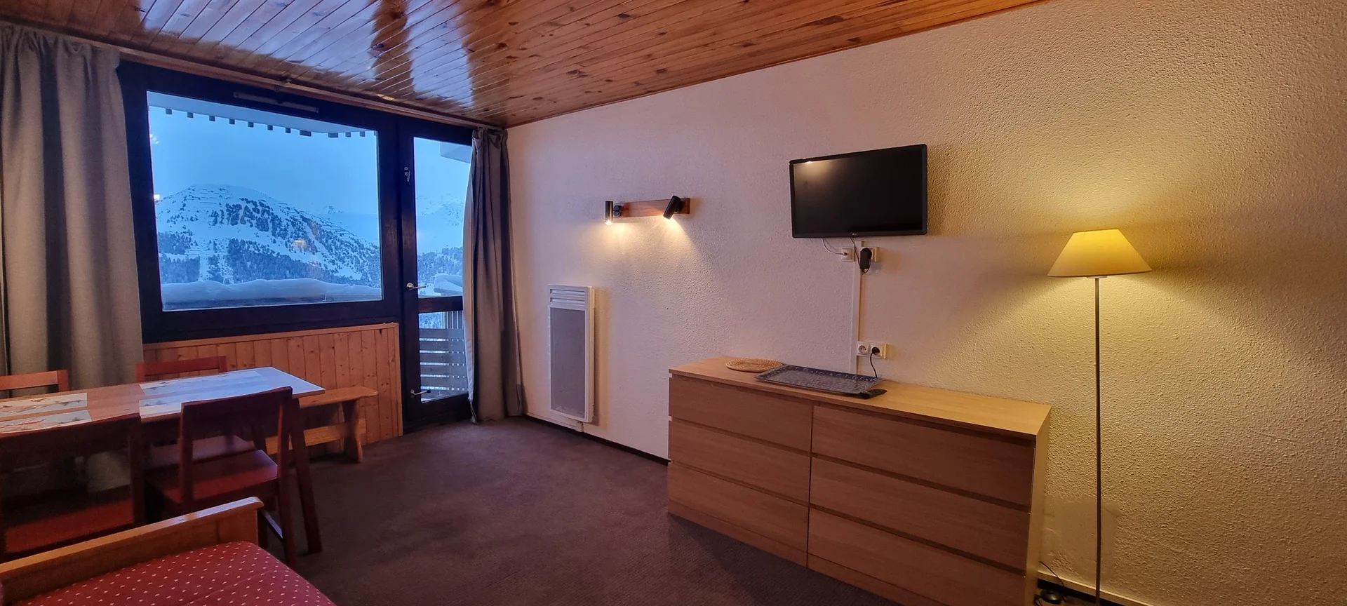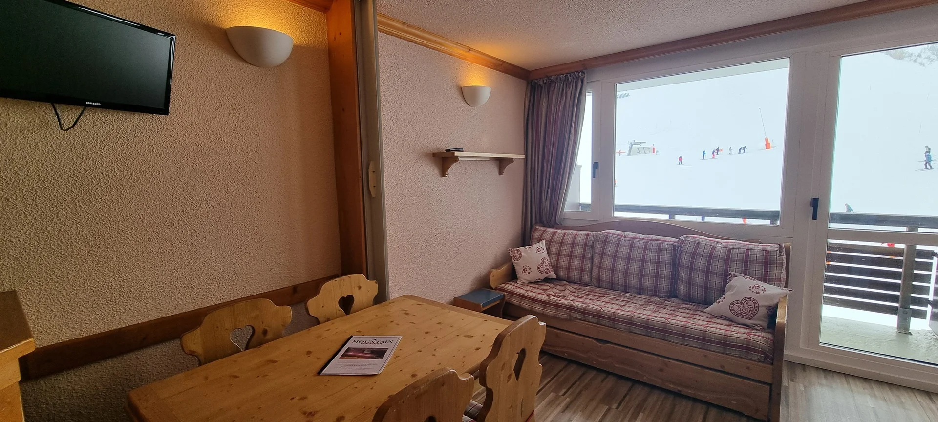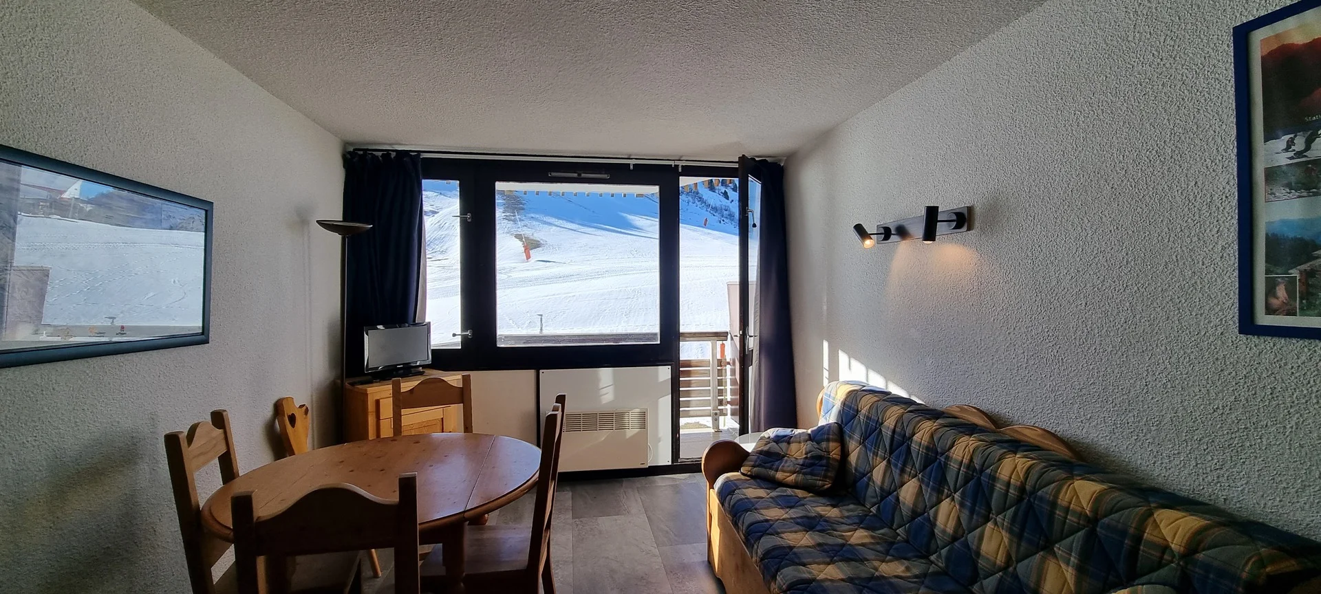 Ingangsdeur AIME 2000, verdieping J, kamernummer 37. Het studio heeft een balkon aan de zuidzijde. Parkeerplaats beschikbaar (betaald). Directe ligging aan de pistes.